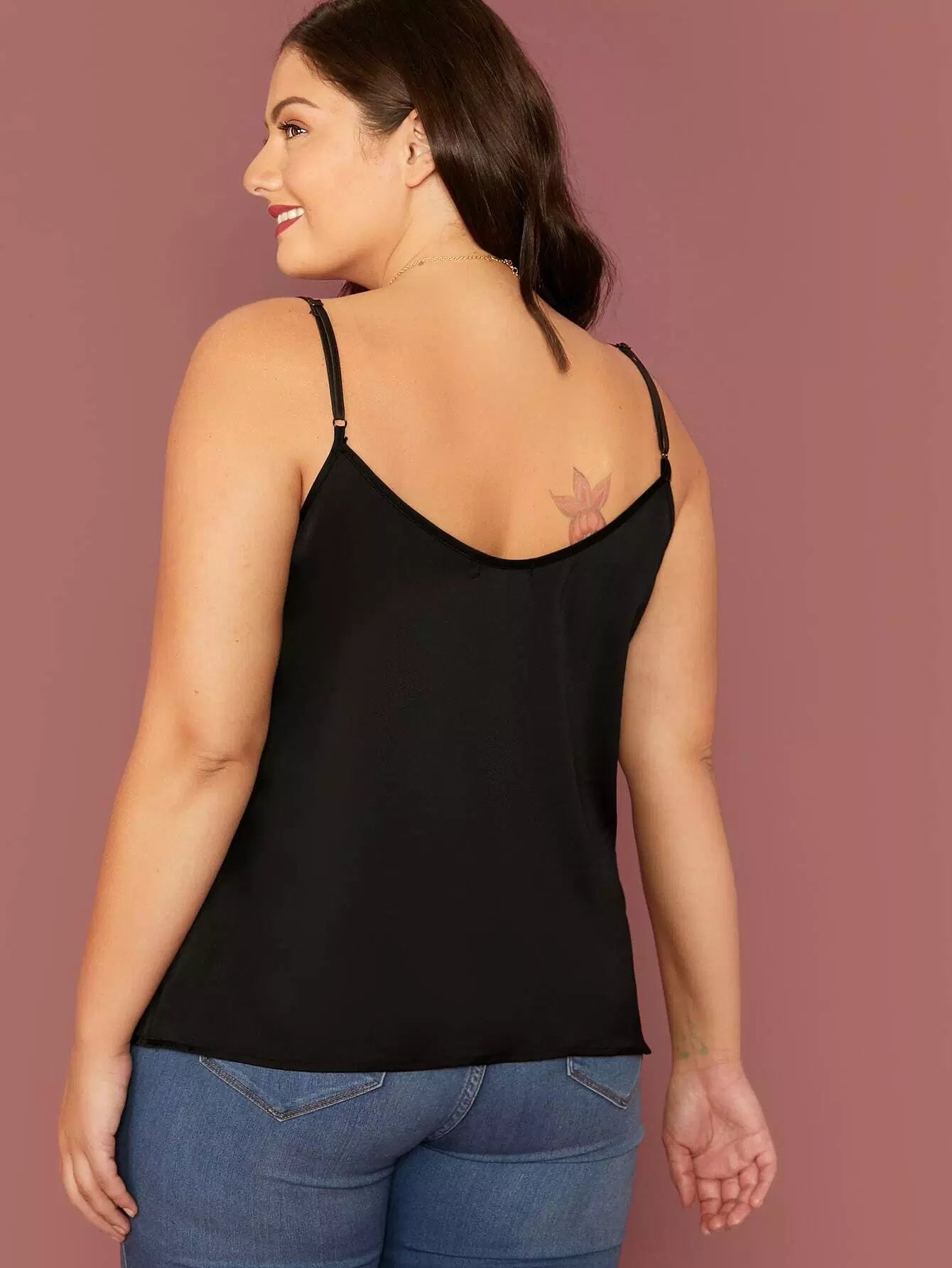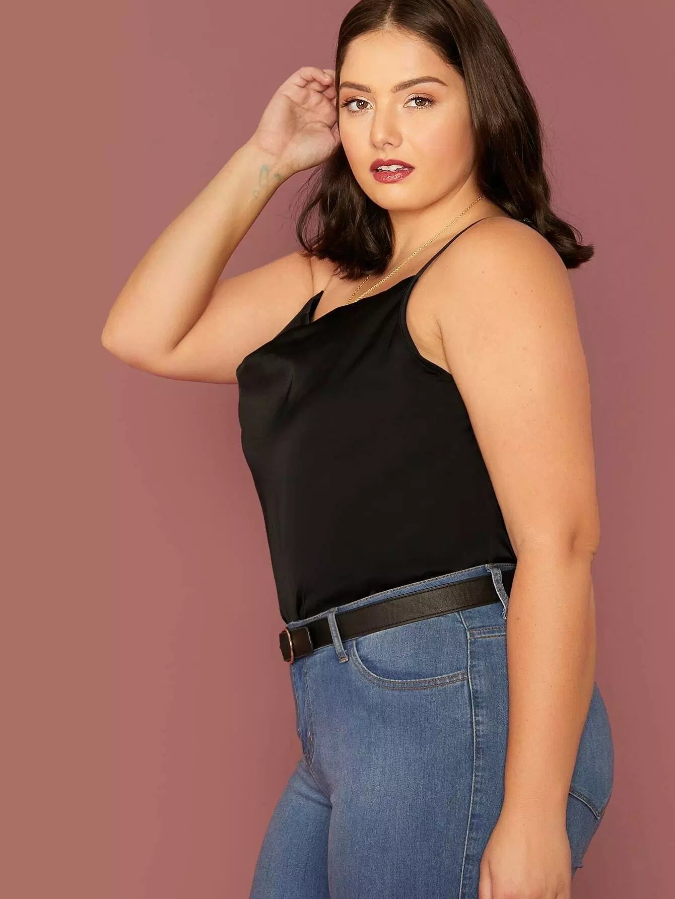 بلوزة ساتان كامي برقبة منسدلة من الساتان بلس