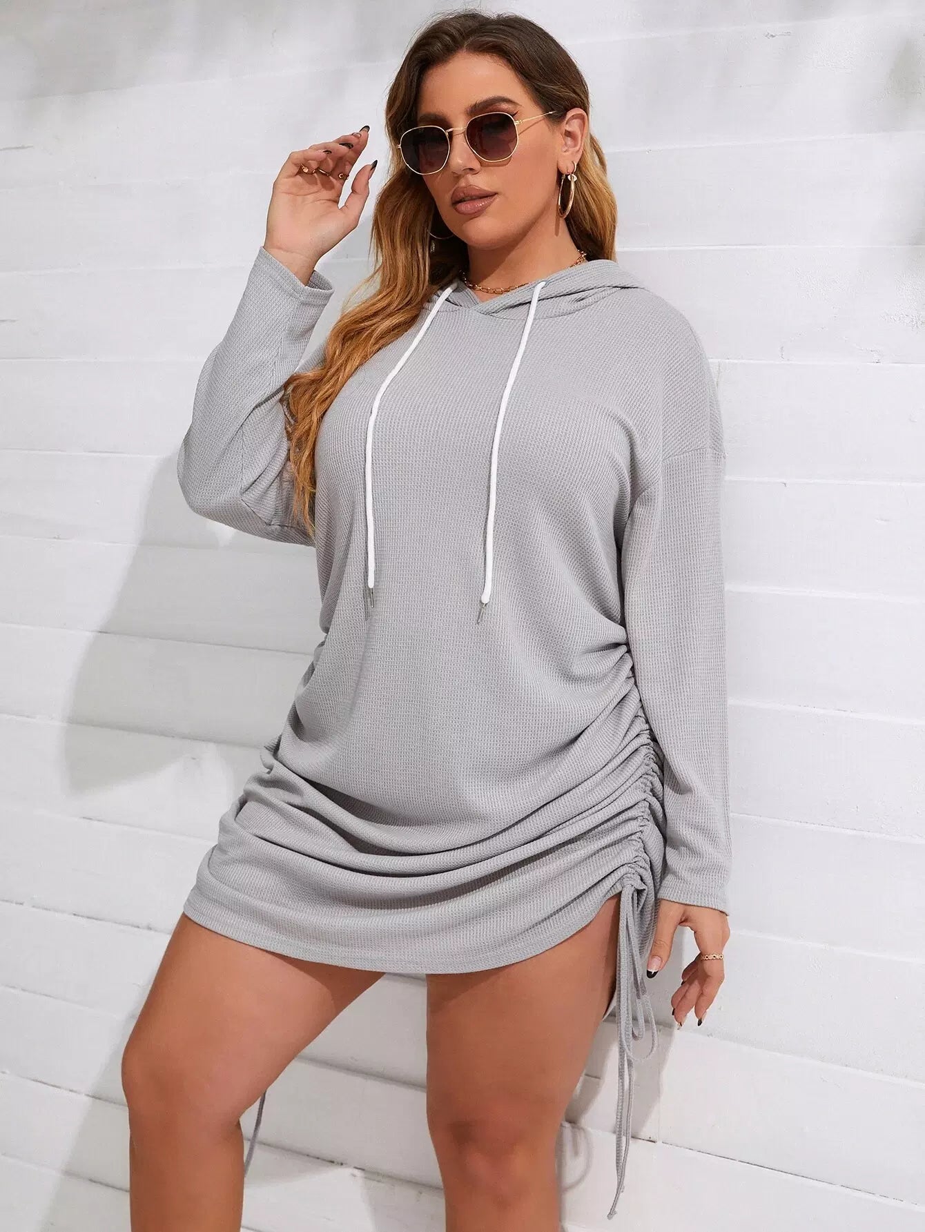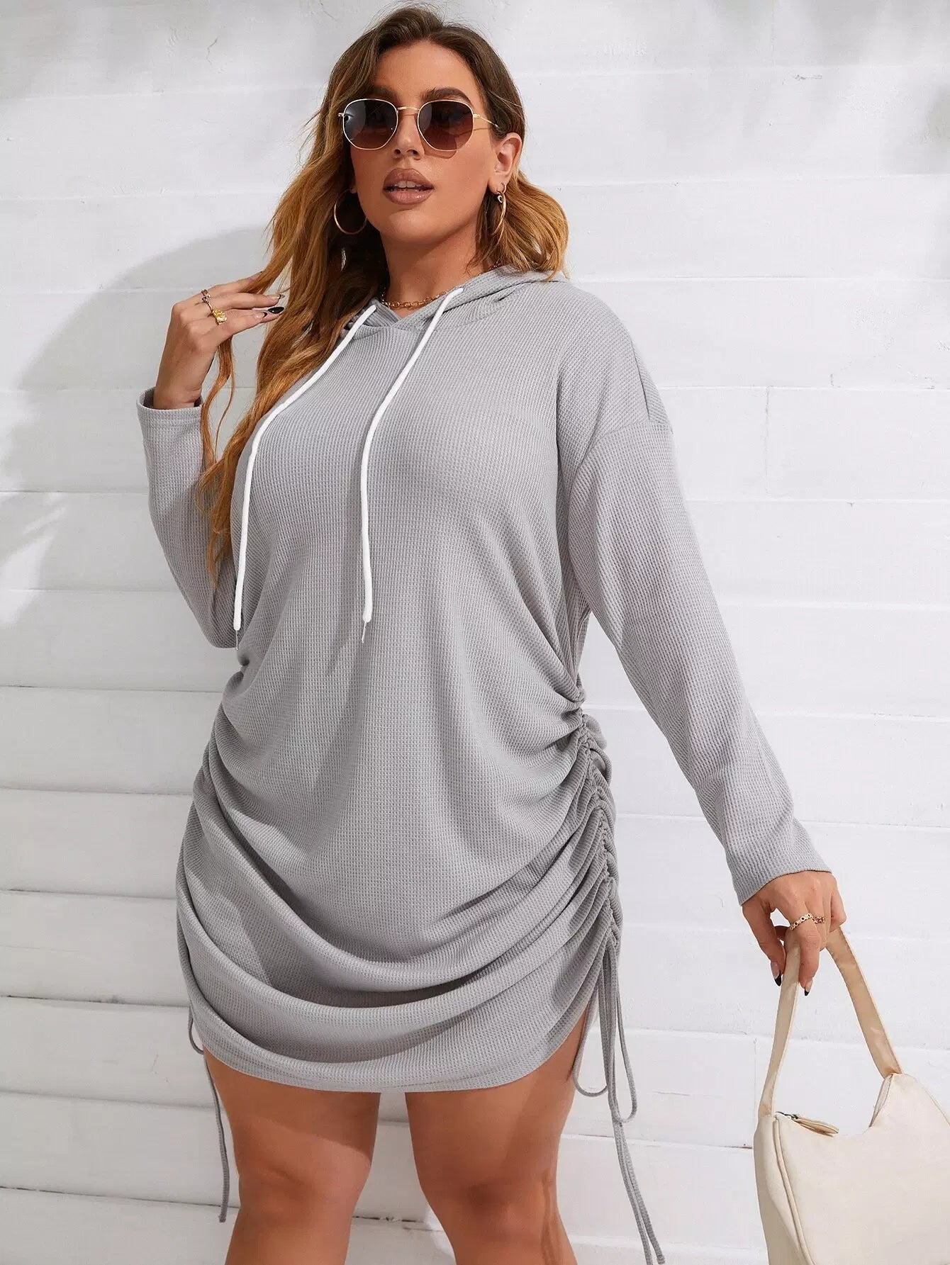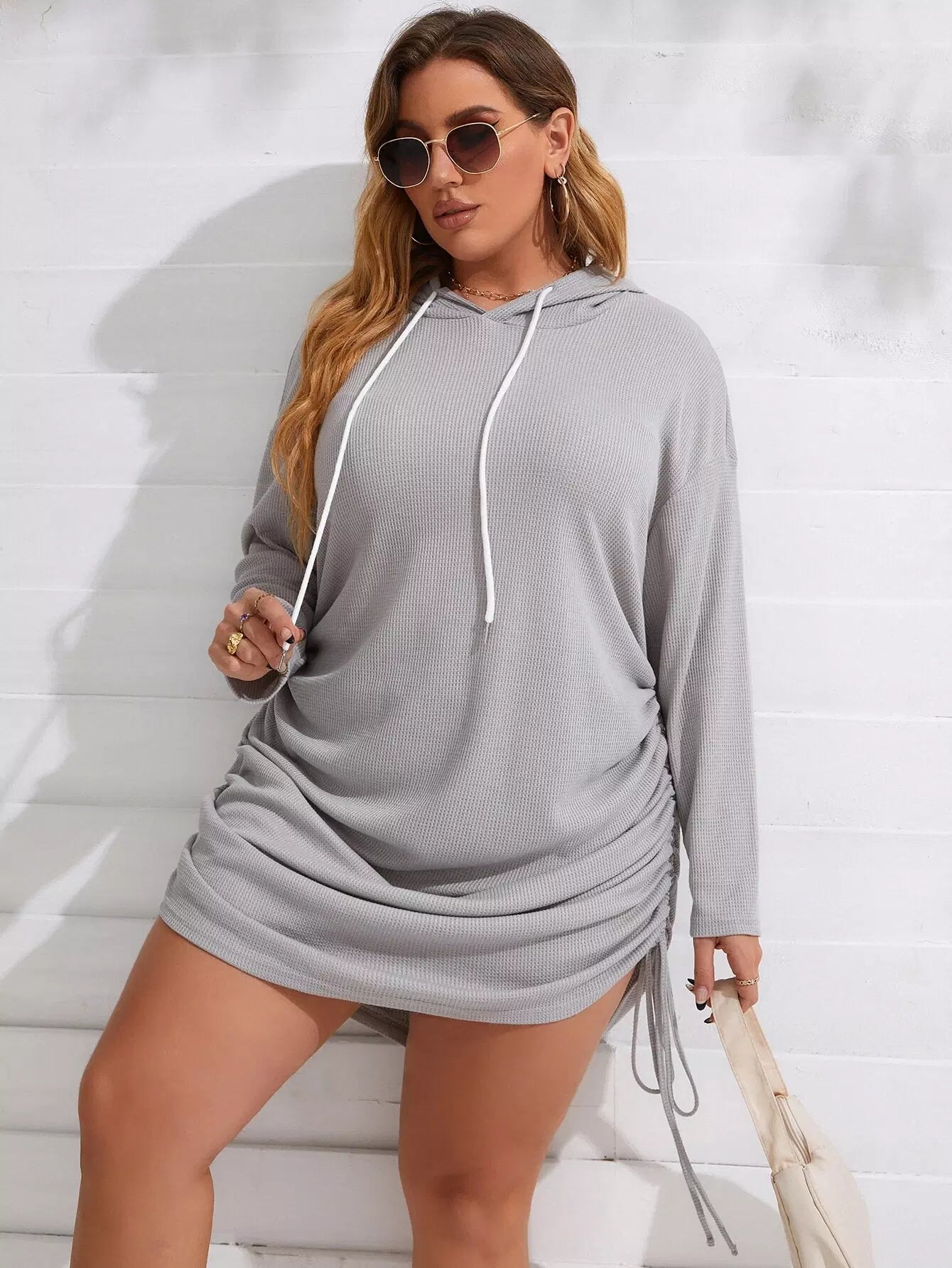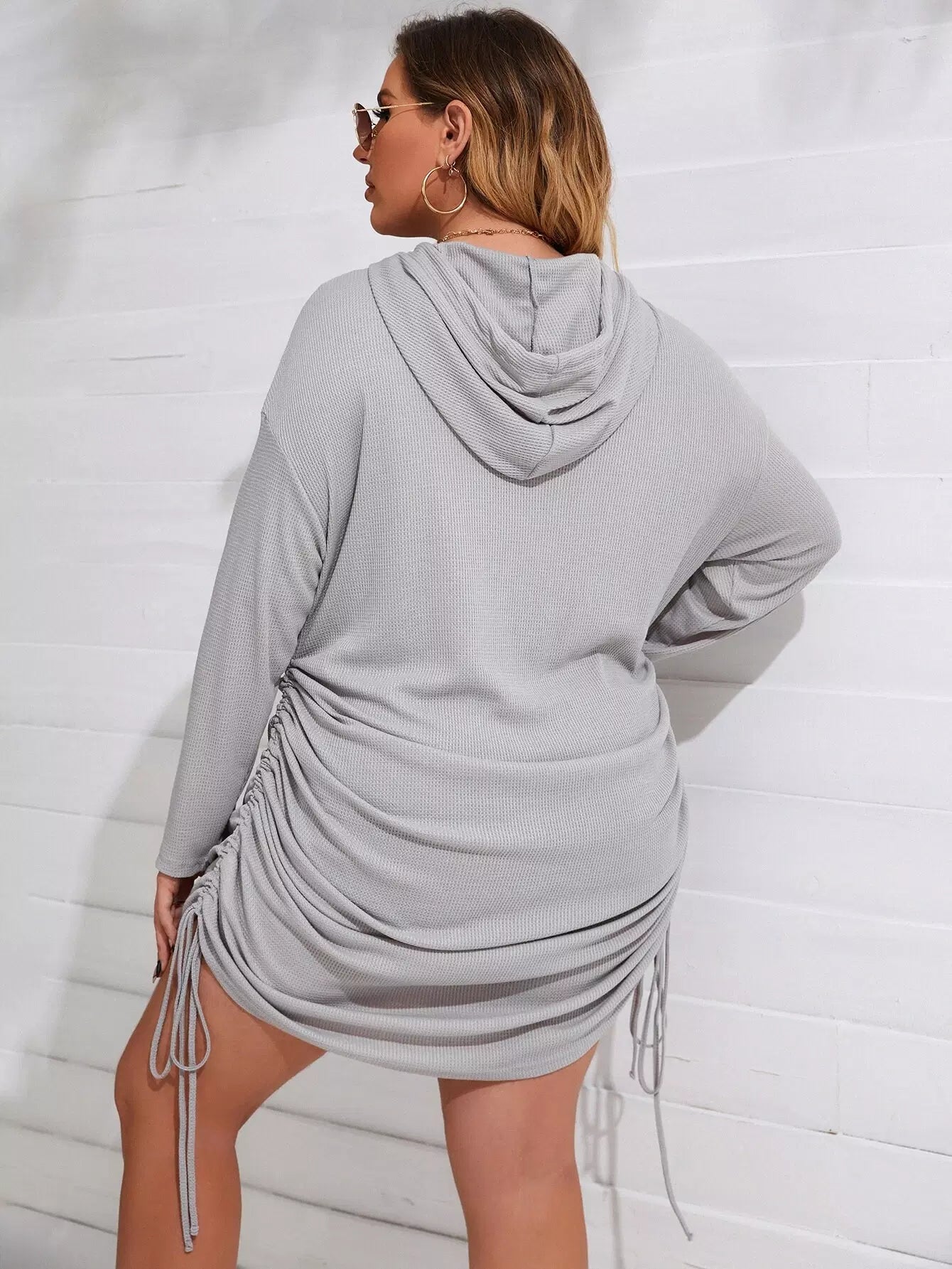 فستان بقلنسوة برباط منسدل الأكتاف زائد