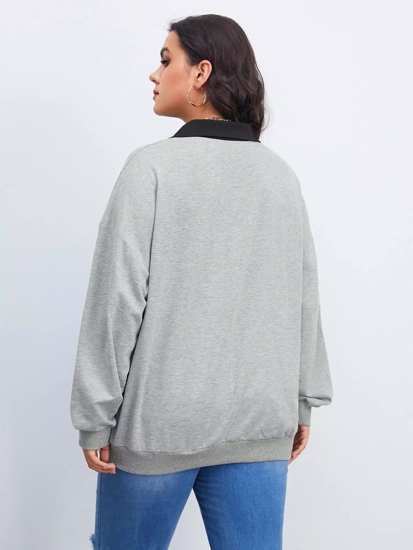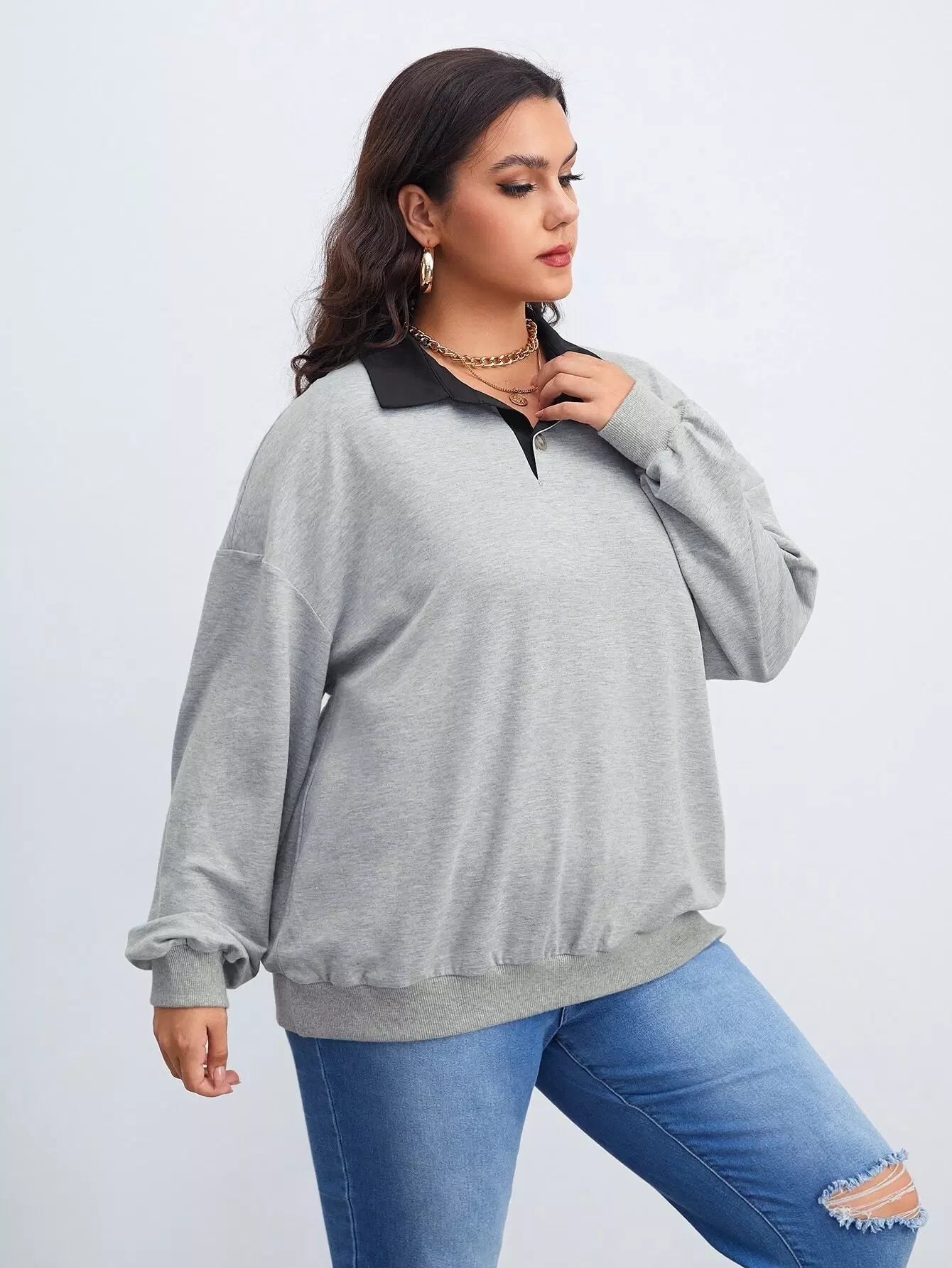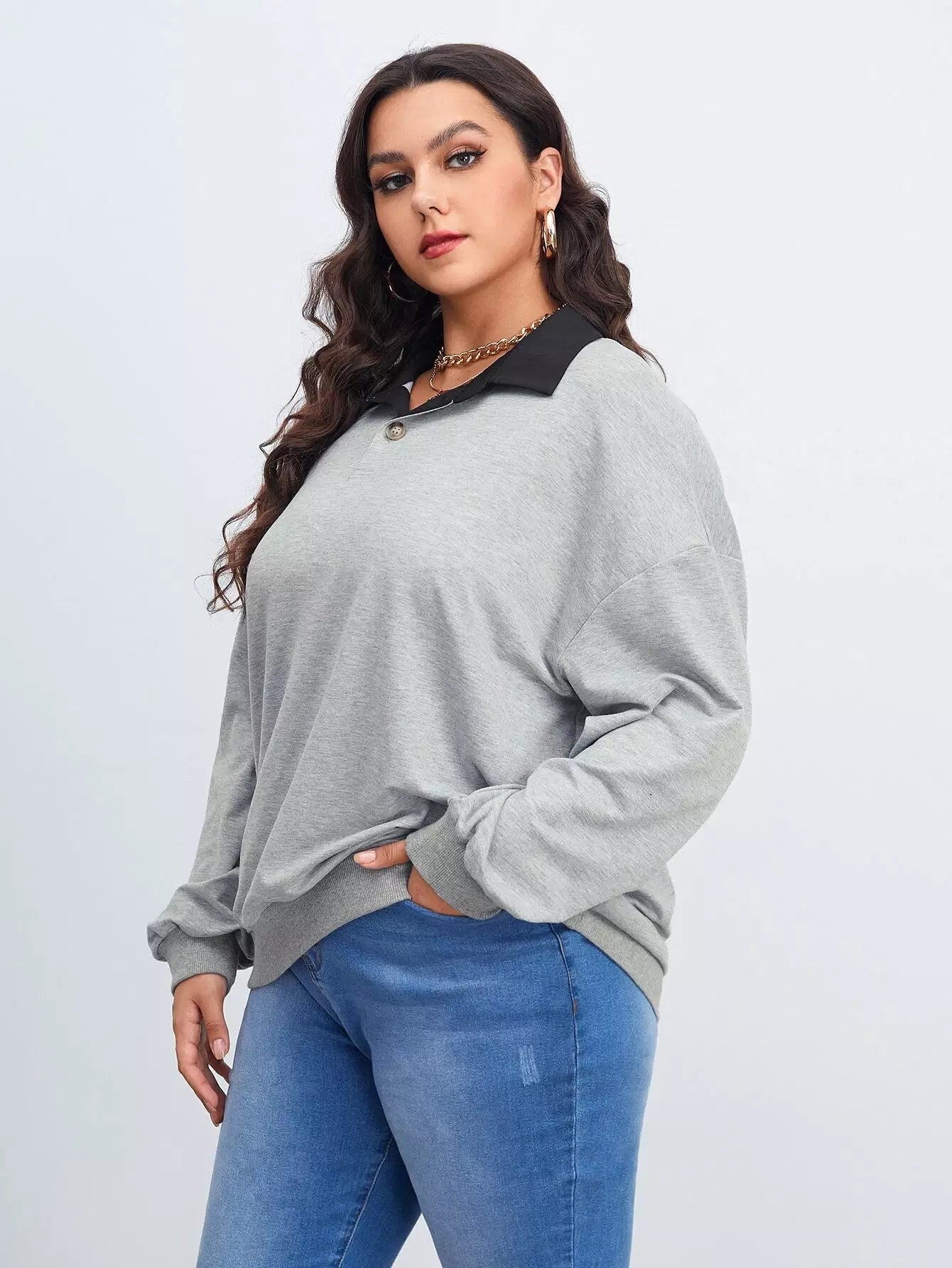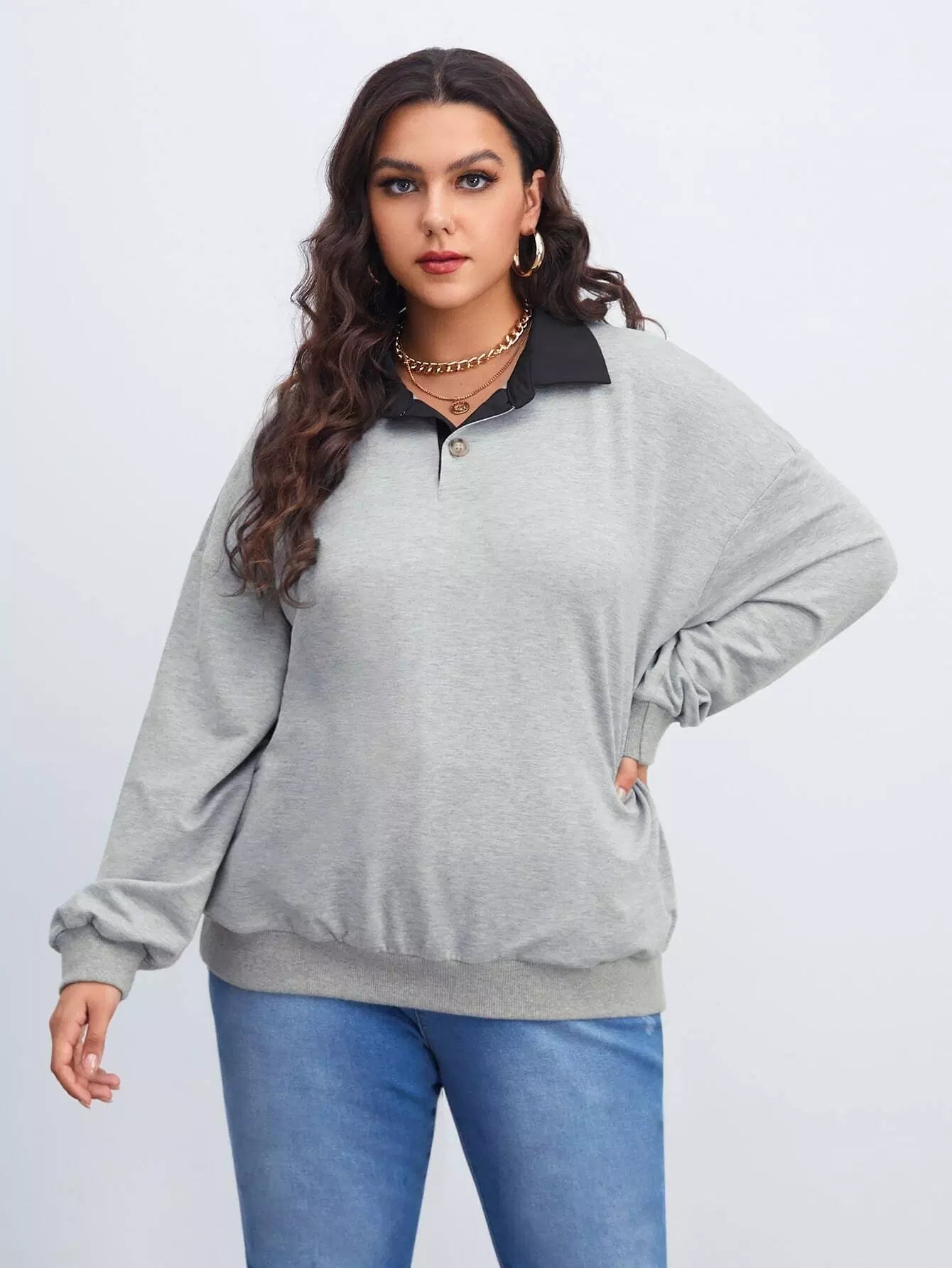 سويت شيرت بولو برقبة منسدلة الكتفين زائد