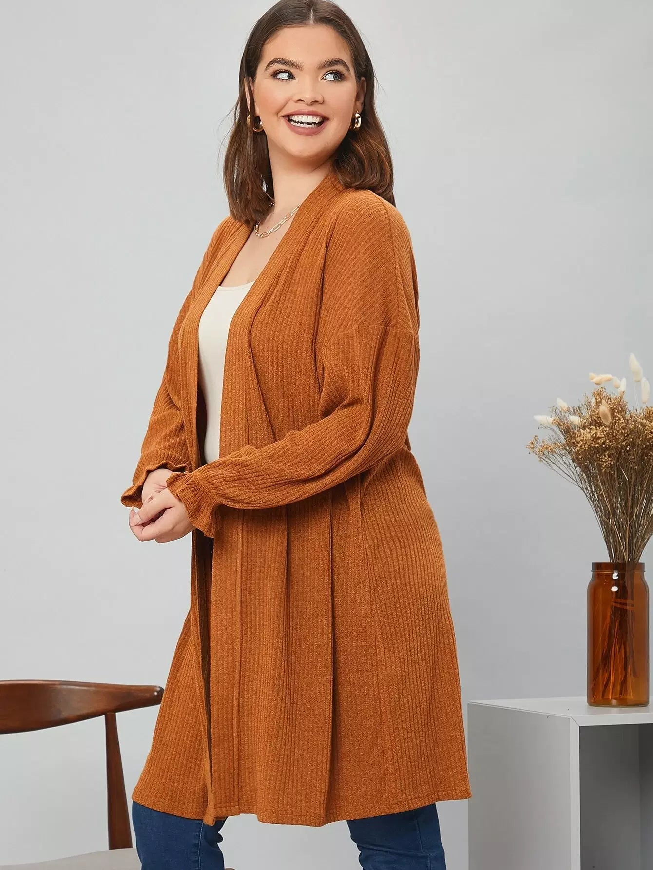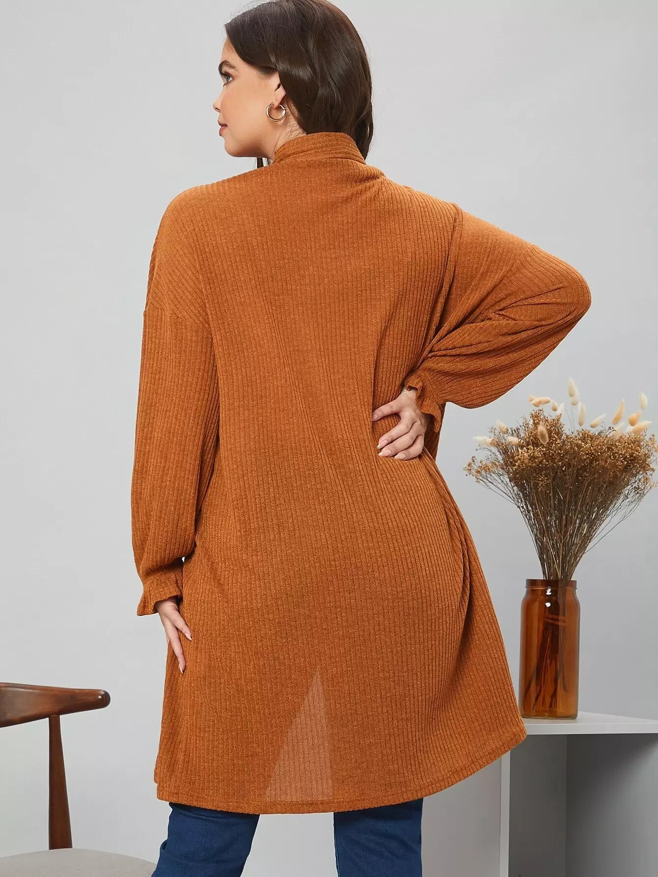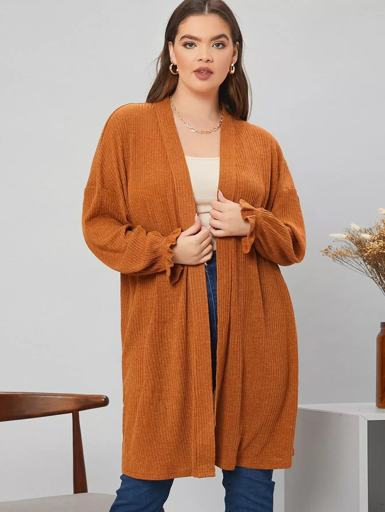 نحيف - مقاس كبير انخفاض الكتف كشكش الكفة مفتوحة الجبهة معطف متماسكة الضلع
