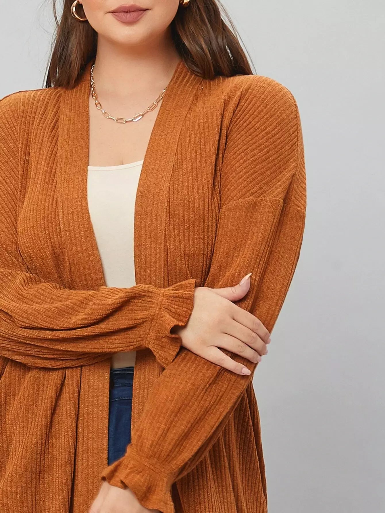 معطف مكشكش منسدل الأكتاف بأكمام كشكش مفتوح من الأمام ومحبوك من الضلع