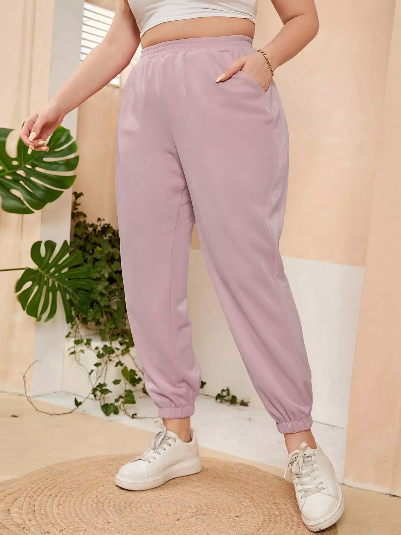 بنطال رياضي بخصر مطاطي مائل بجيب مائل زائد