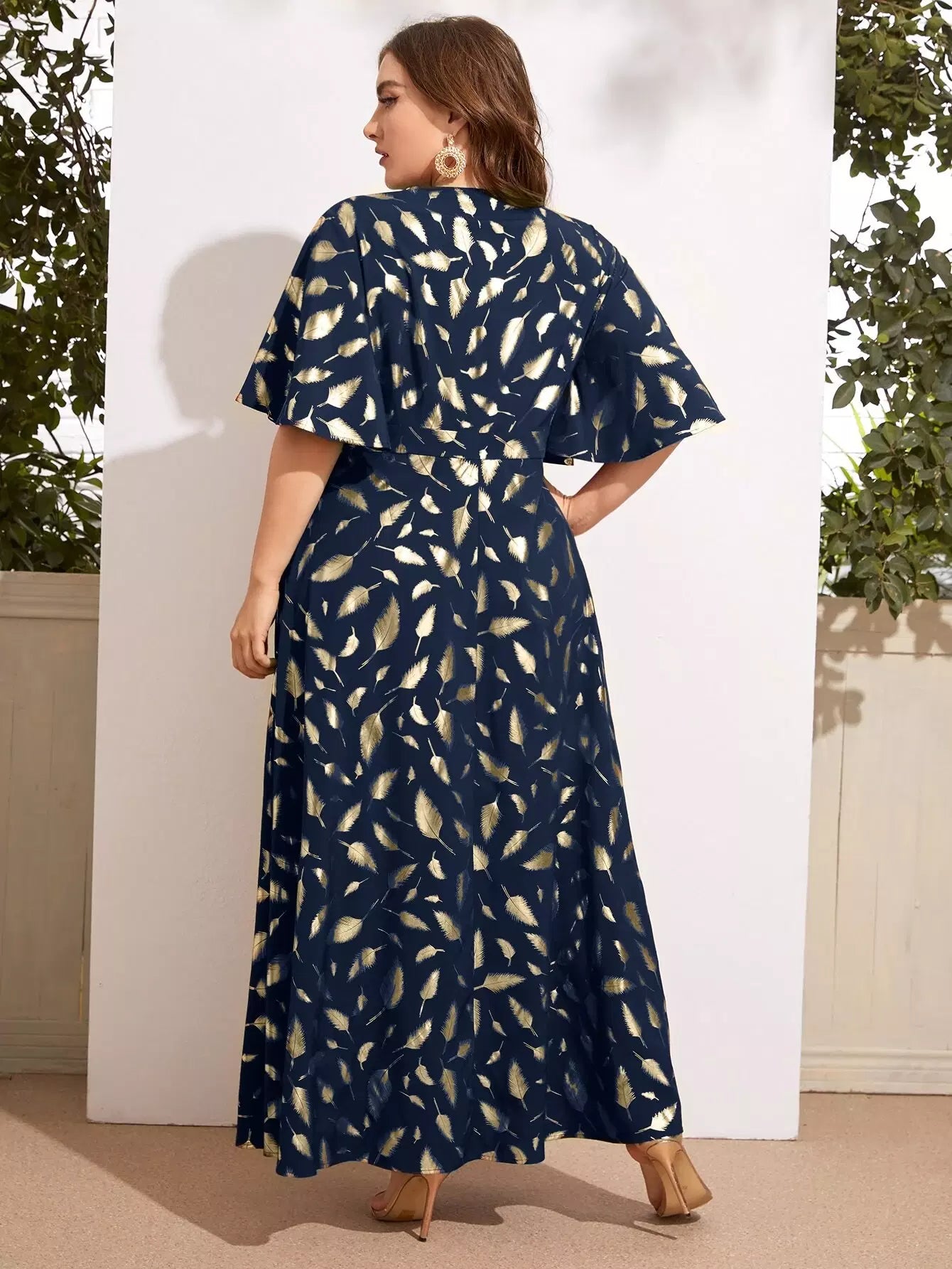 فستان ماكسي بطبعة ريش زائد مطبوع بالريش