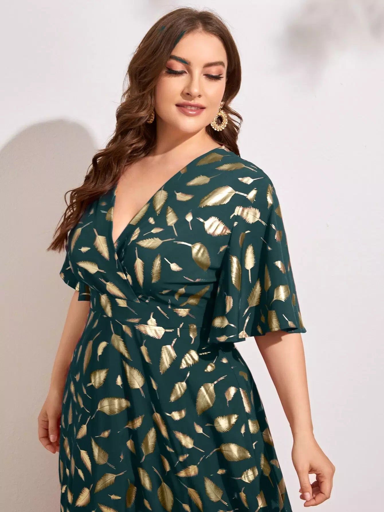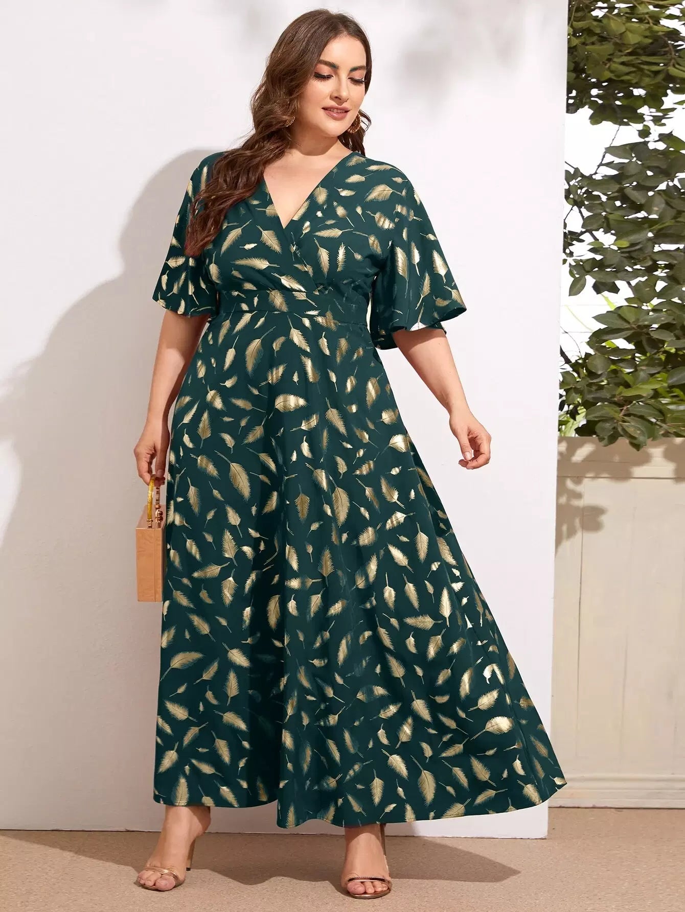 فستان ماكسي بطبعة ريش زائد مطبوع بالريش