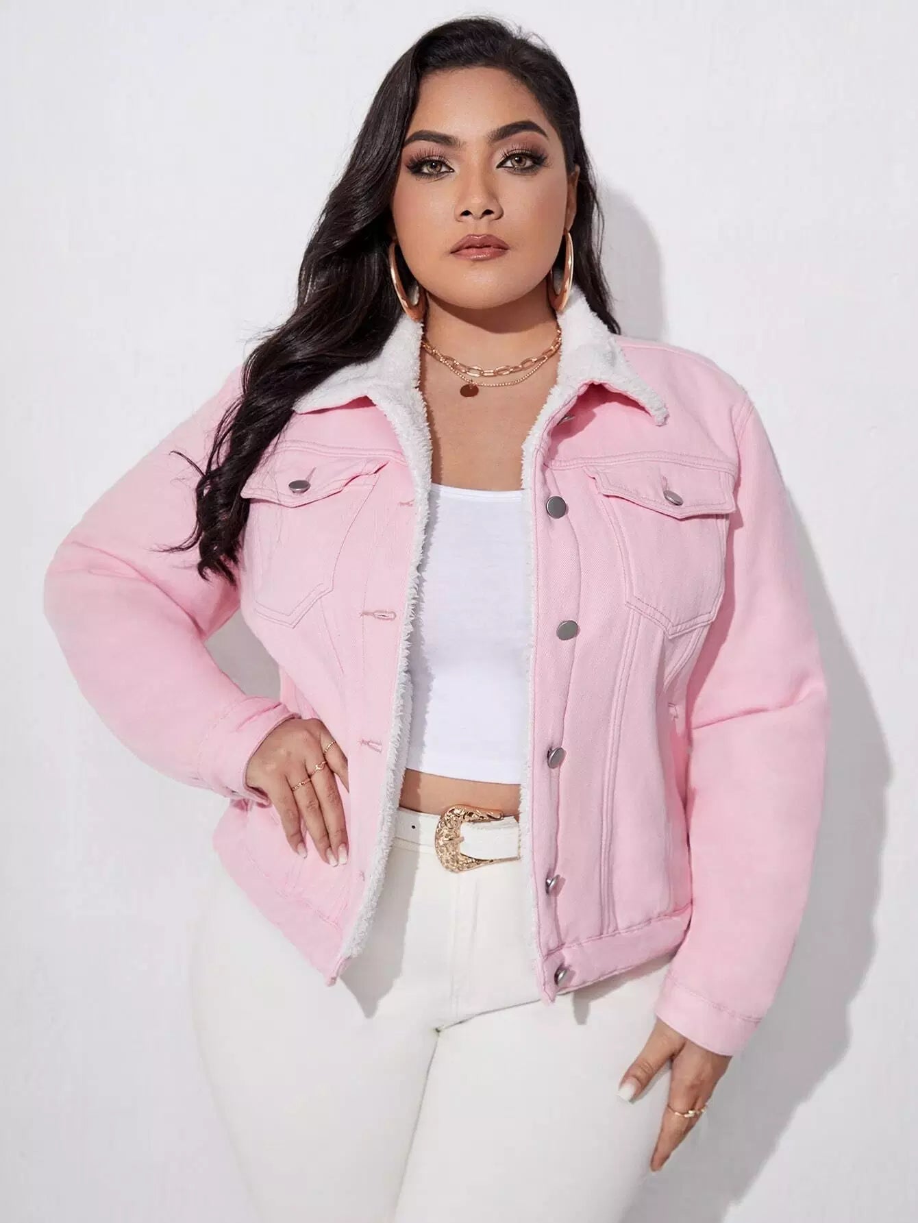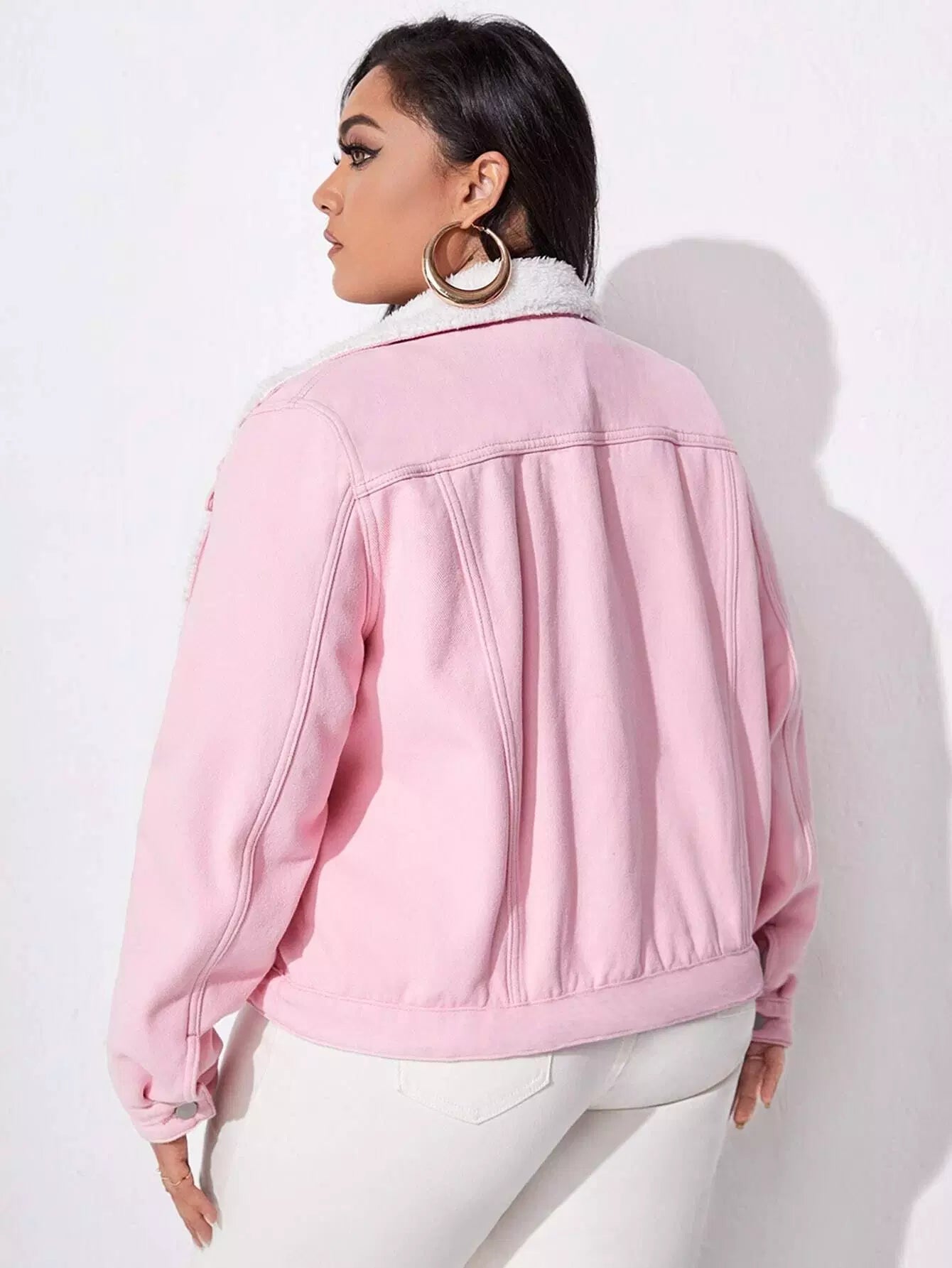 Plus Flap Pocket Teddy Lined Denim Jacket