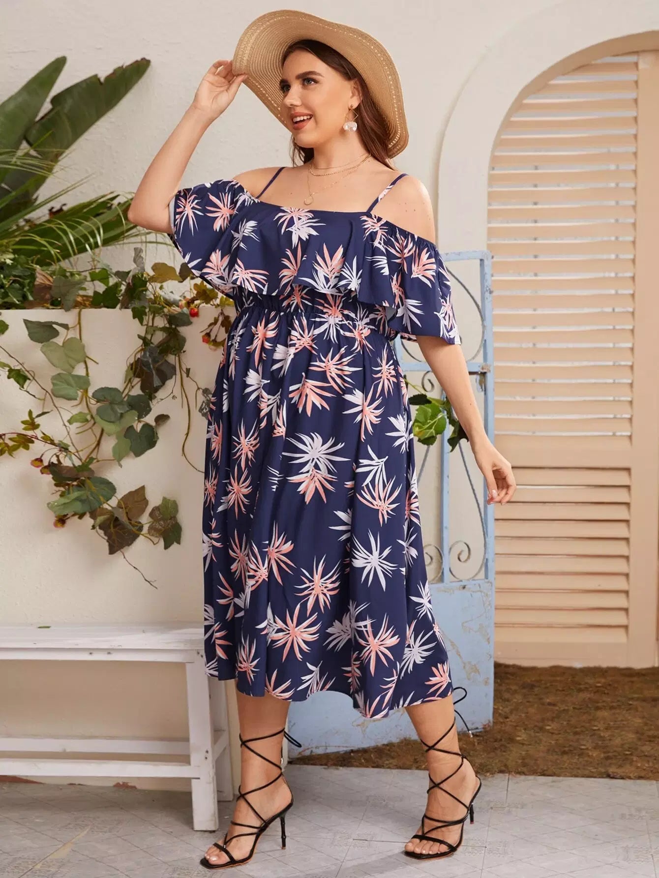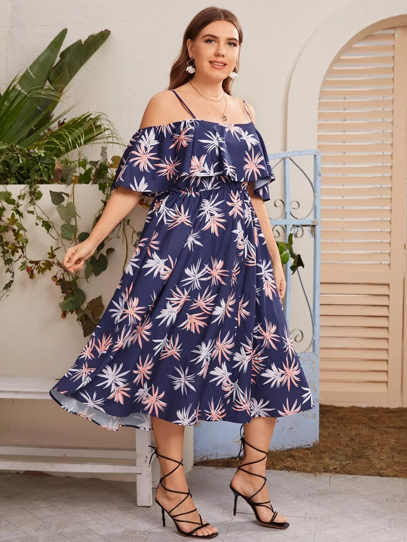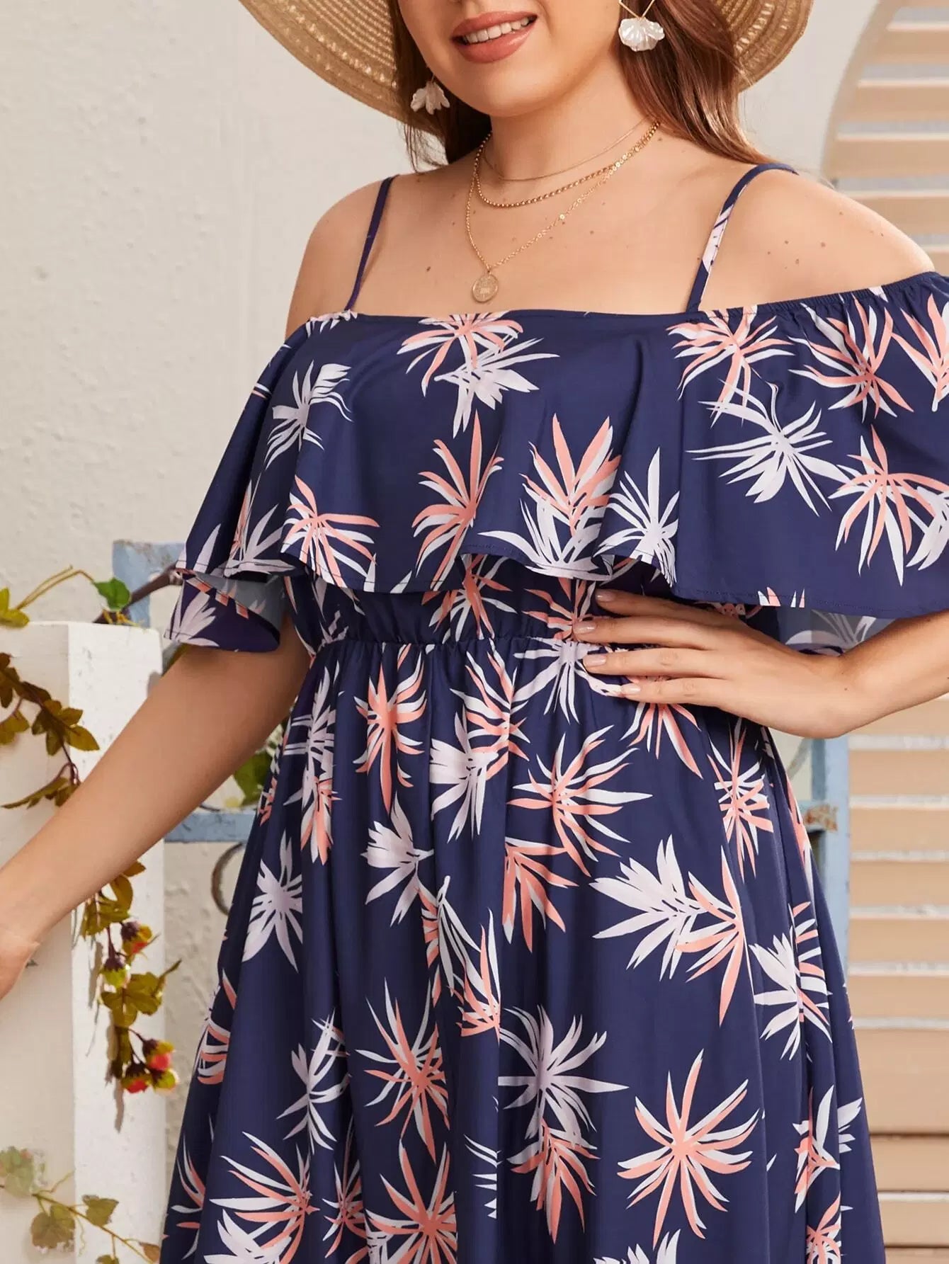 فستان بكتف بارد زائد زهري زائد