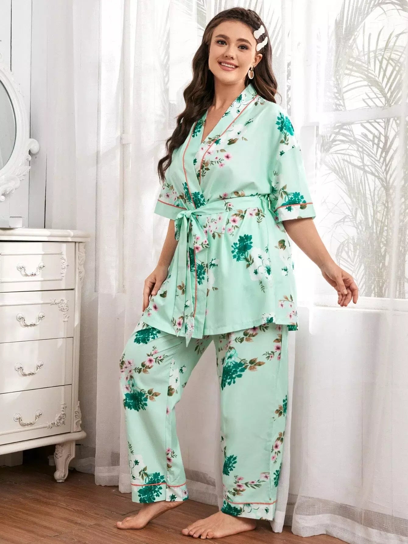 بالإضافة إلى مجموعة بيجامة متباينة الأزهار بدون حزام