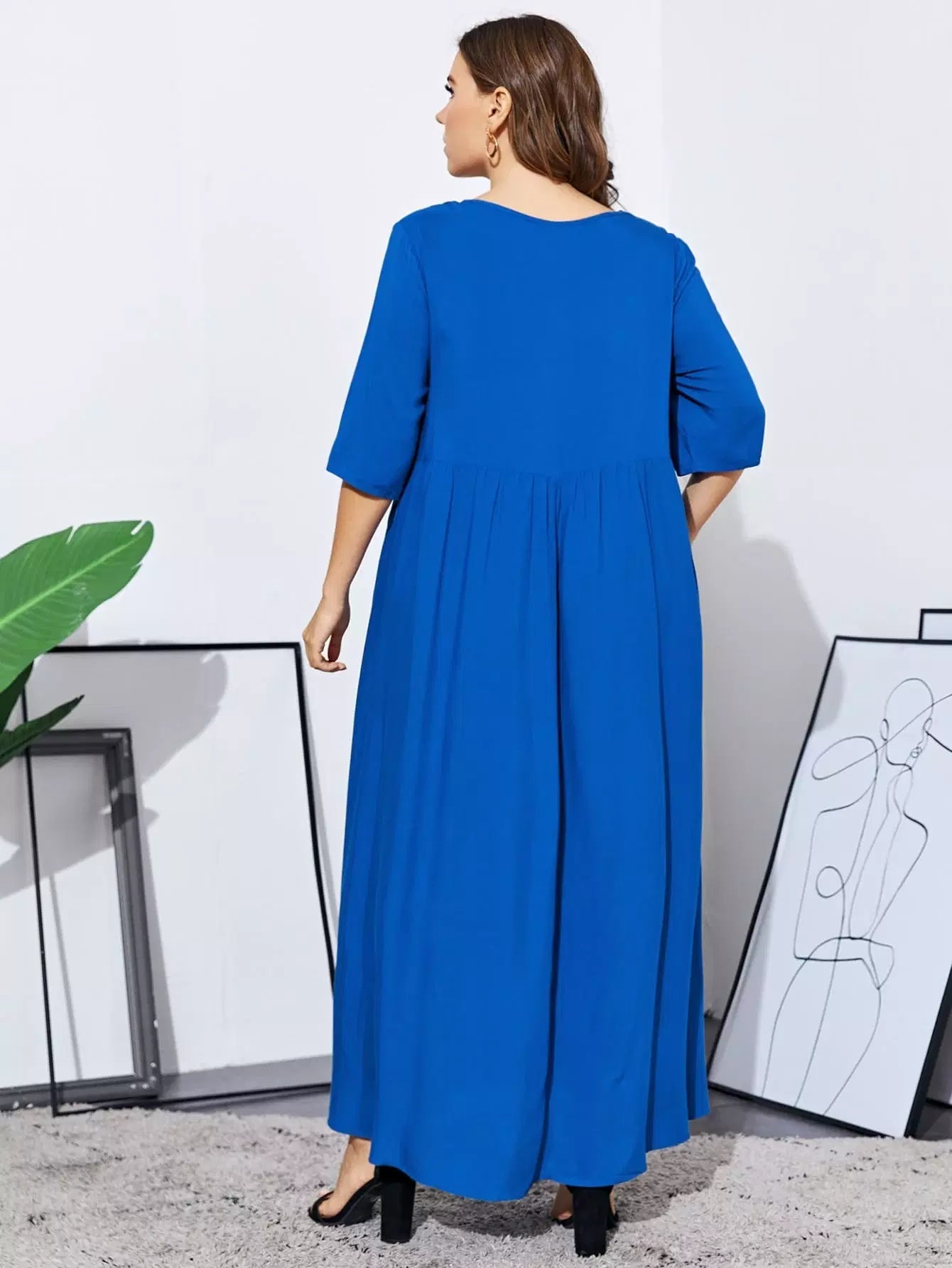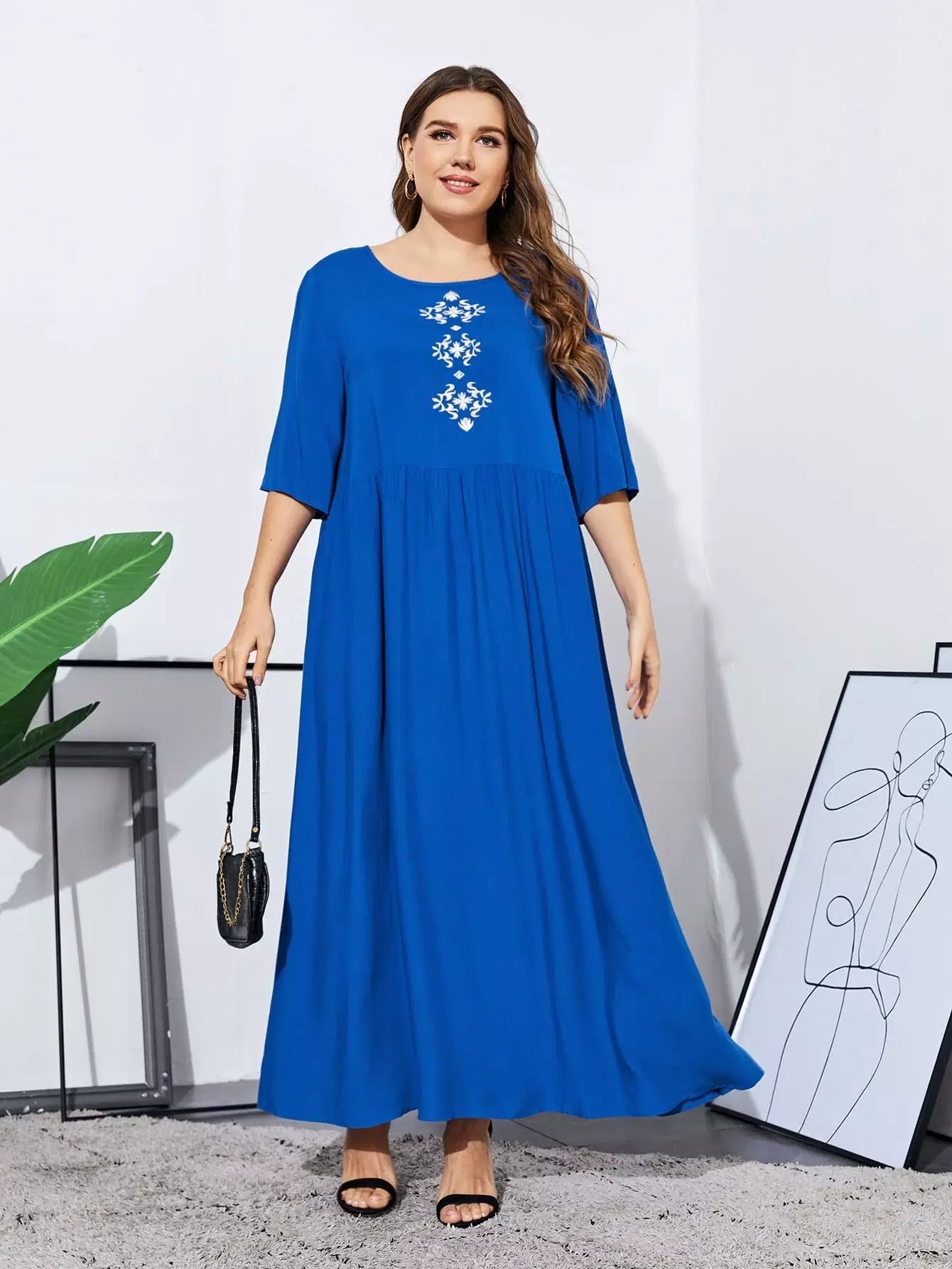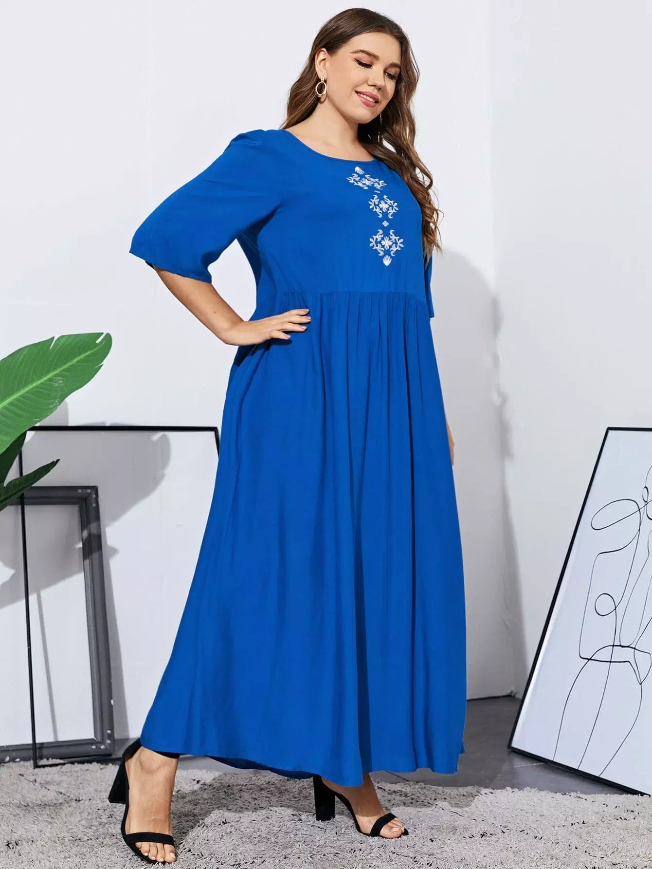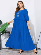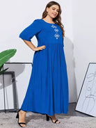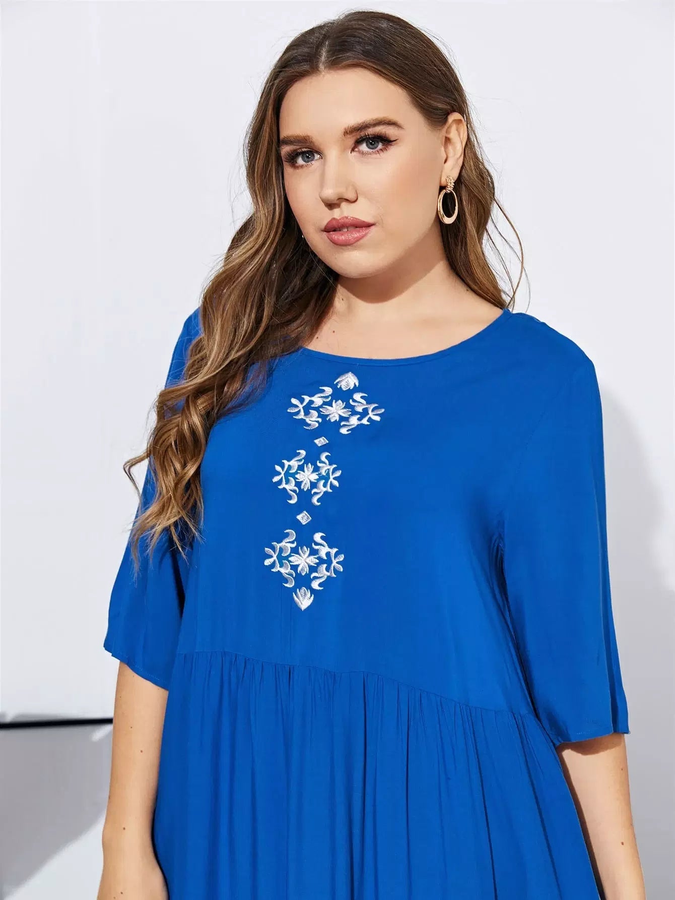 نحيف - مقاس كبير فستان سموك مطرز بالزهور