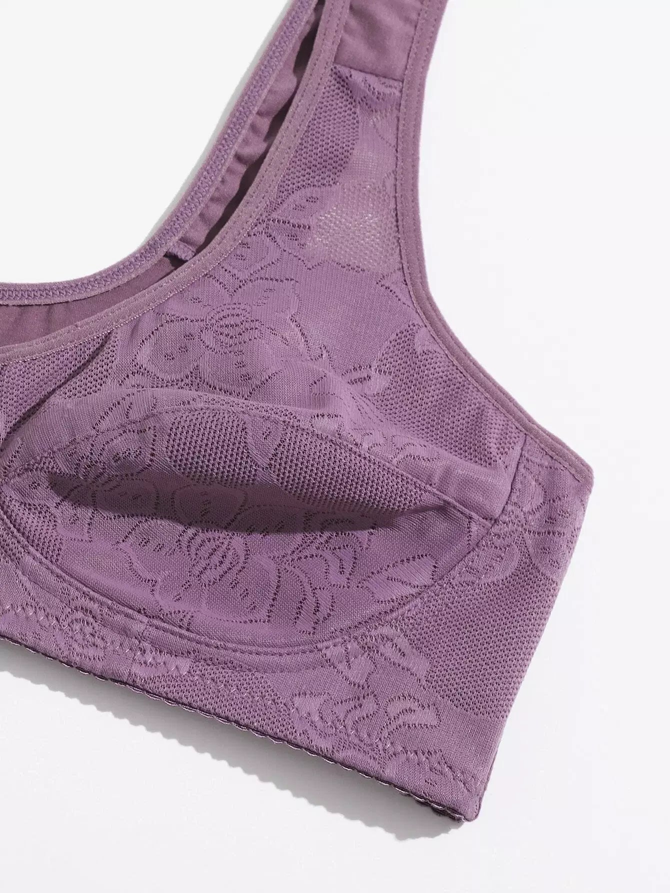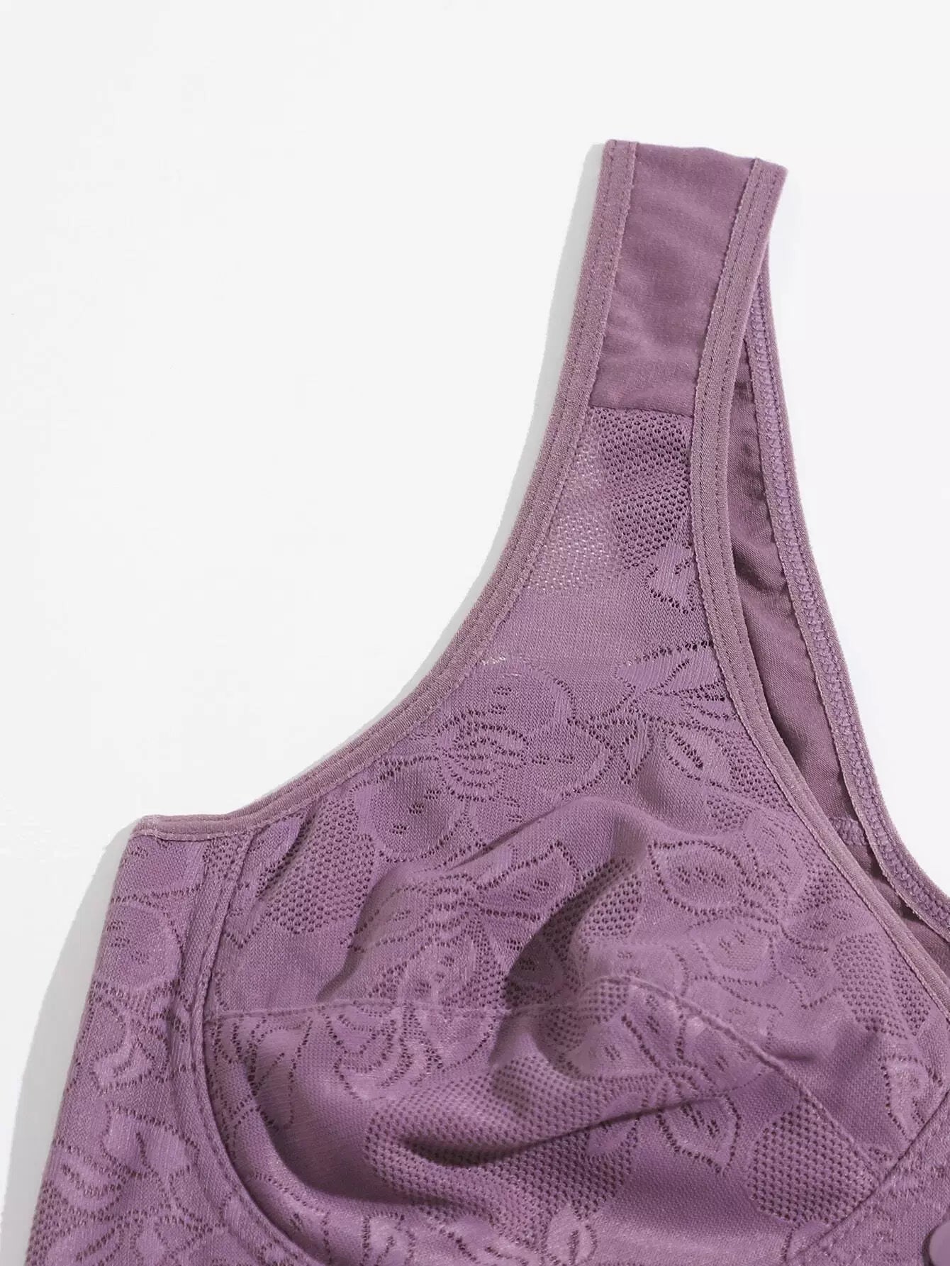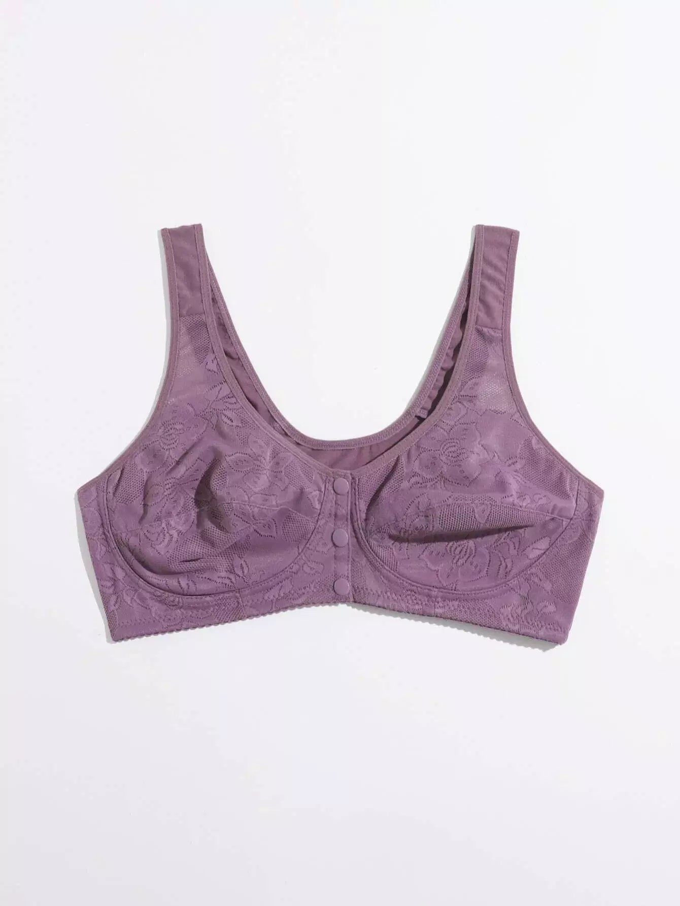 حمالة صدر أمامية بأزرار أمامية من الدانتيل الزهري