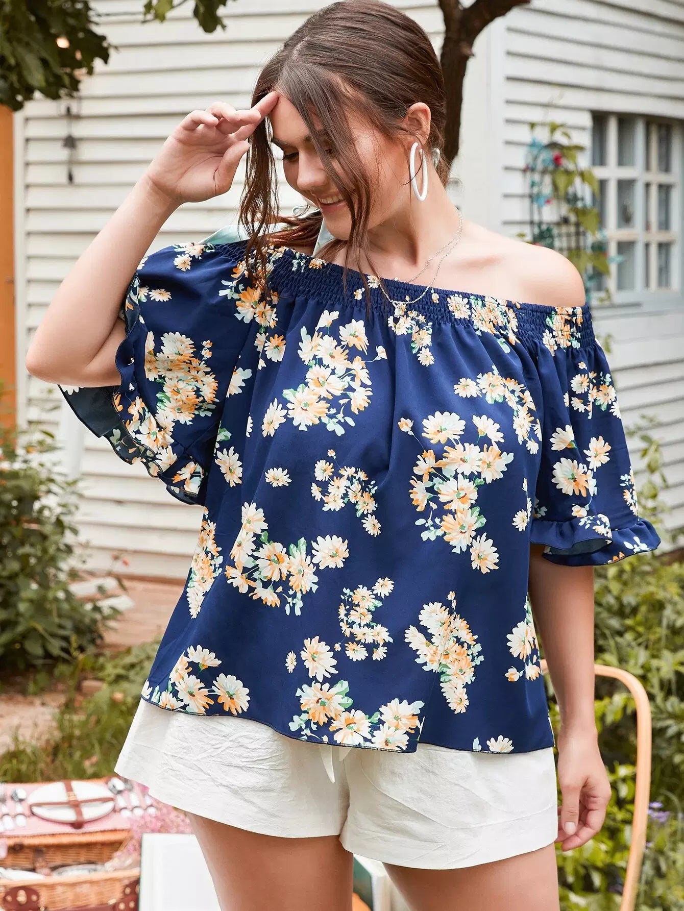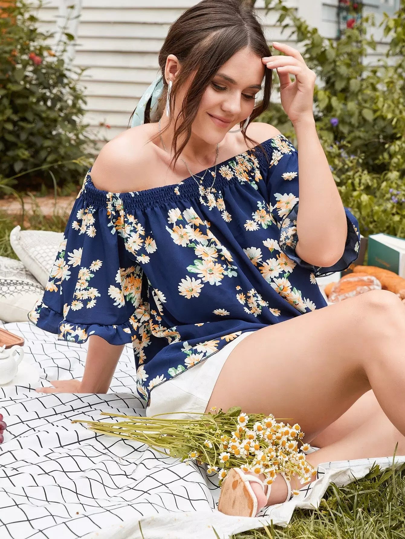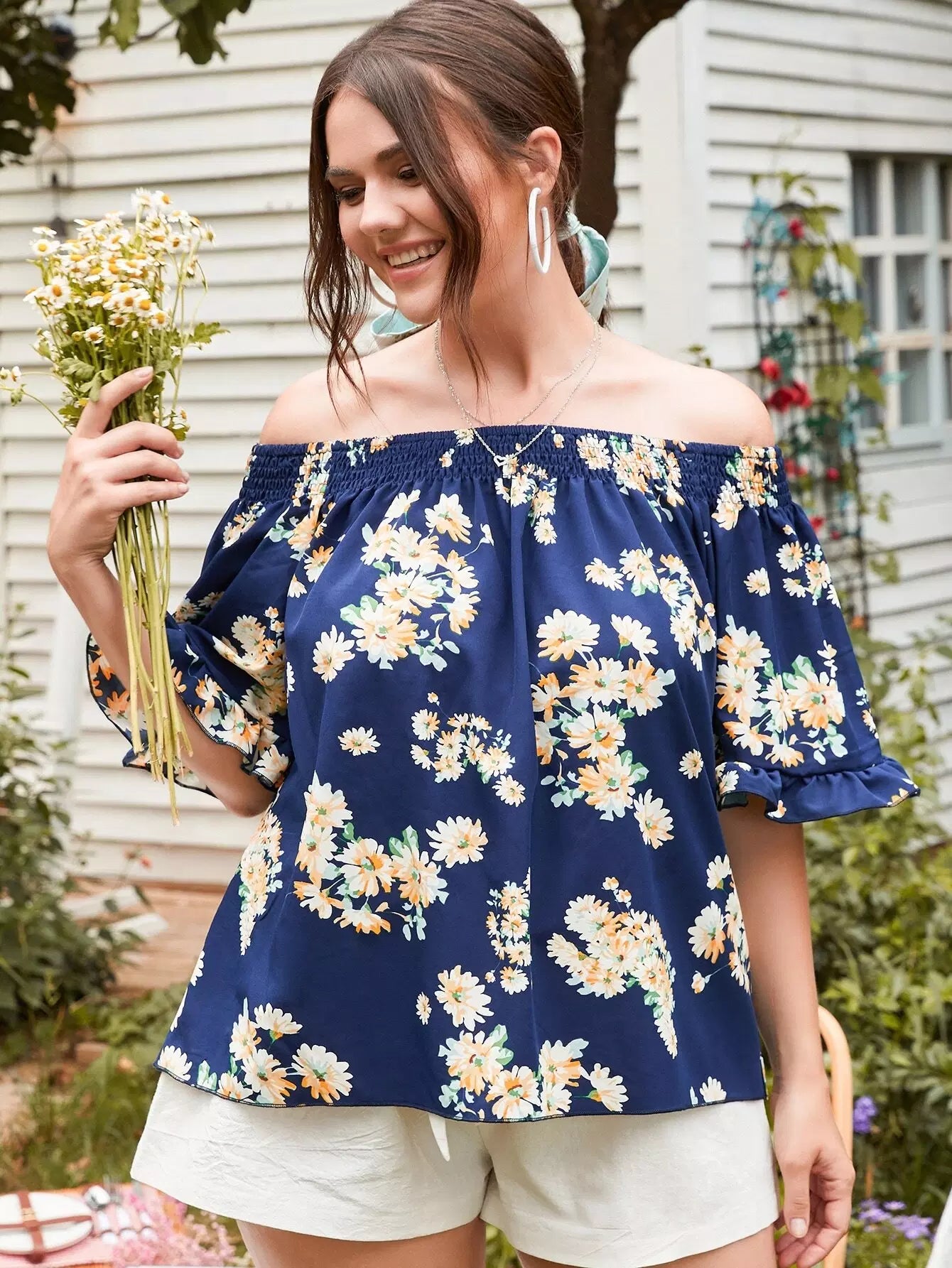 بلوزة بدون أكتاف زهرية زائدة