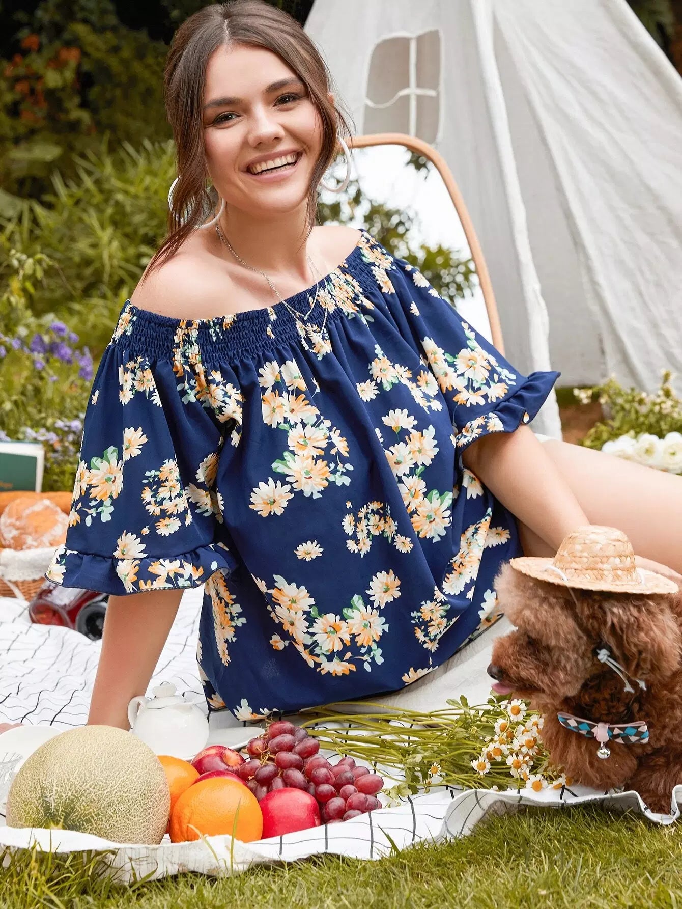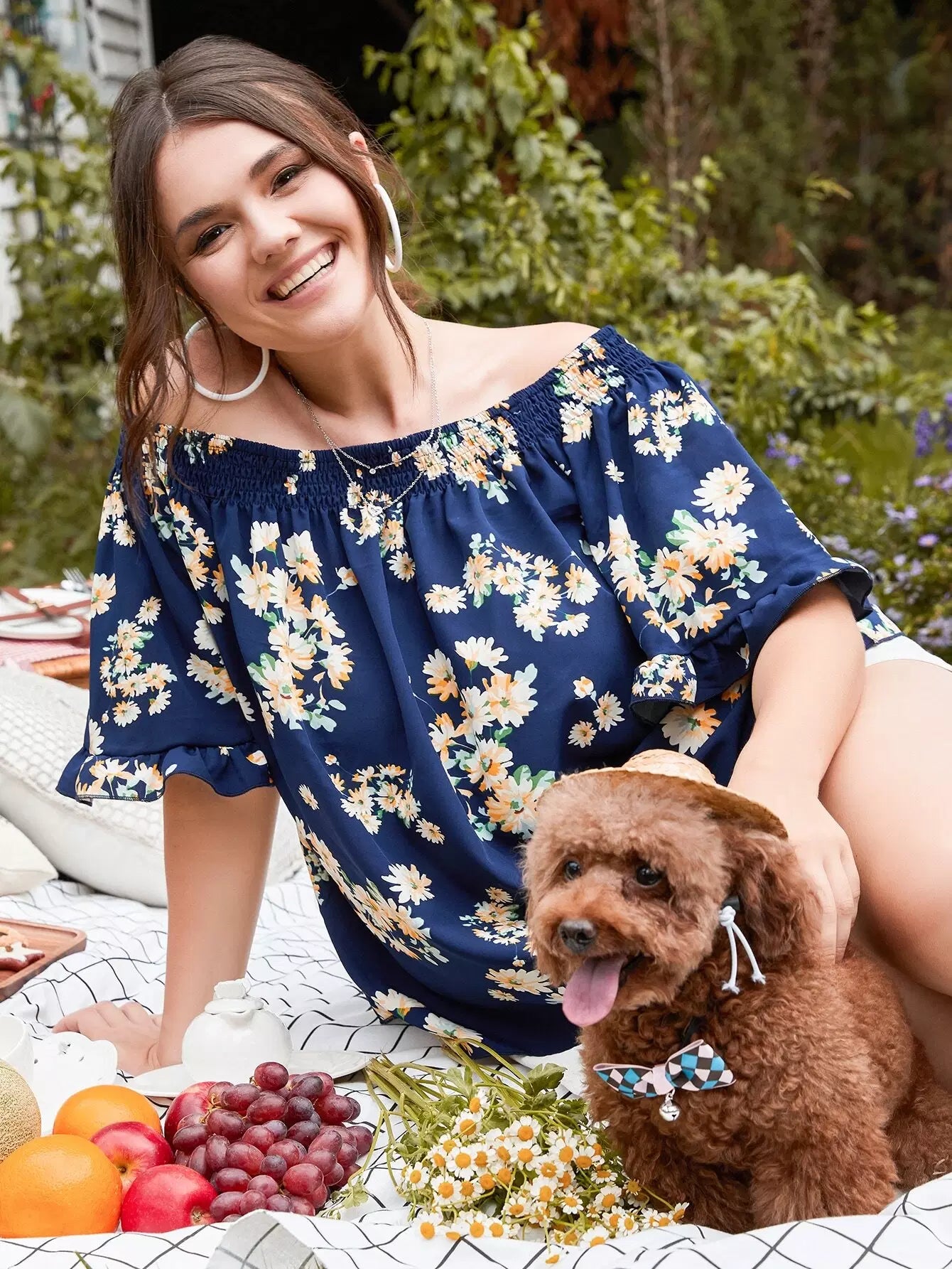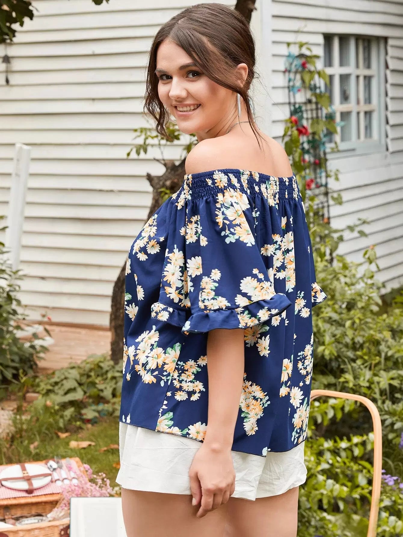 بلوزة بدون أكتاف زهرية زائدة