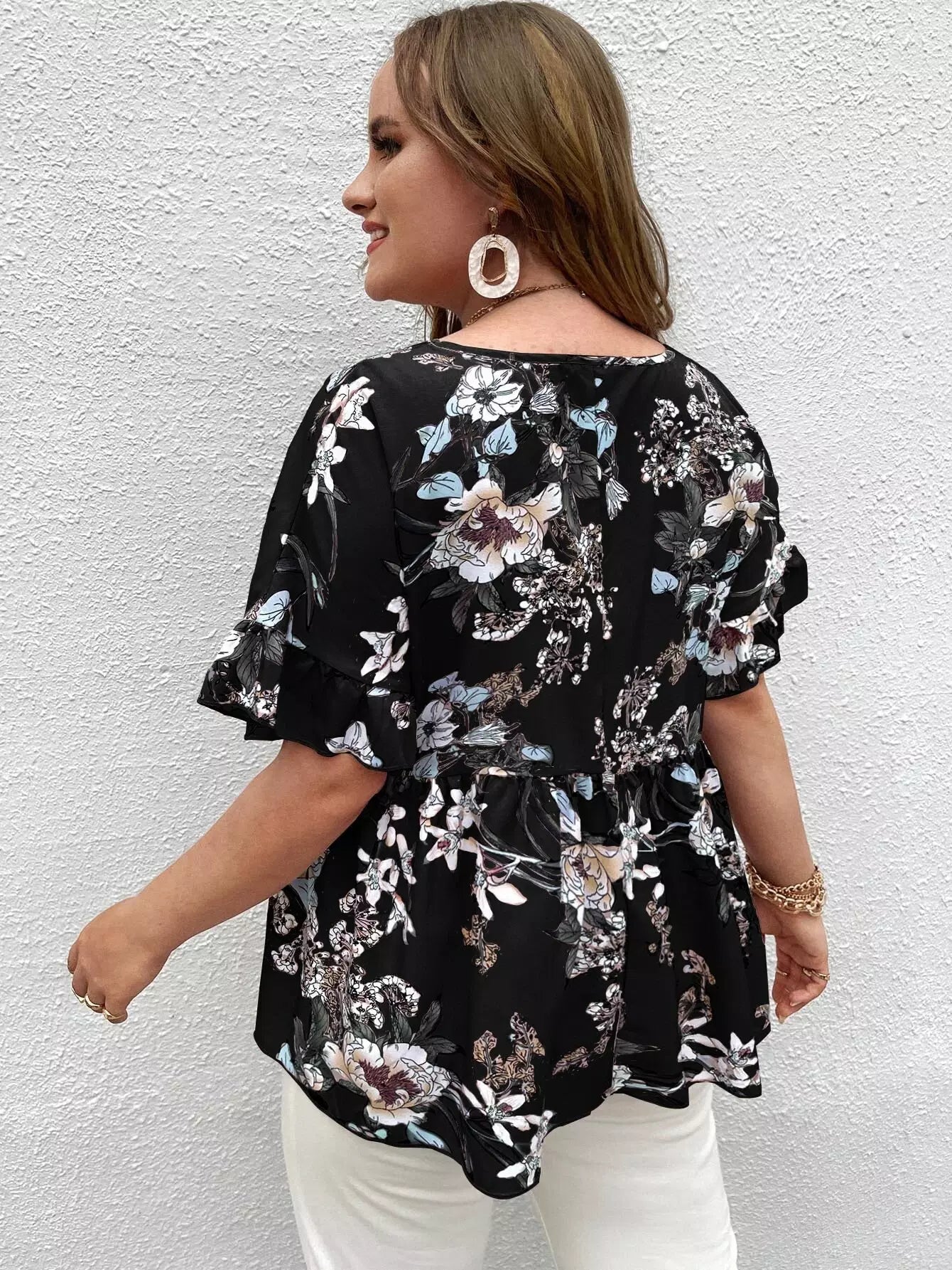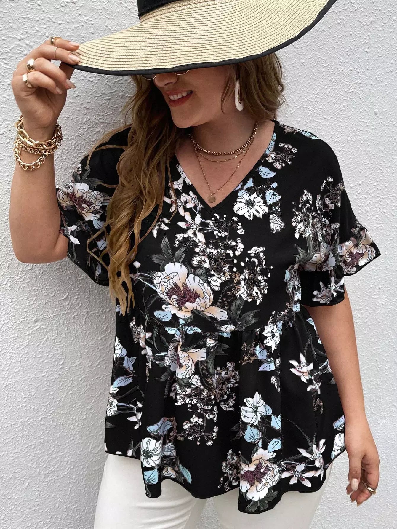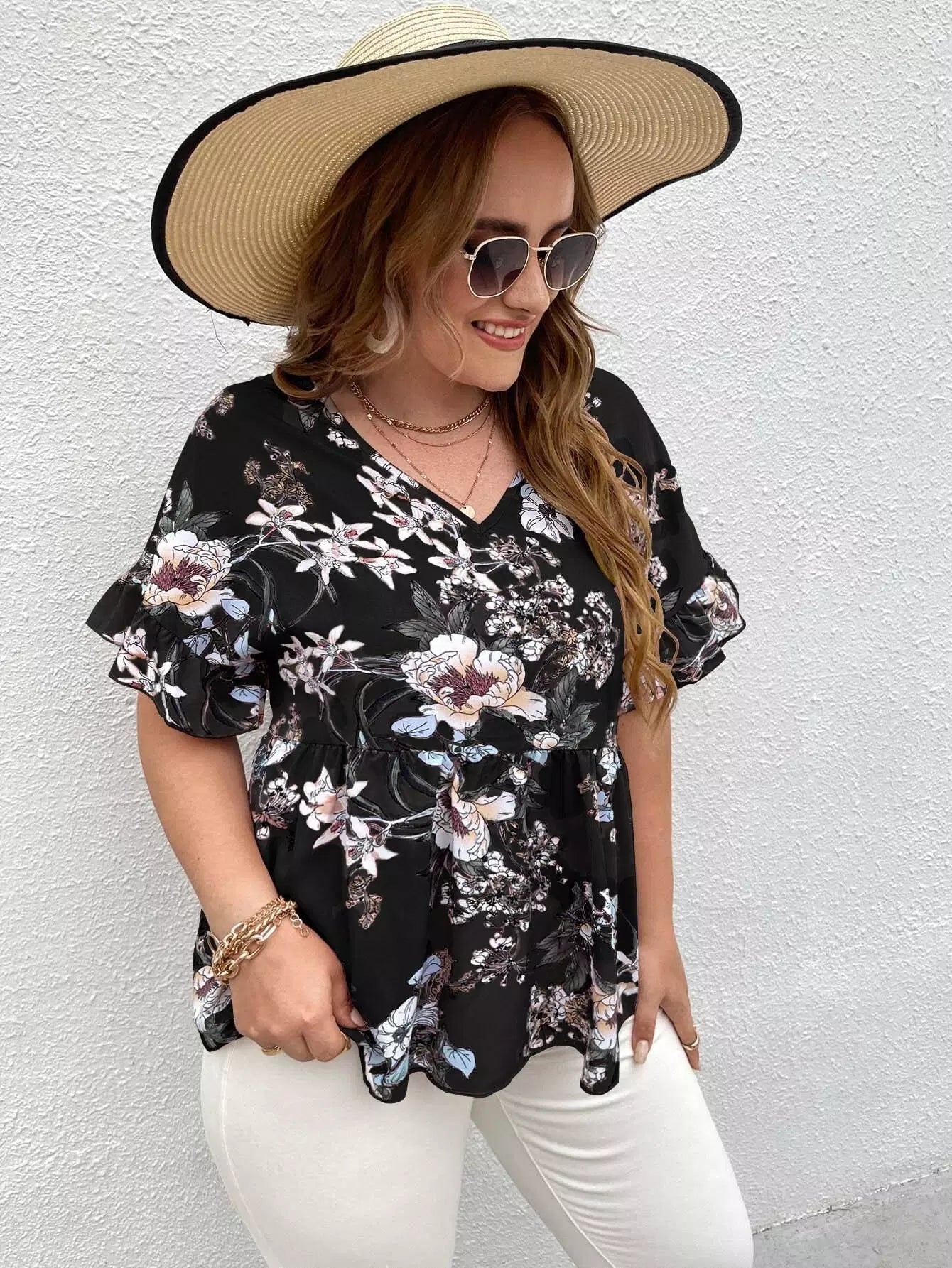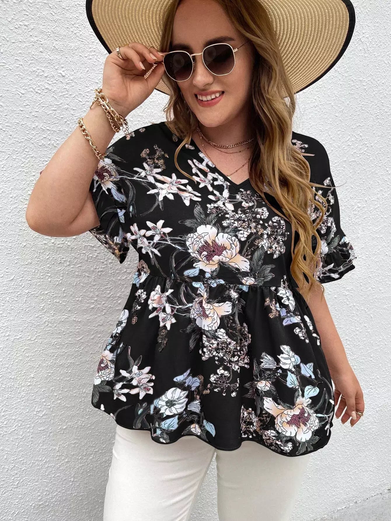 بلوزة بيبي دول مطبوع عليها زهور زائد