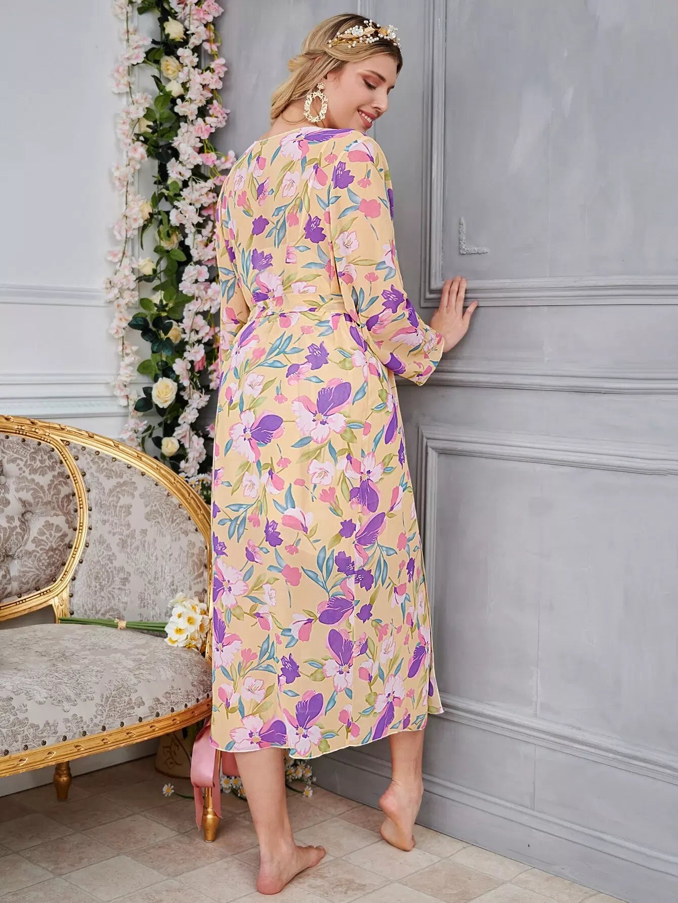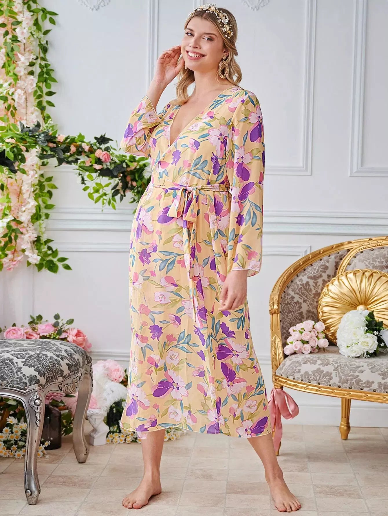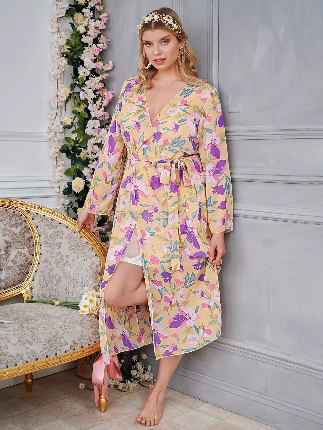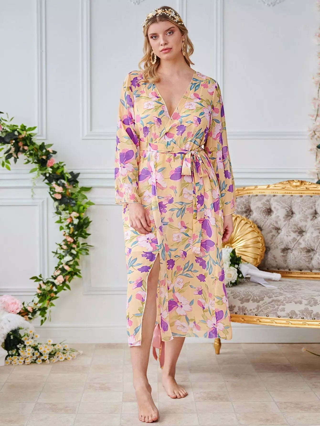بالإضافة إلى رداء طباعة الأزهار بدون حزام