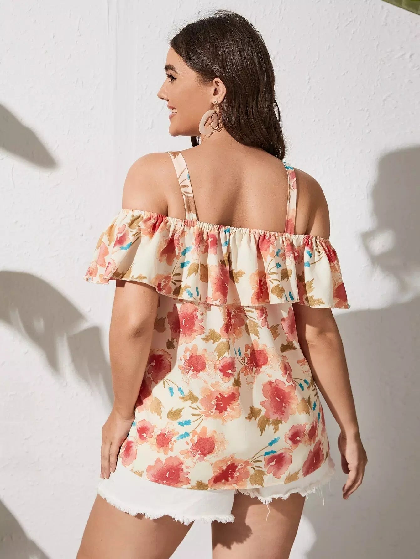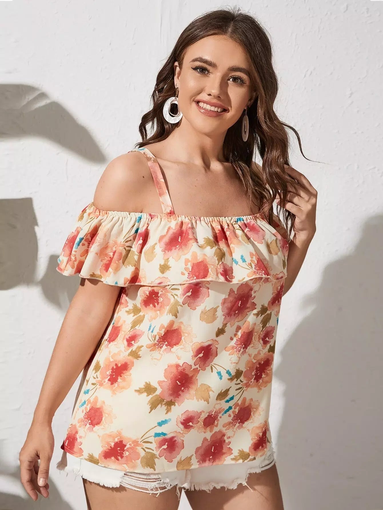 بلوزة بدون أكتاف باردة مطبوع عليها زهور مطبوع عليها أكتاف باردة