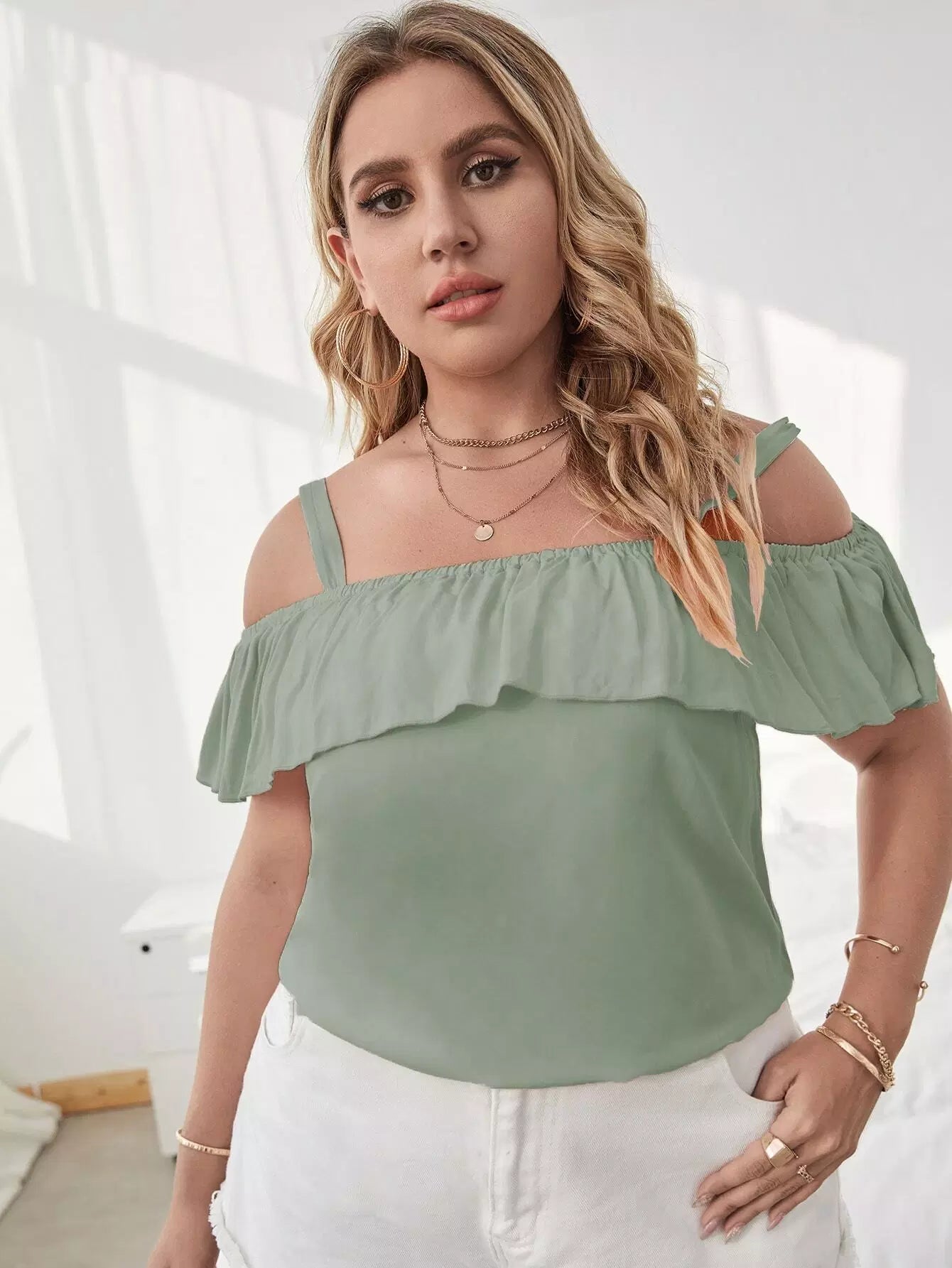 بلوزة بدون أكتاف باردة مطبوع عليها زهور مطبوع عليها أكتاف باردة