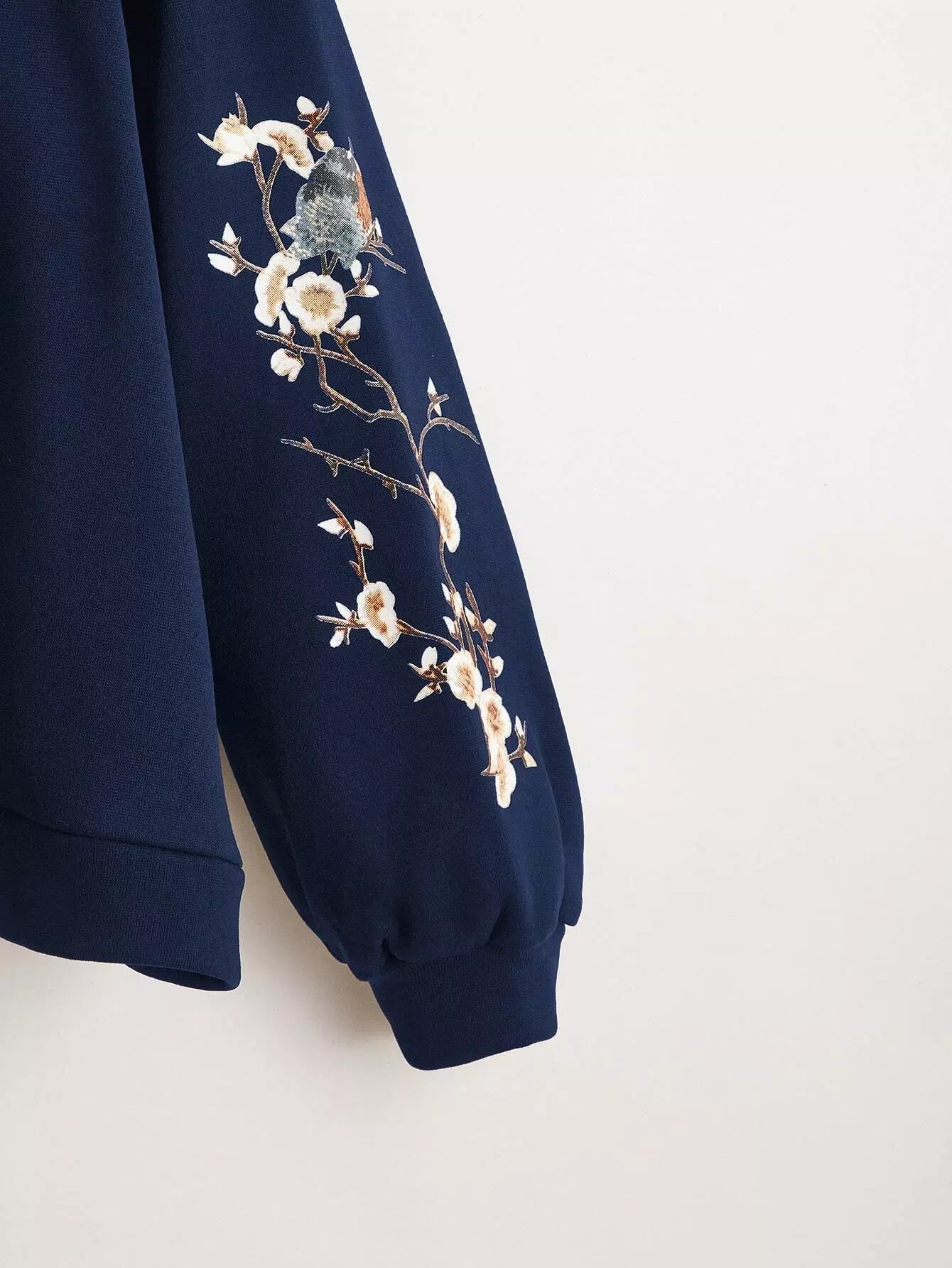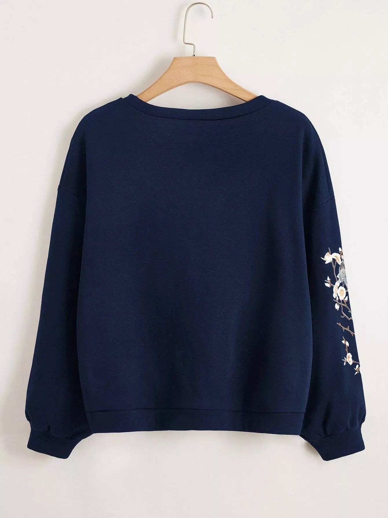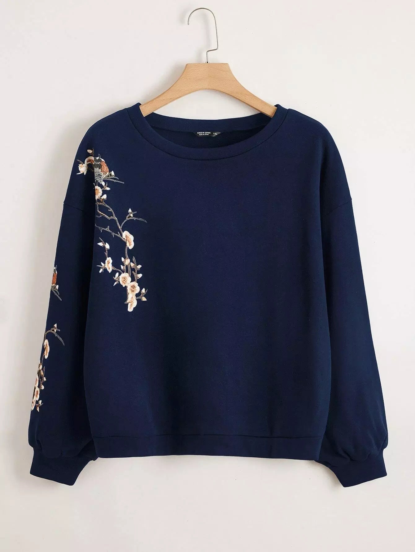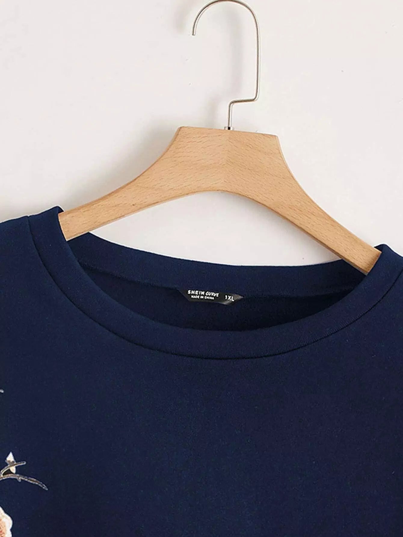 بلس سويت شيرت منسدل الكتف مطبوع عليه زهور بطبعة زائد