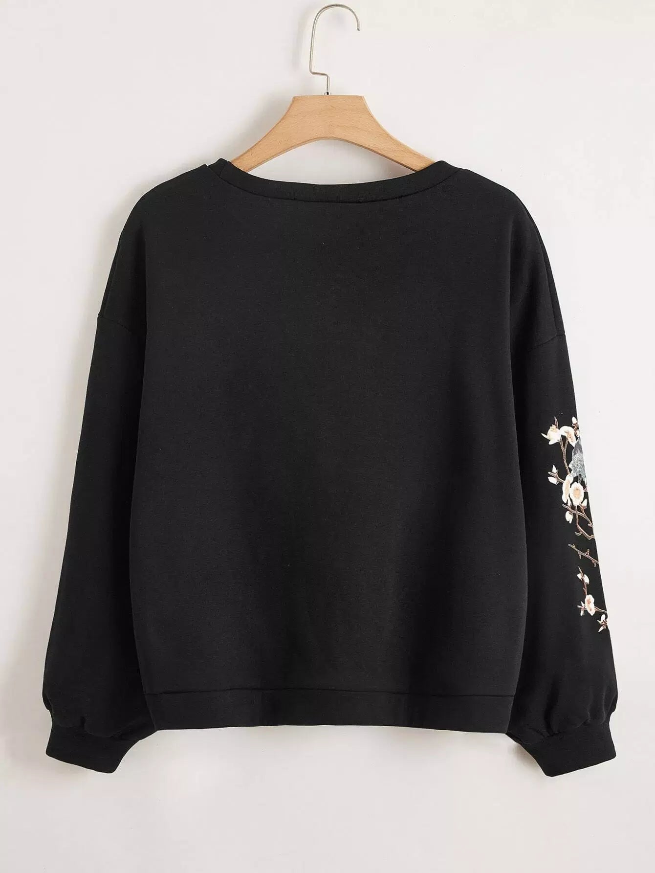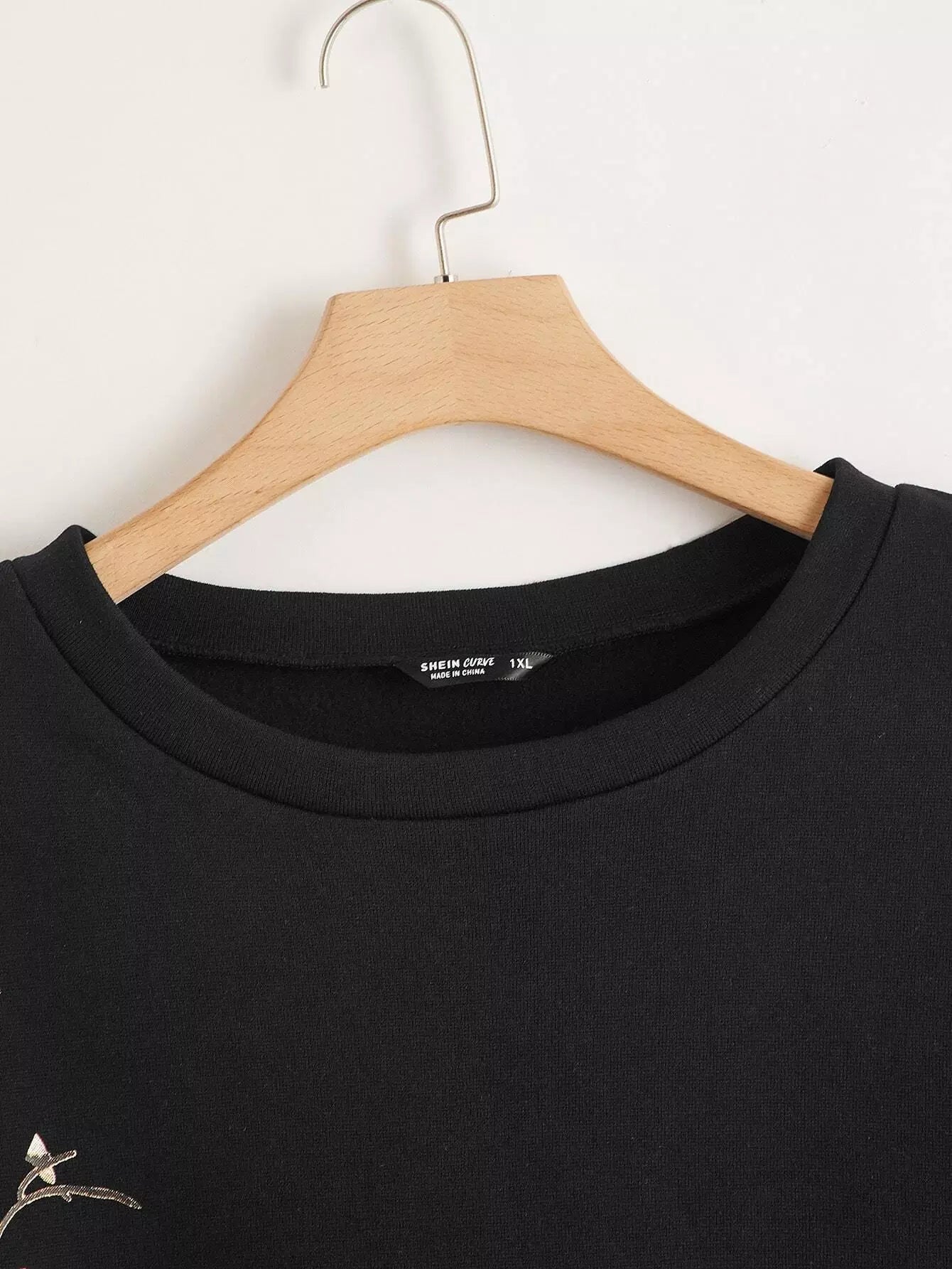 بلس سويت شيرت منسدل الكتف مطبوع عليه زهور بطبعة زائد