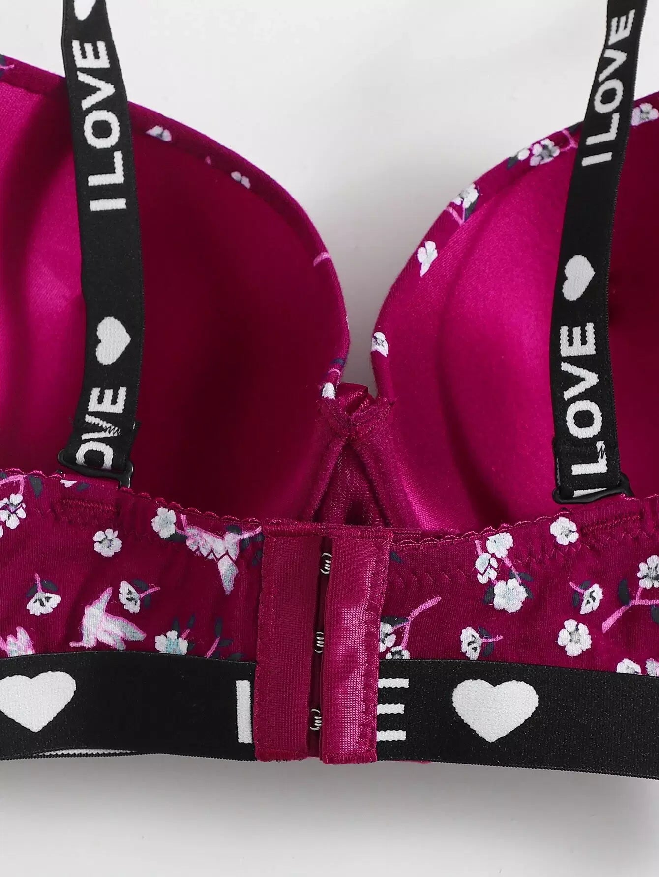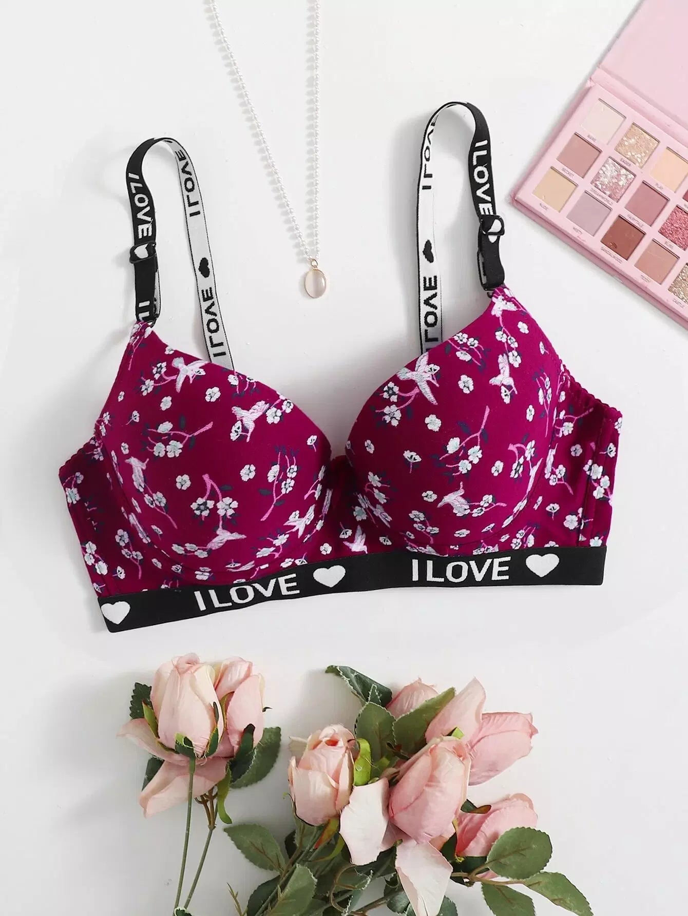 حمالة صدر بسلك داخلي بطبعة زهور وشريط حروف