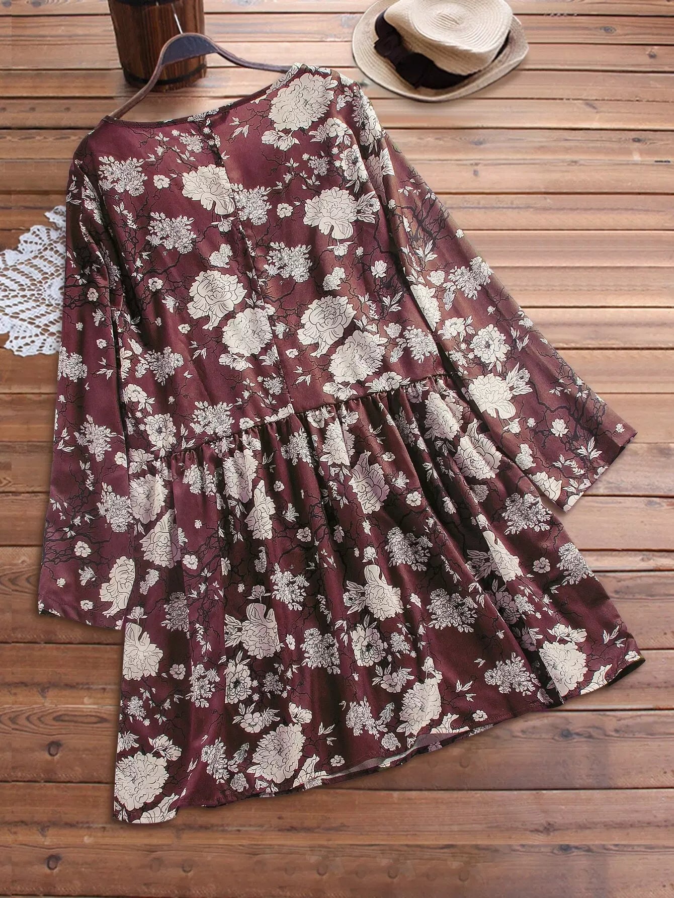 بلوزة مكشكشة بطبعة زهور مكشكشة الحاشية