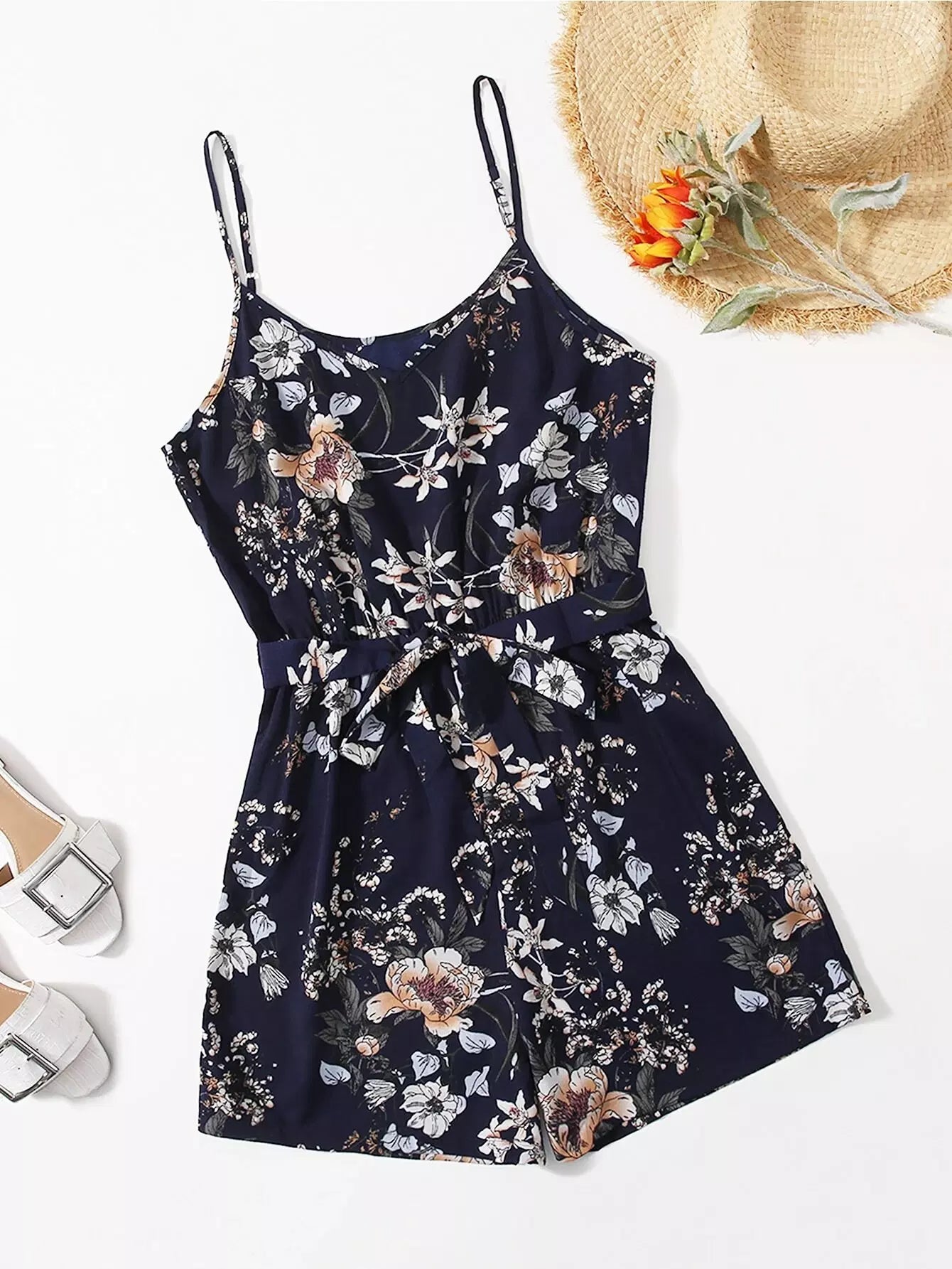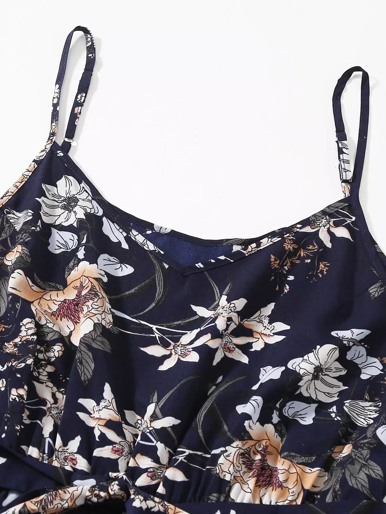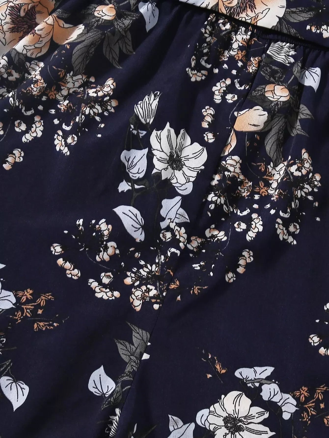 رومبر قصير مزين بطبعة زهور وطبعة زهور وربطة عنق ذاتي