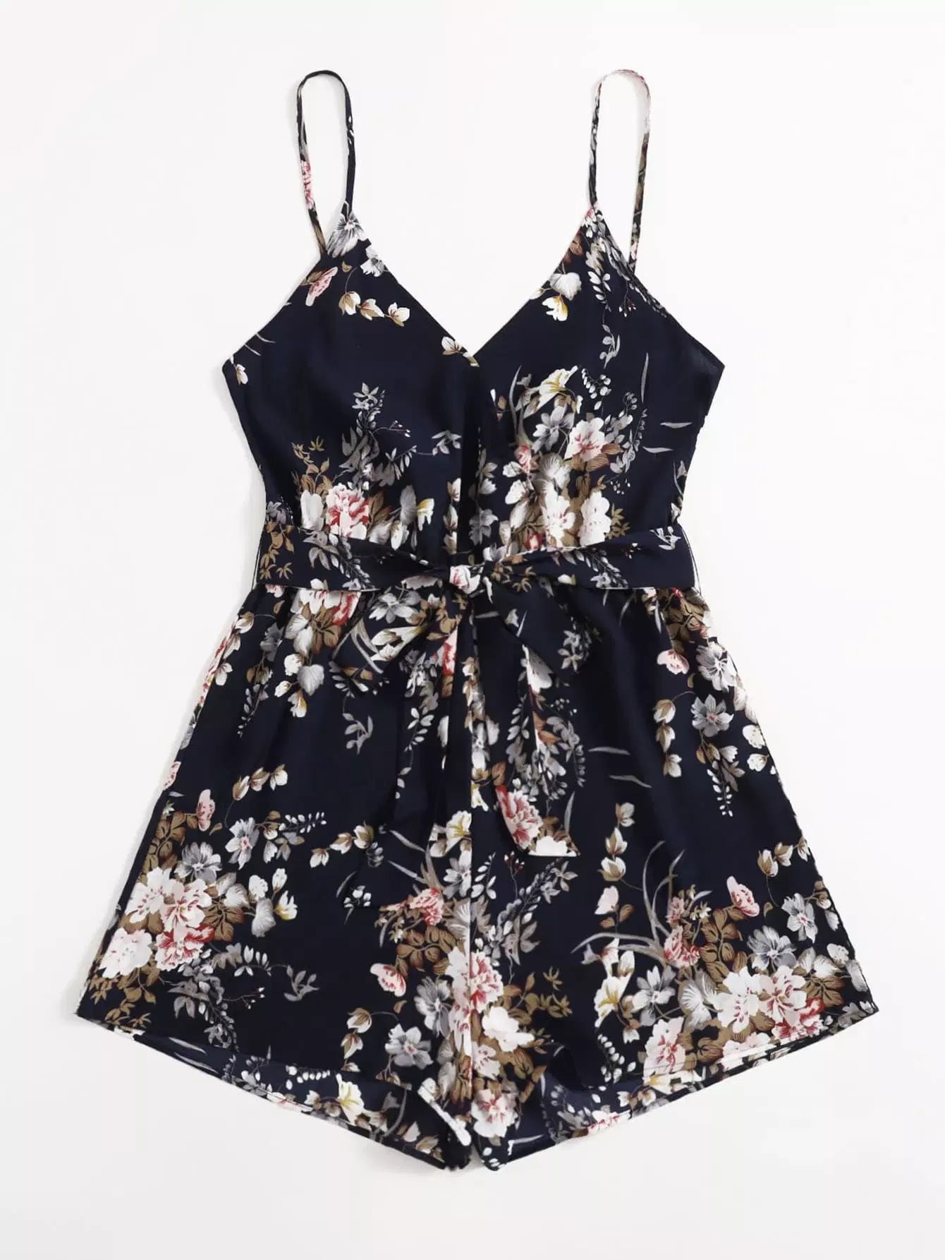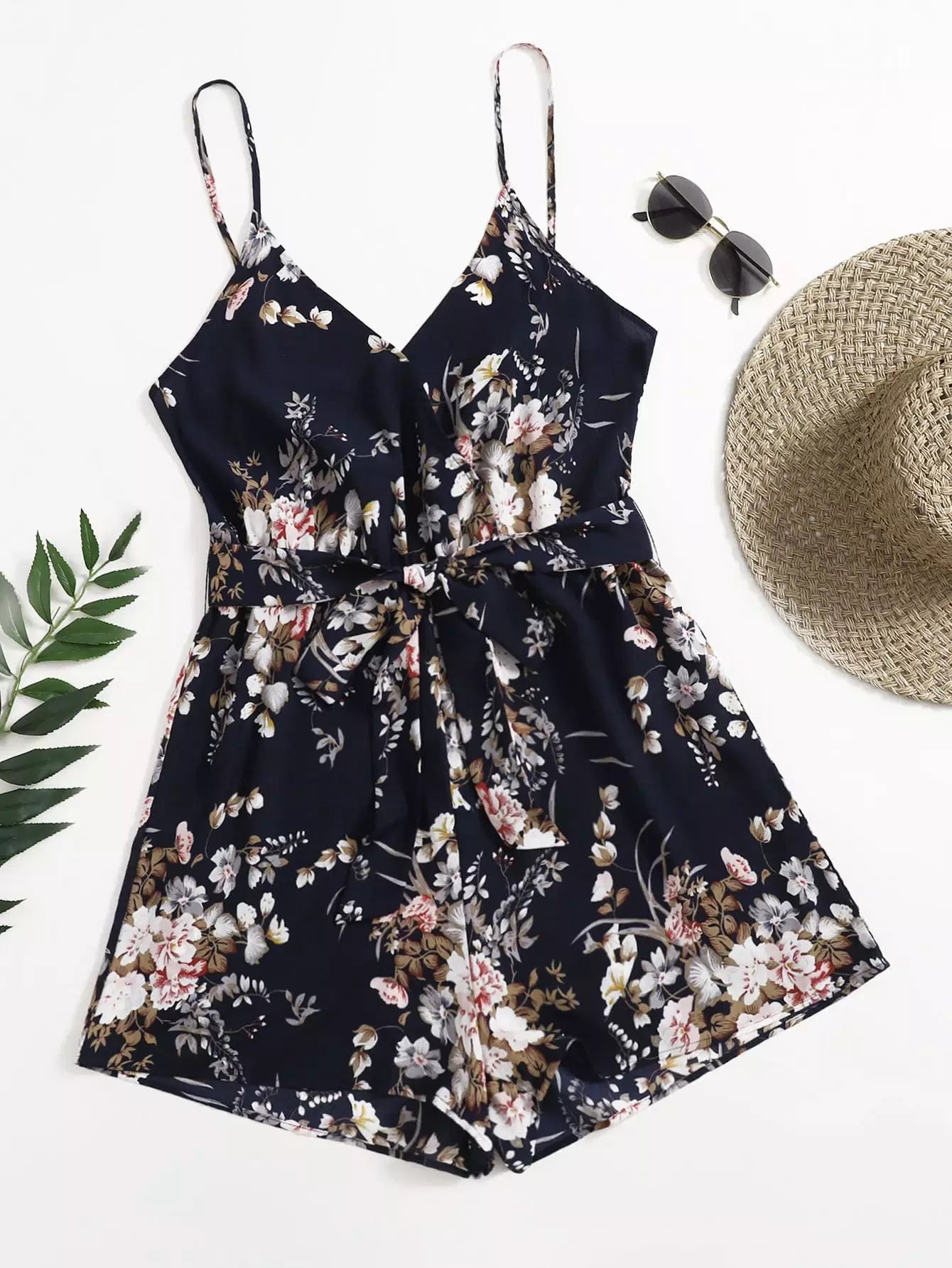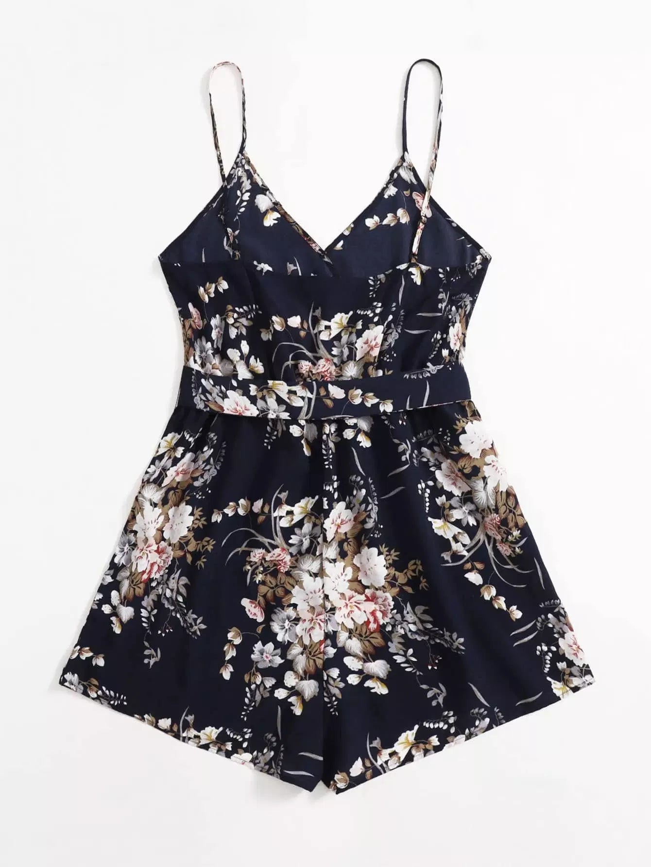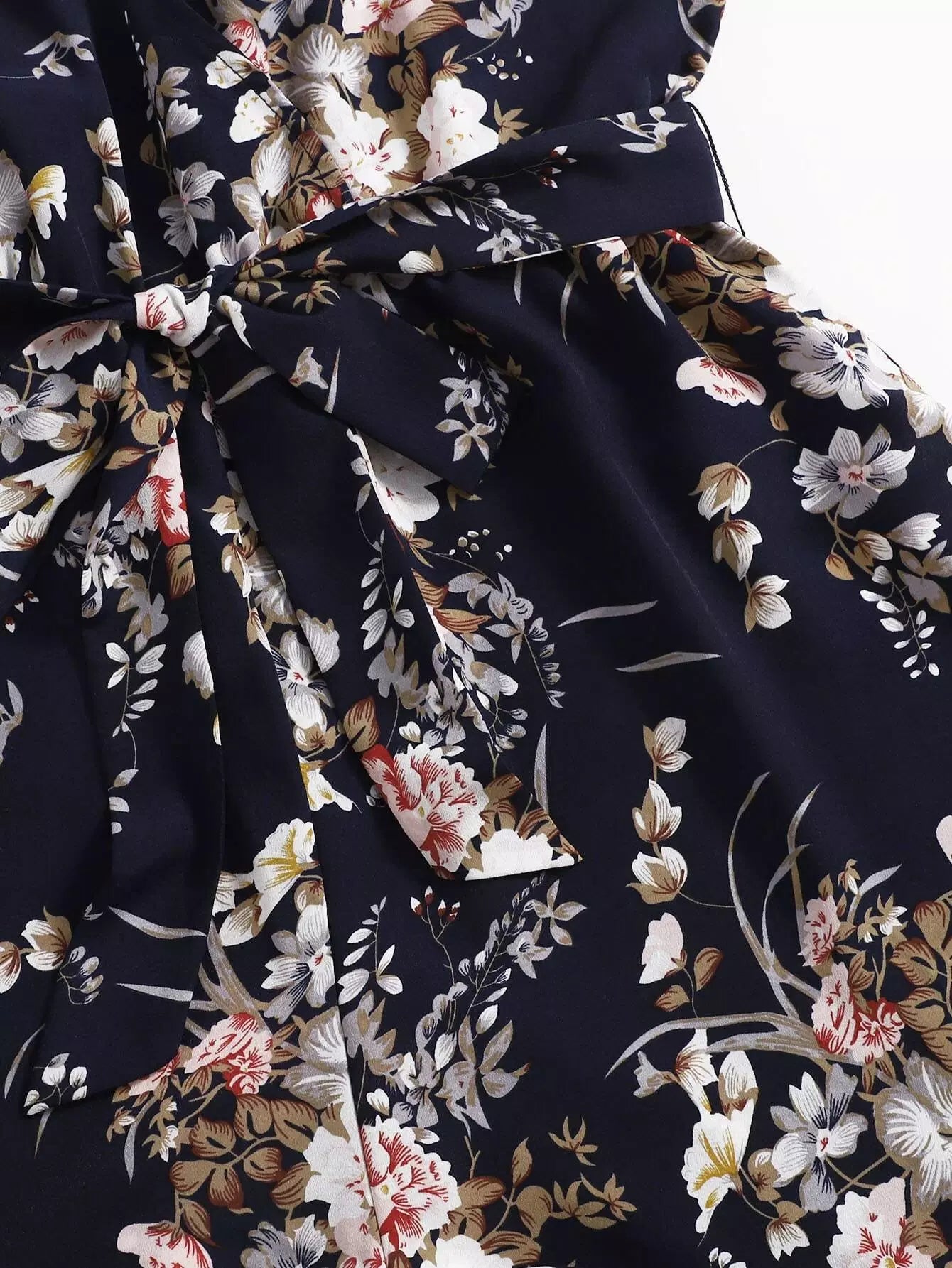 رومبر قصير قصير عريض الساق بطبعة زهور زائد