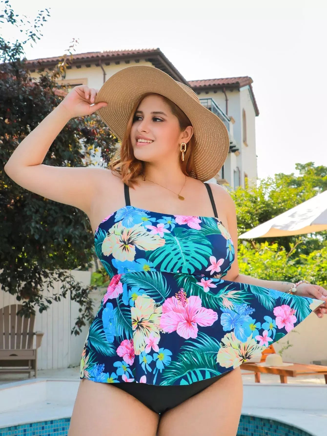 مايوه سباحة بيكيني بطبعة زهور واستوائية زائد