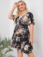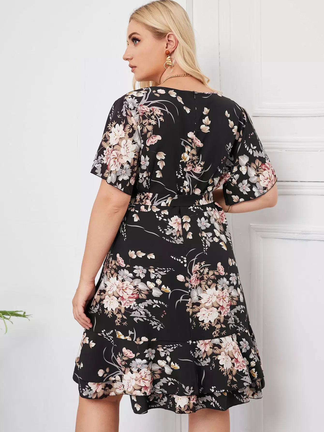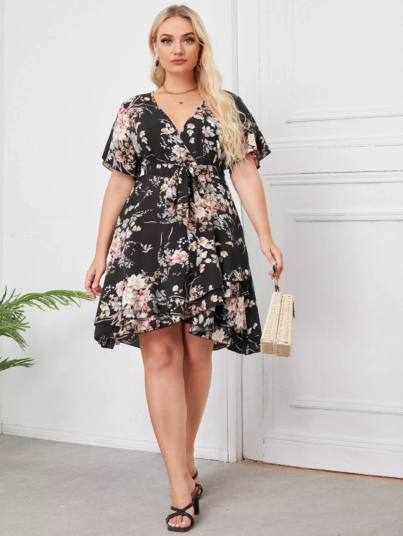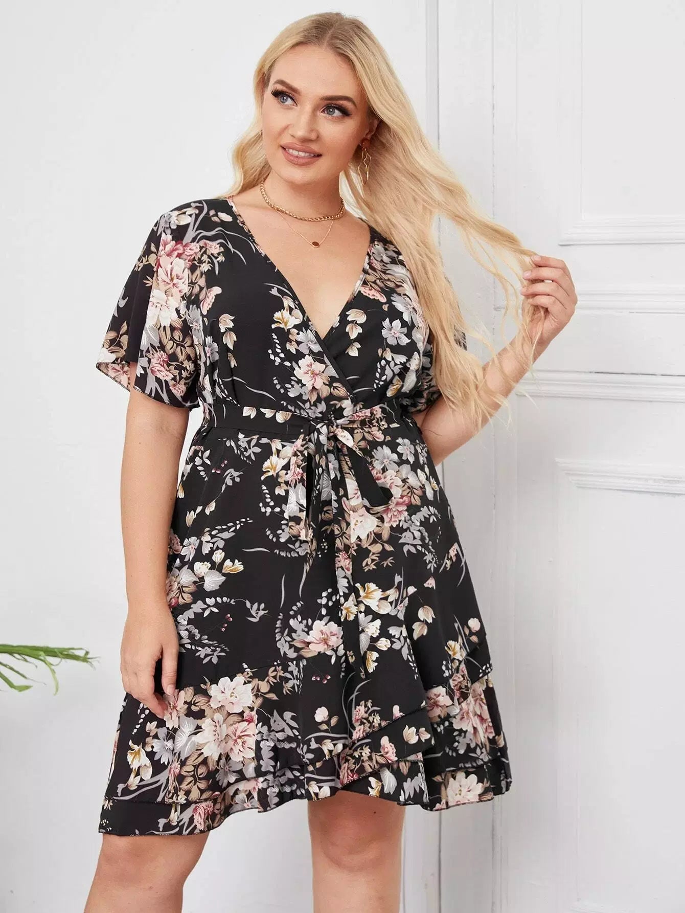 بالإضافة إلى فستان ملفوف على شكل حرف A مزين بالزهور بدون حزام