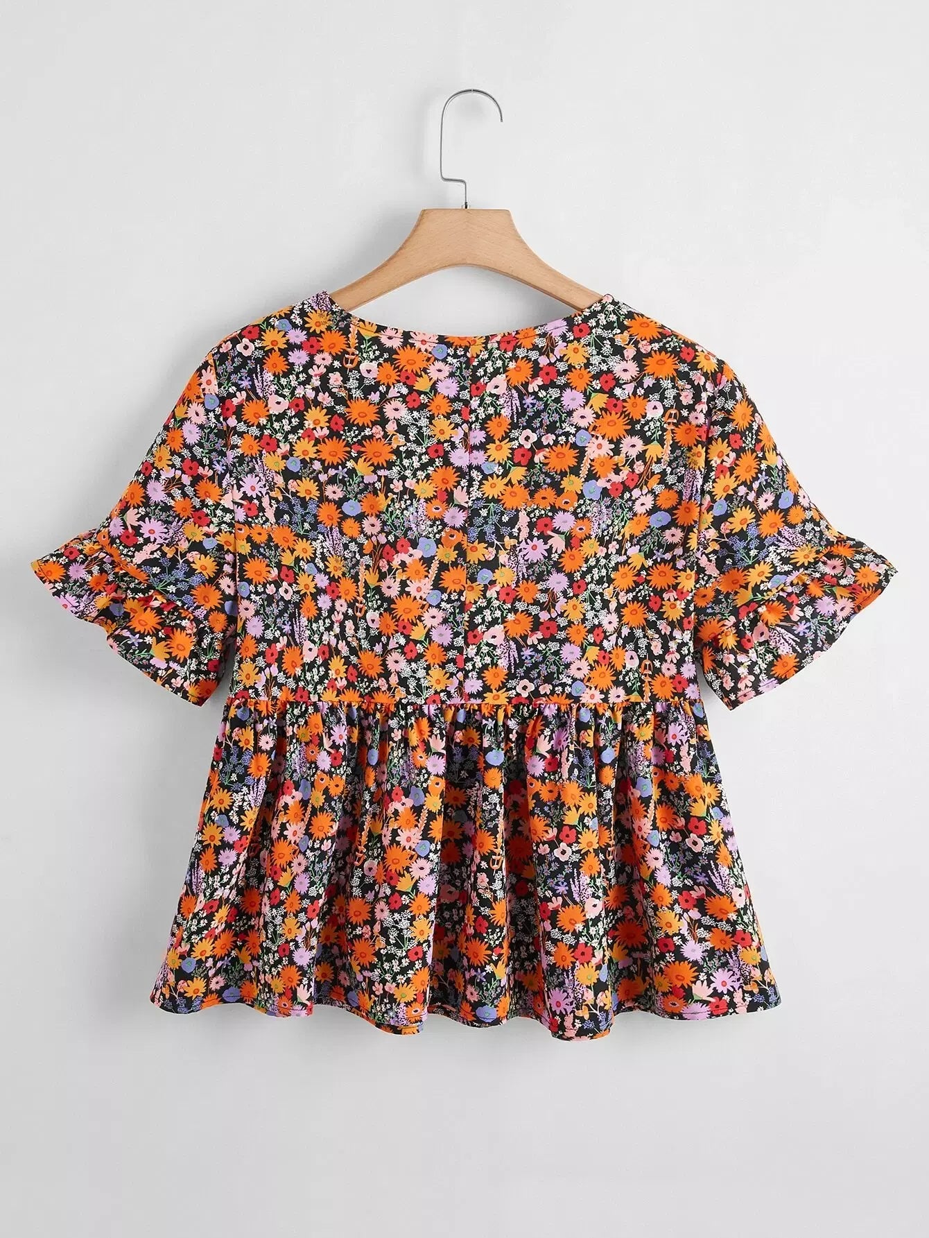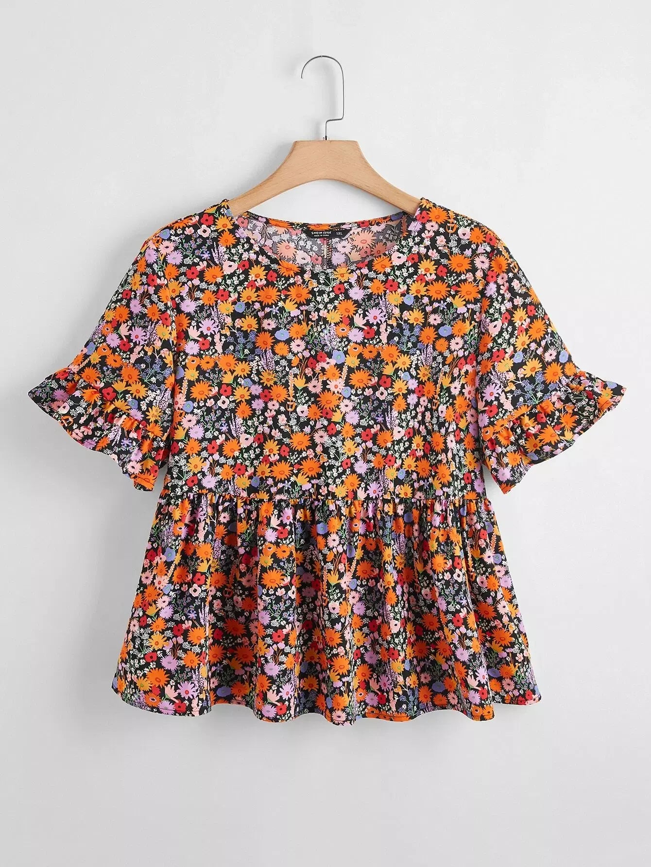 بلوزة بأكمام منفوشة بأزهار ديتسي بيبلوم زهرية