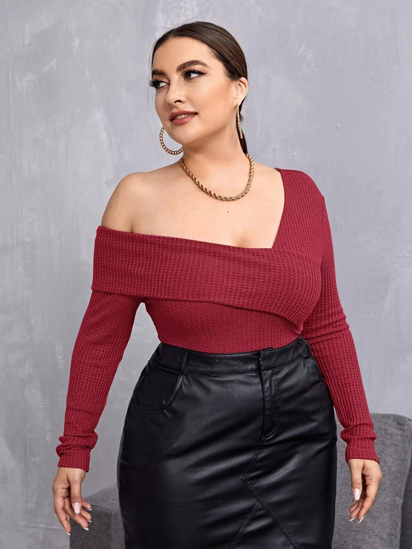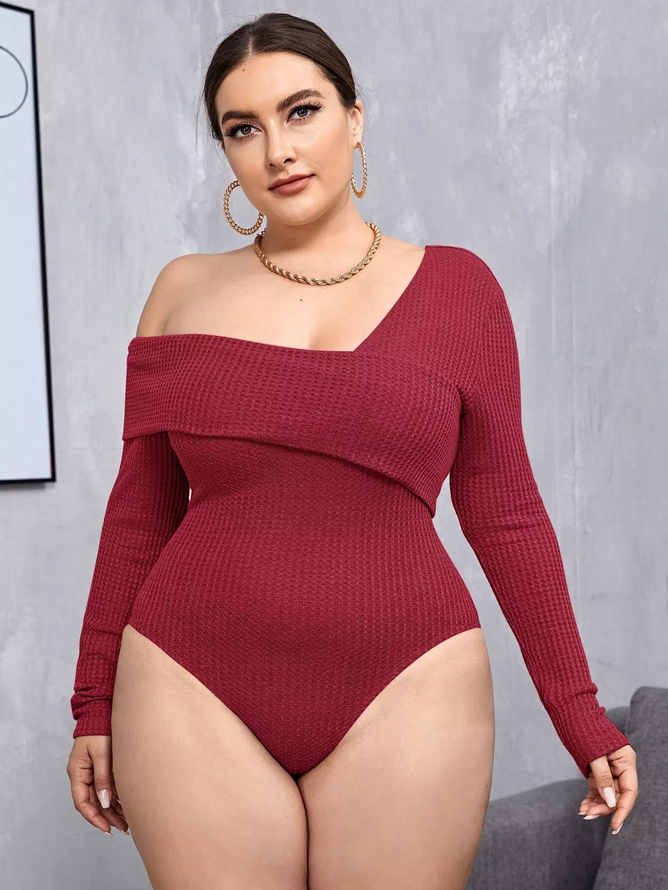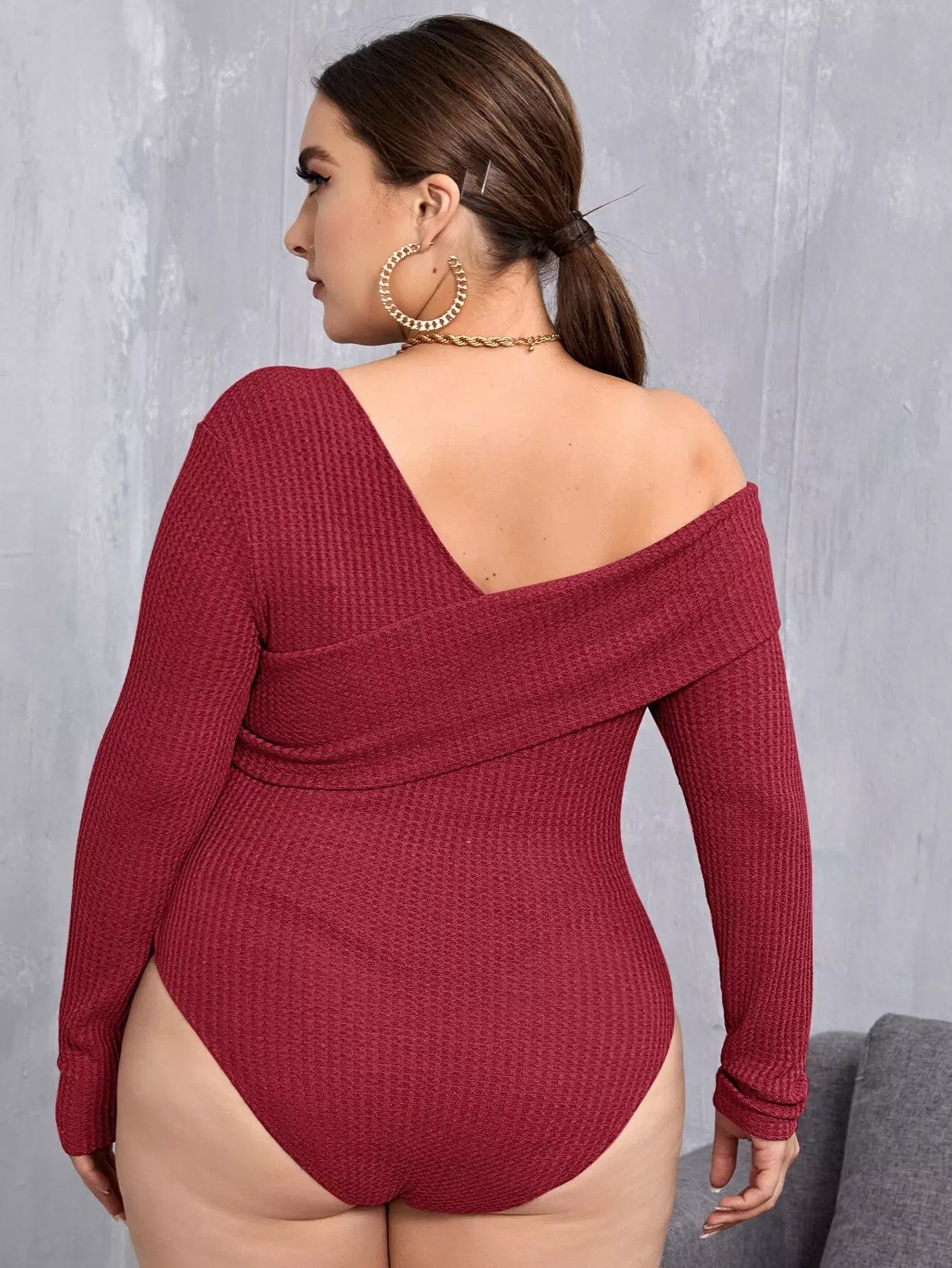 لباس قطعة واحدة برقبة غير متناسقة بفتحة رقبة غير متناسقة ومتماوجة