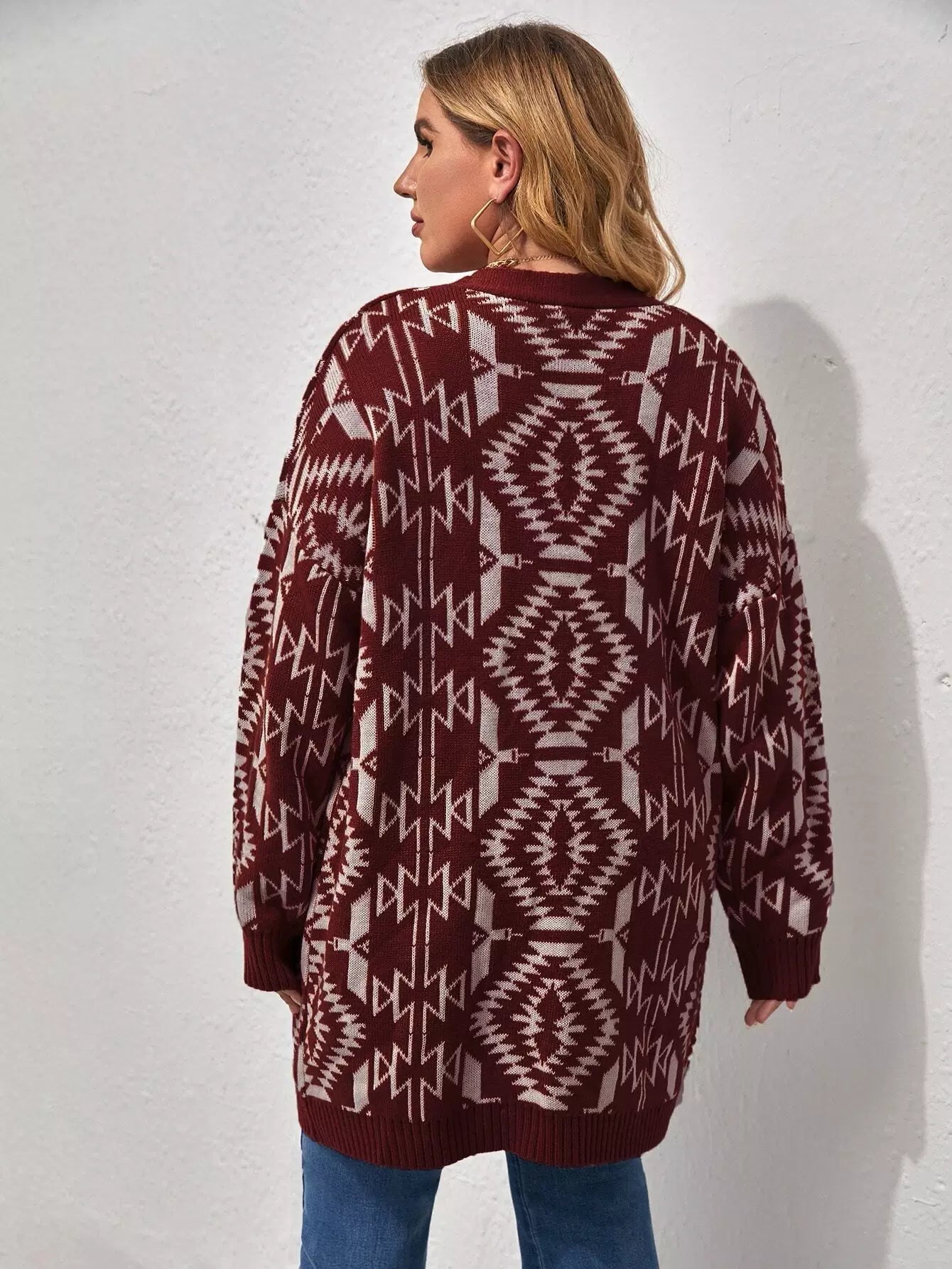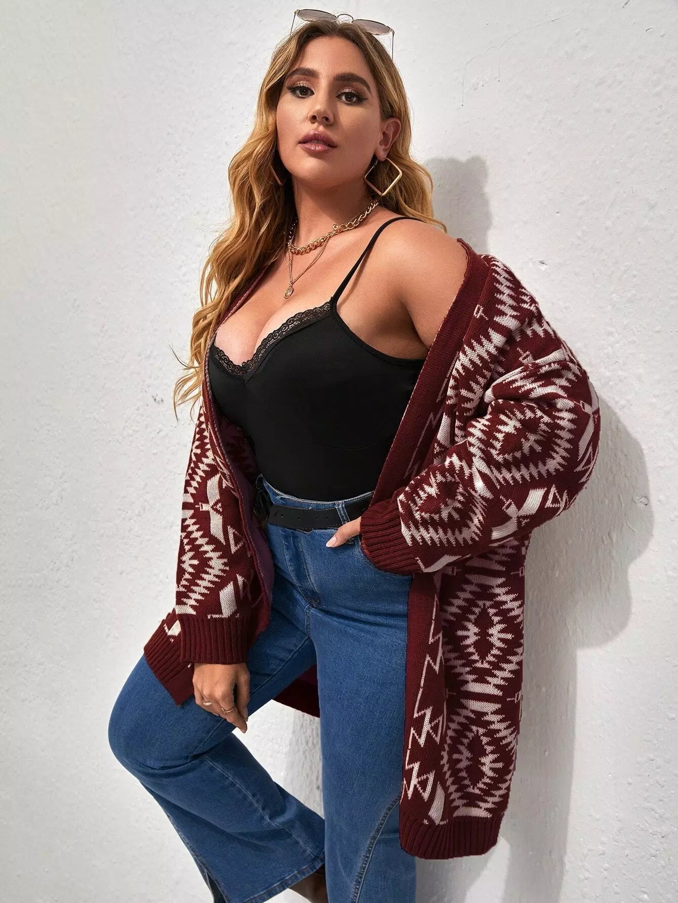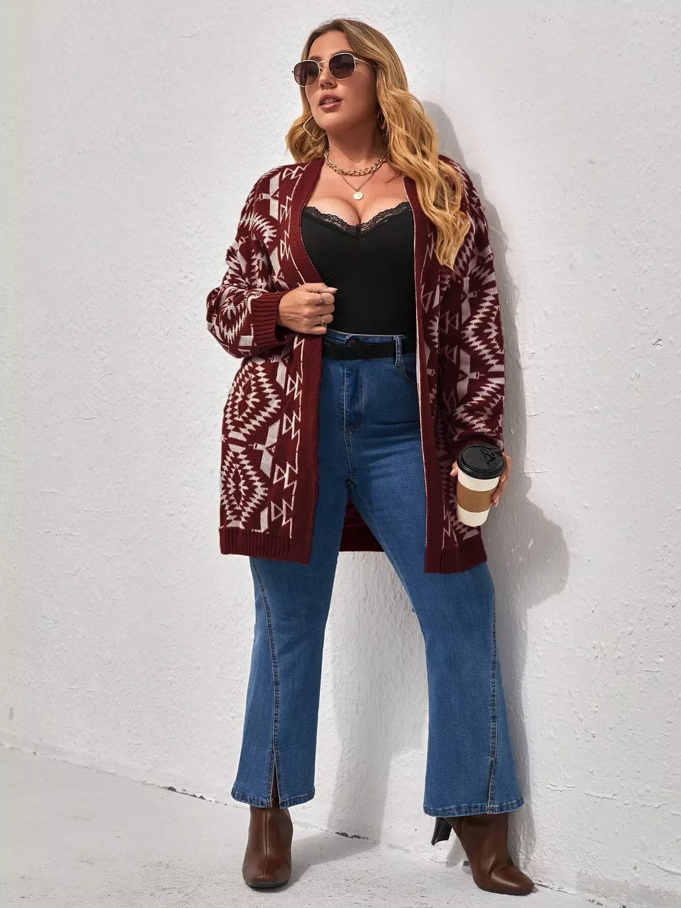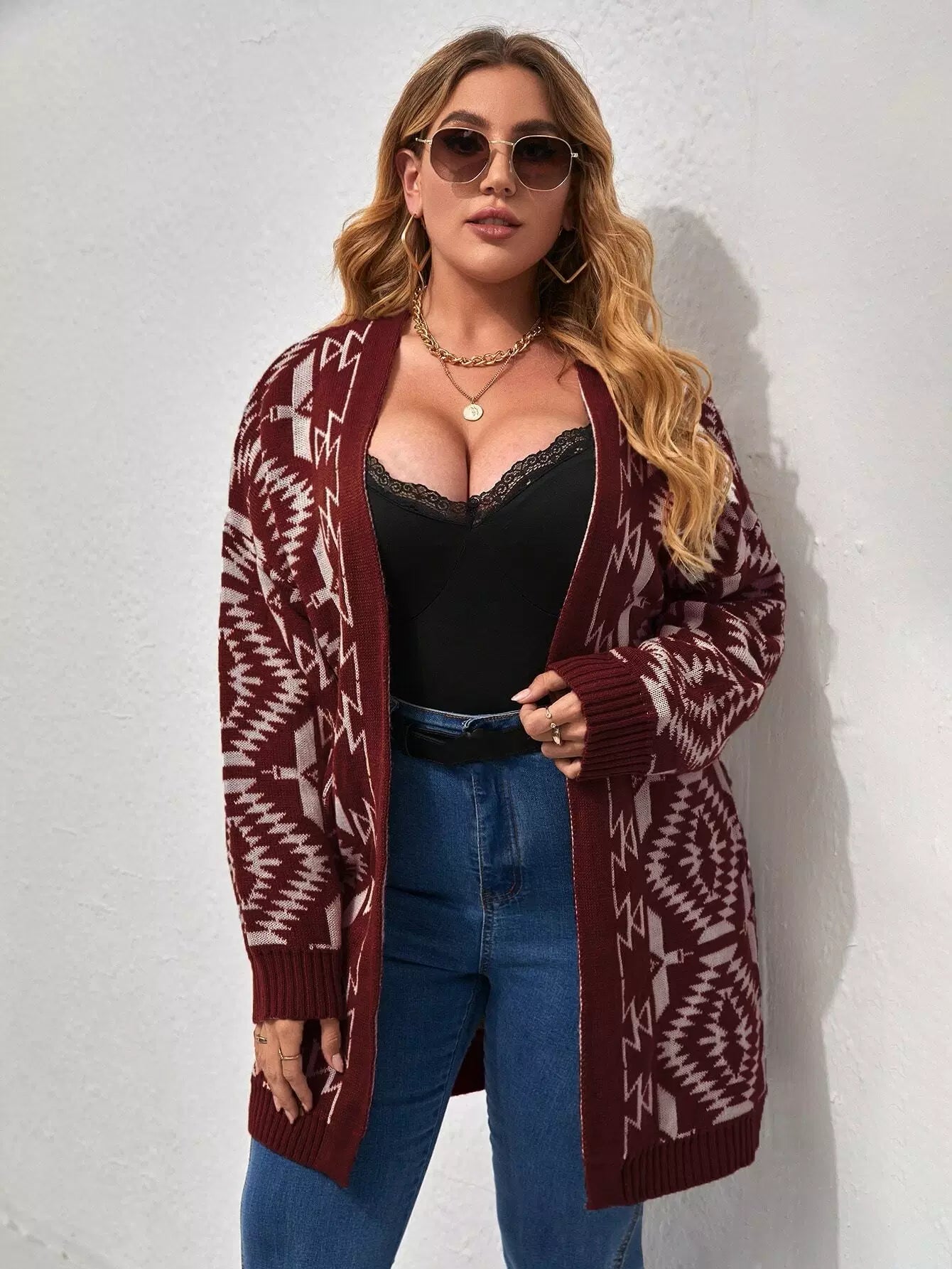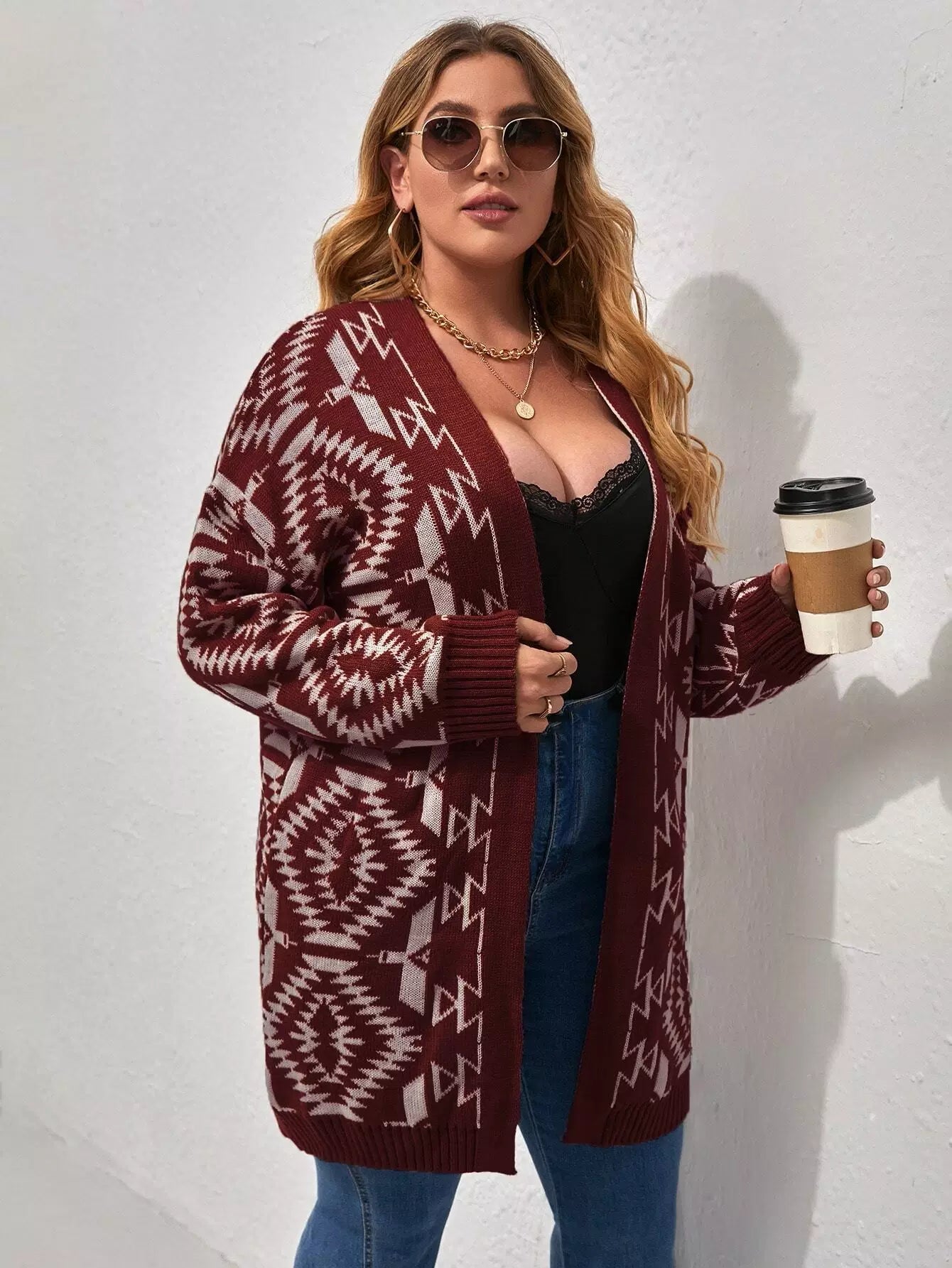 كارديغان مفتوح منسدل الكتفين مفتوح من الأمام بنقشة جيو بلس