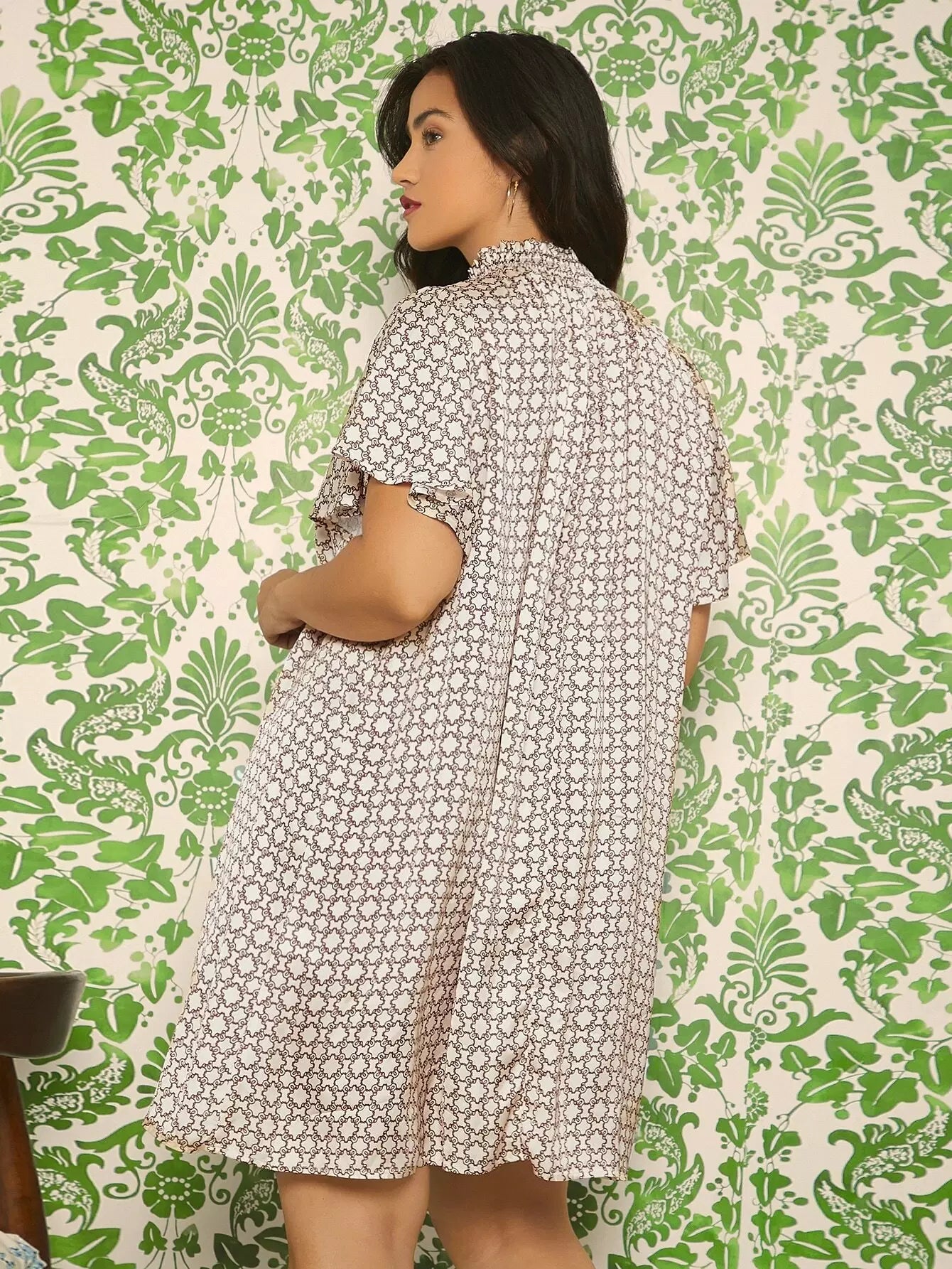 فستان تونيك بأكمام على شكل فراشة مطبوع بطبعة جيو زائد