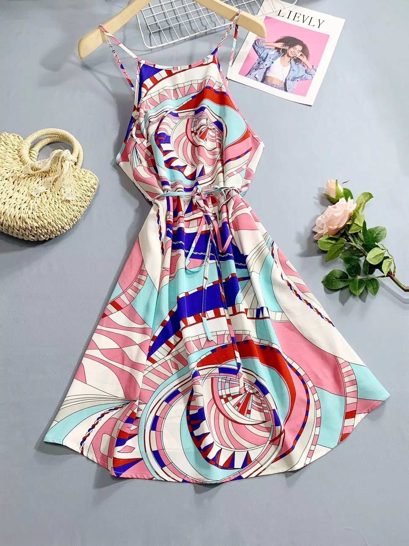 بالإضافة إلى فستان كامي بطبعات جرافيك بدون حزام