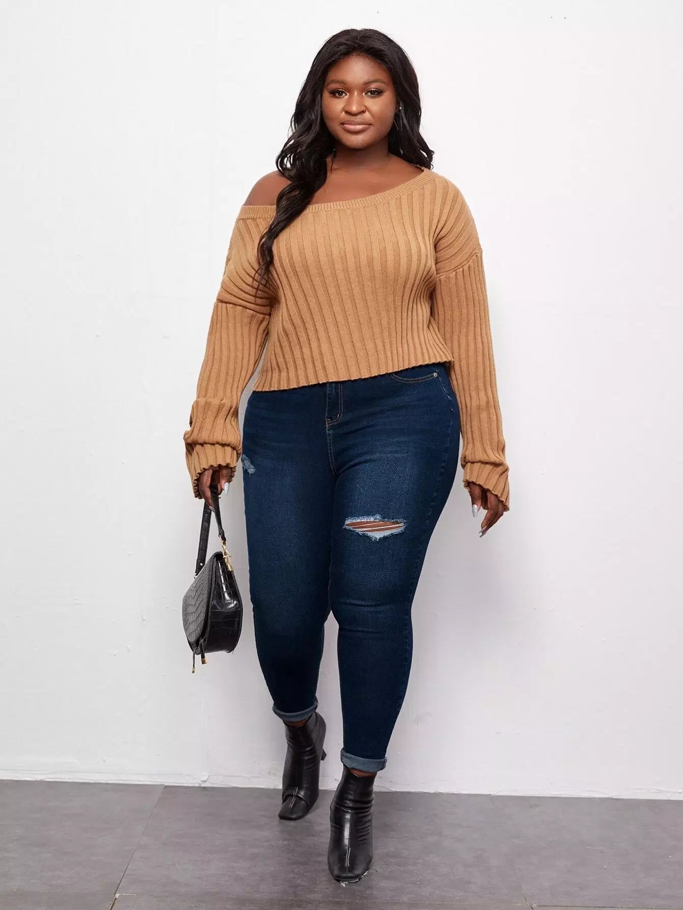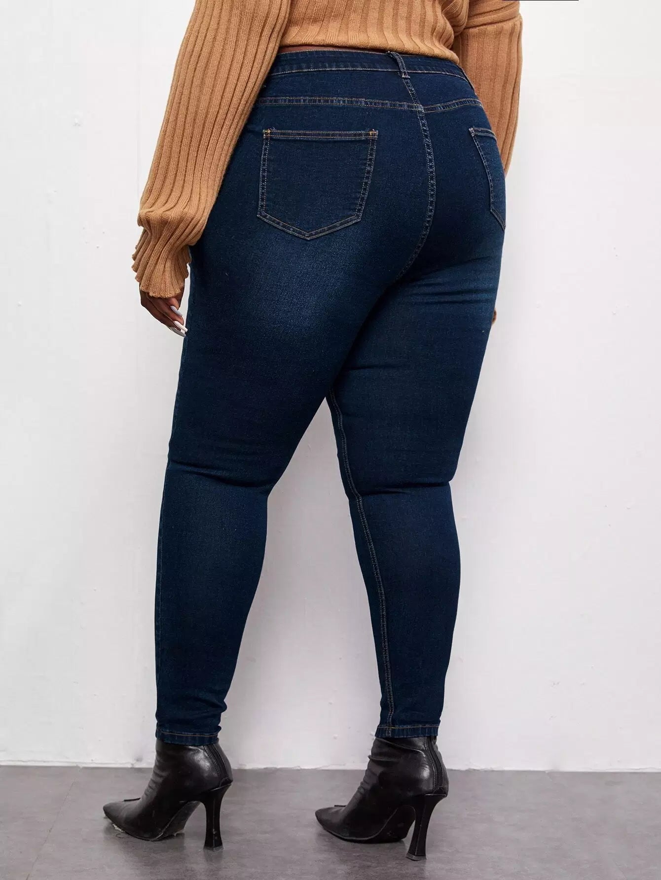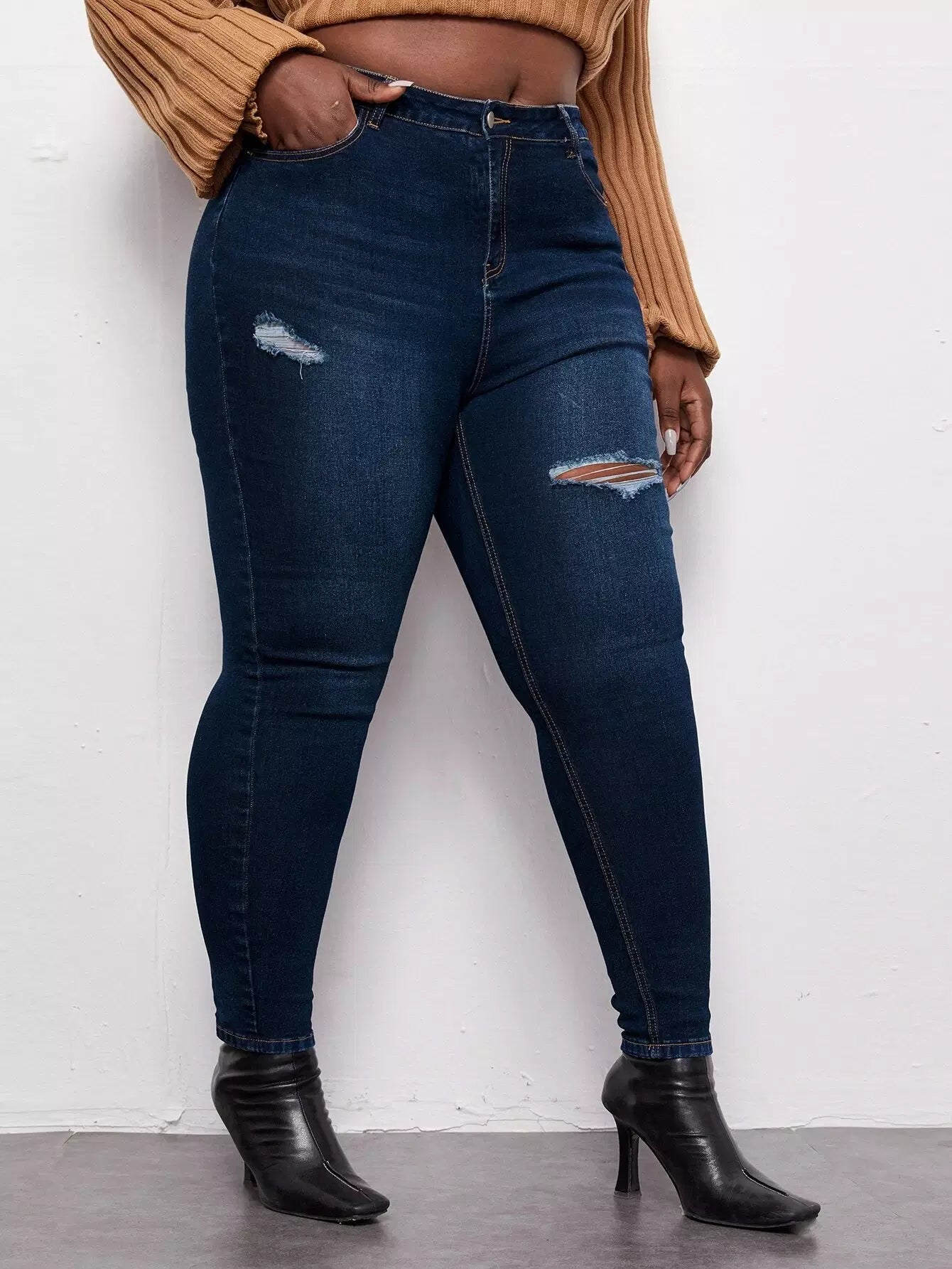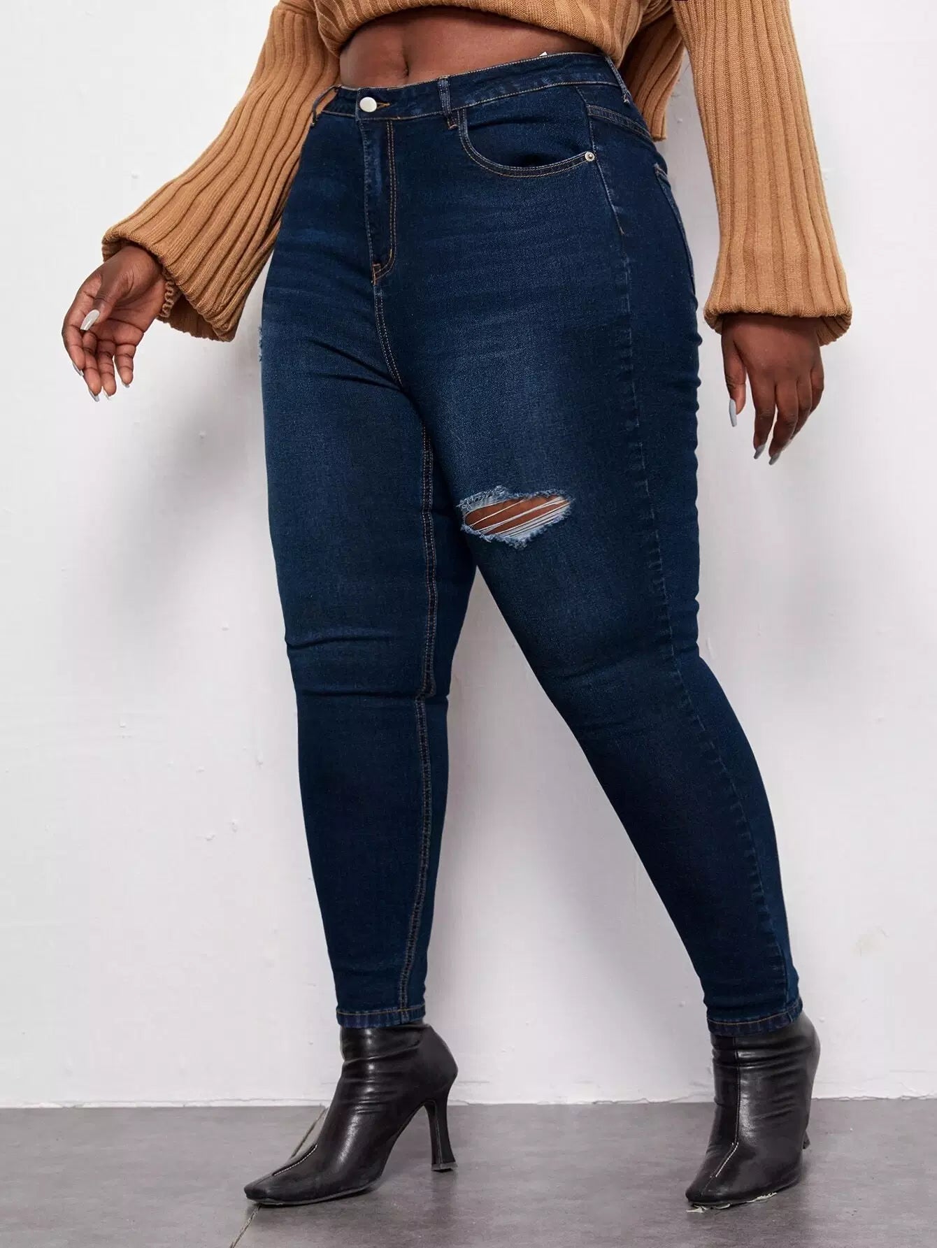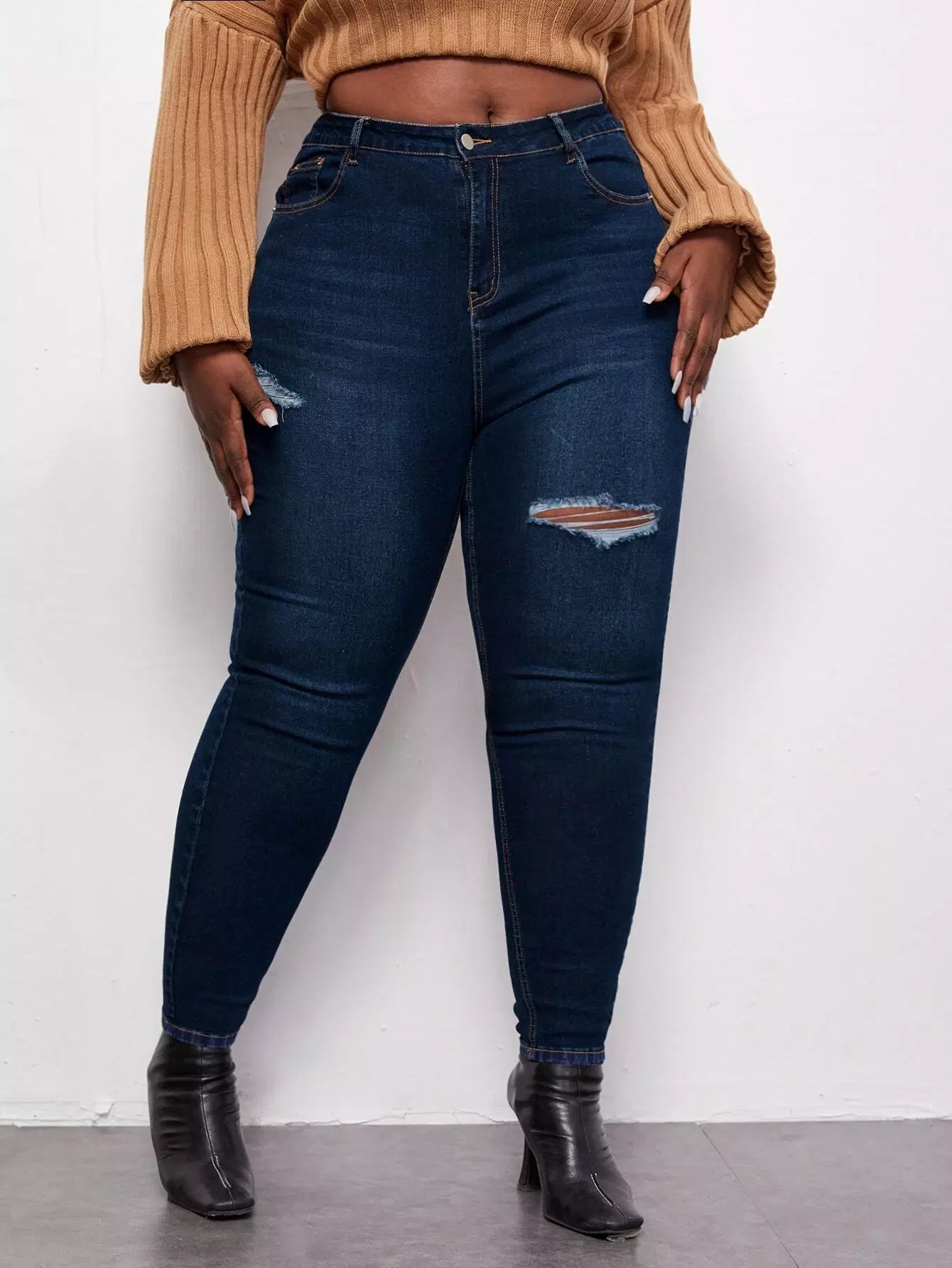 نحيف - مقاس كبير بنطال جينز سكيني ممزق عالي المرونة
