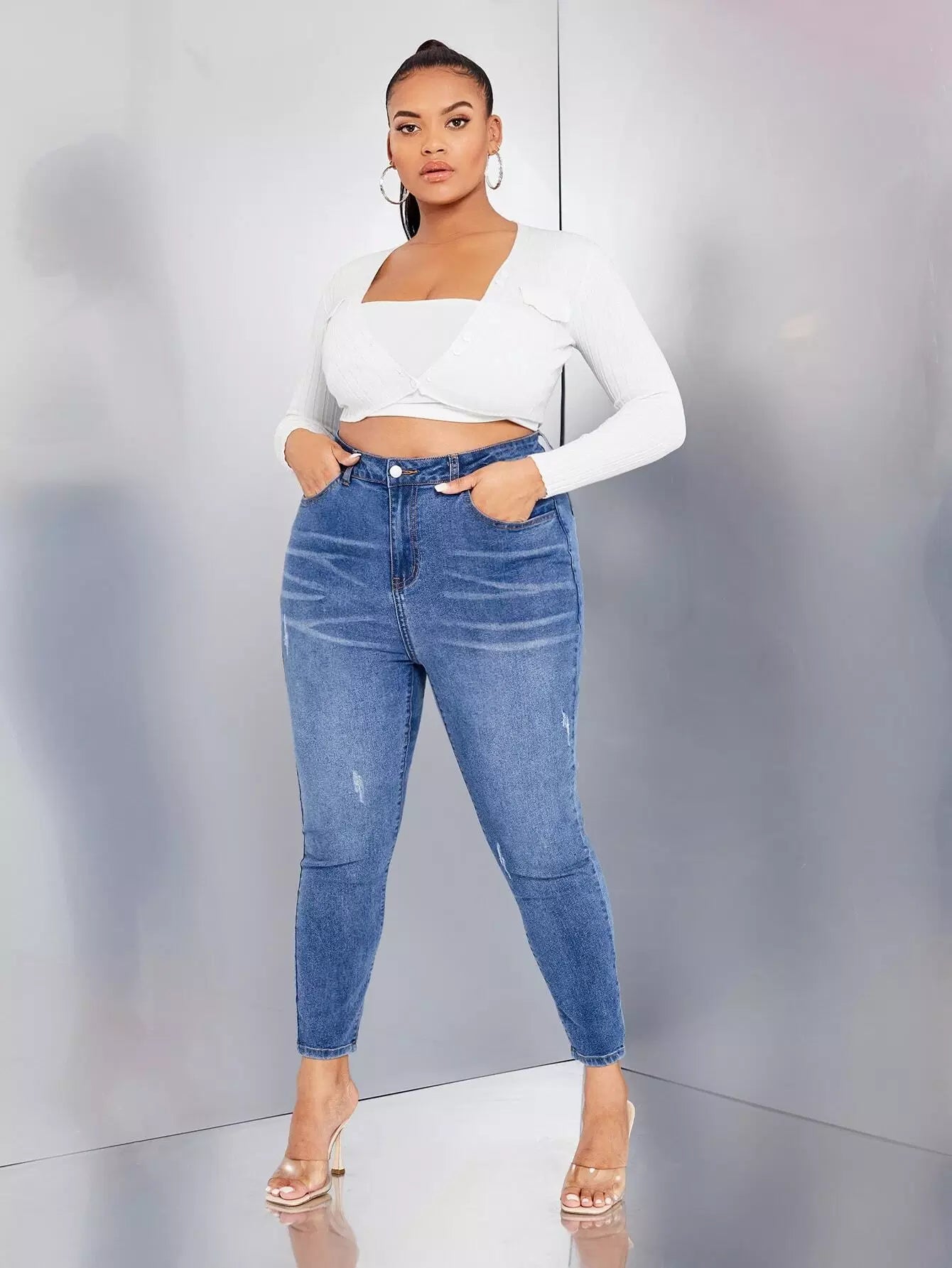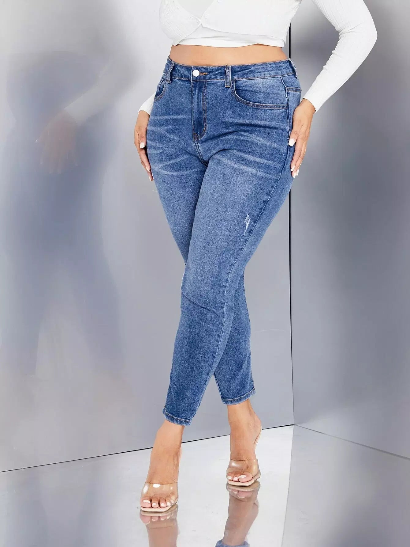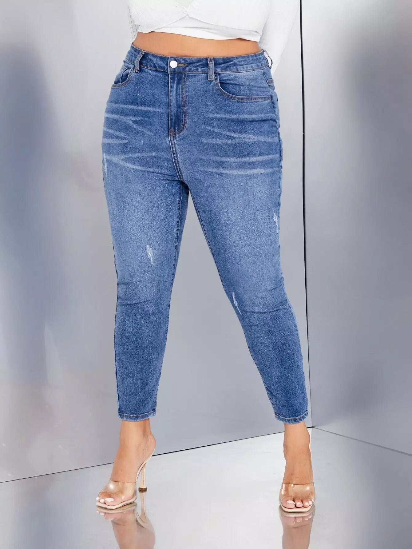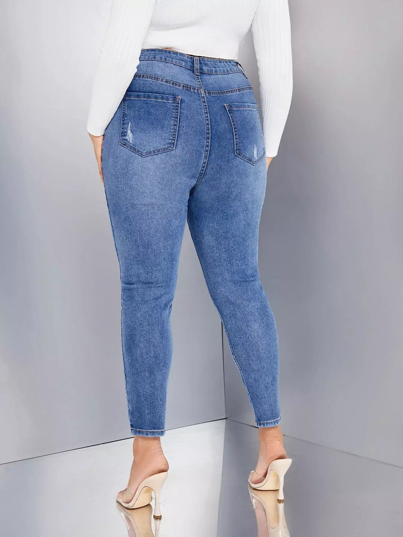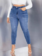 بنطلون جينز سكيني بخصر عالٍ زائد بخصر عالٍ يخدش القطط
