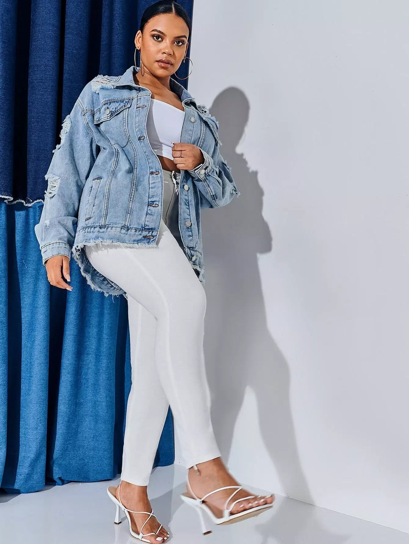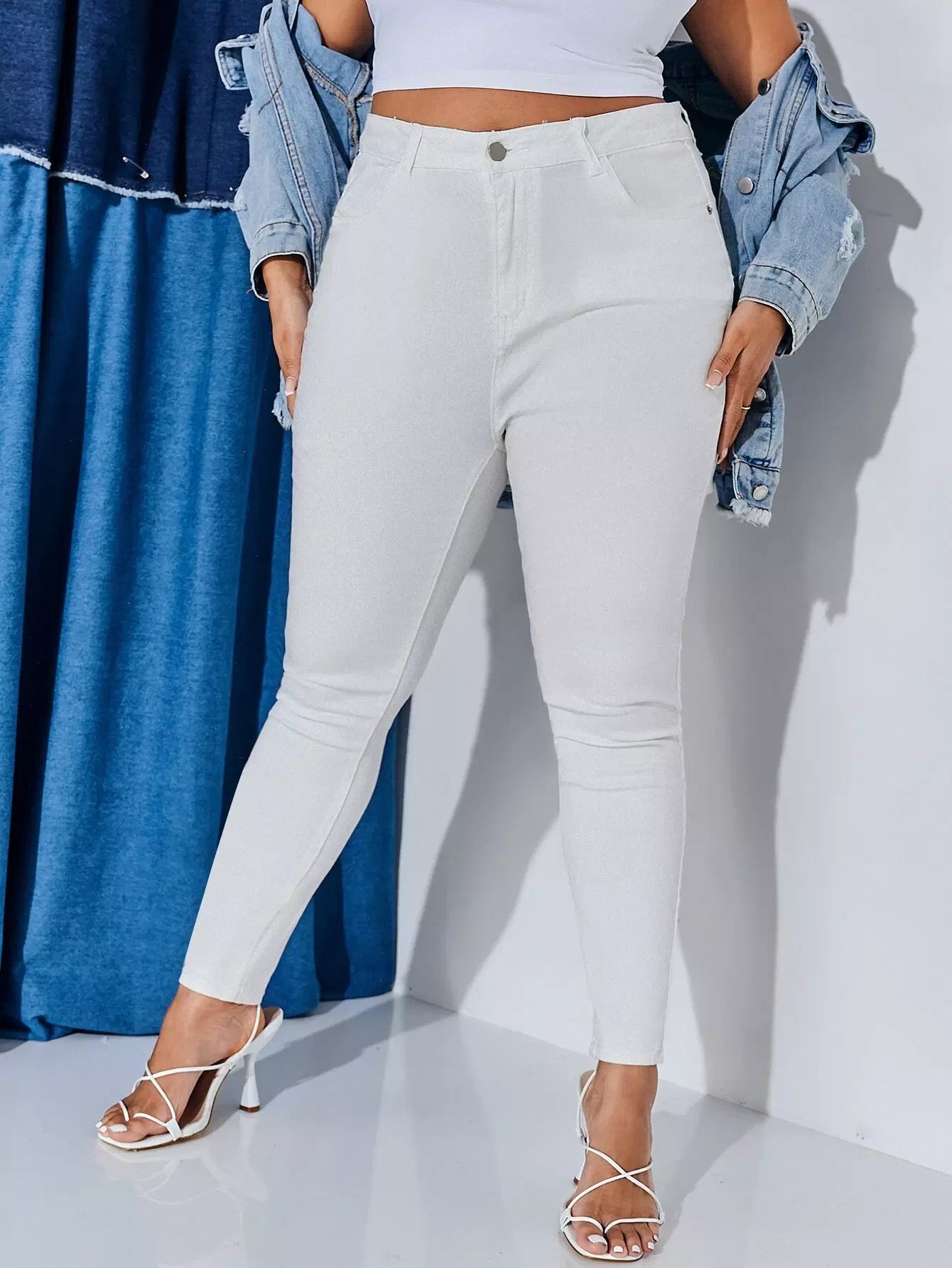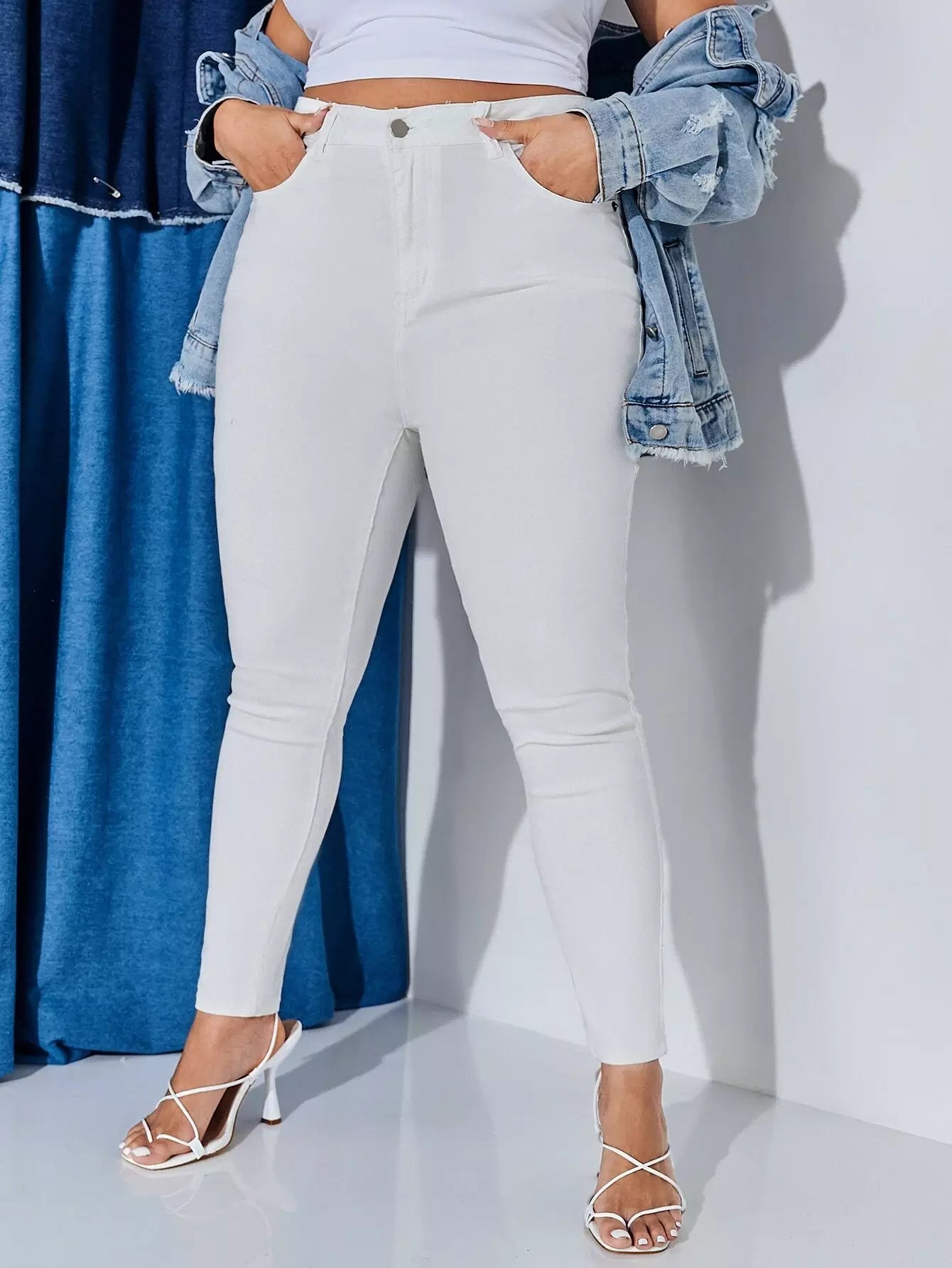 بنطلون جينز سكيني عالي الخصر عالي التمدد بلس