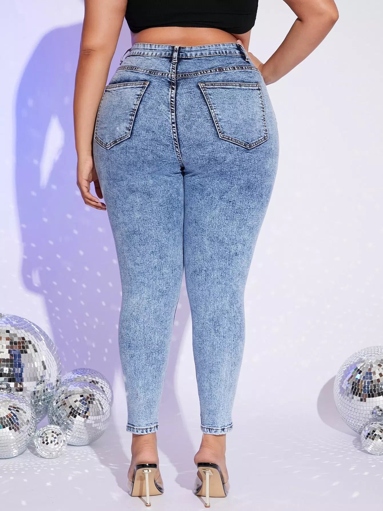 بنطلون جينز سكيني ضيق ممزق ذو خصر عالٍ زائد وسلم ممزق