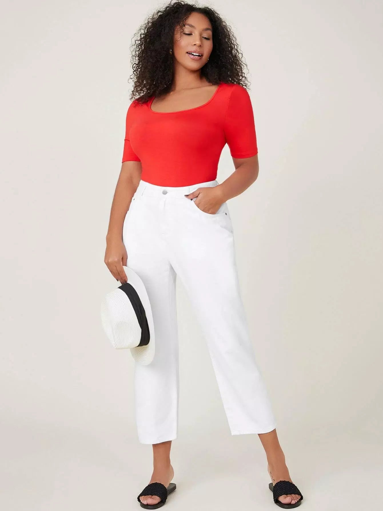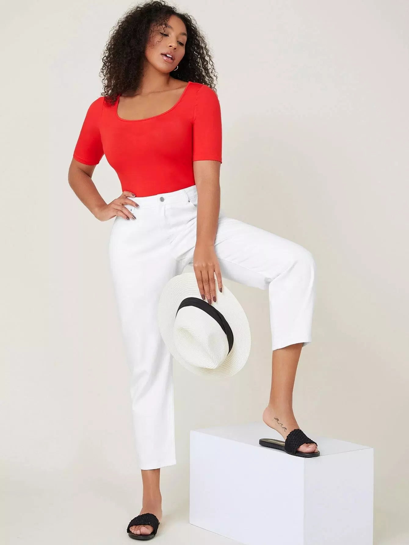 نحيف - مقاس كبير جينز قصير عالي الخصر