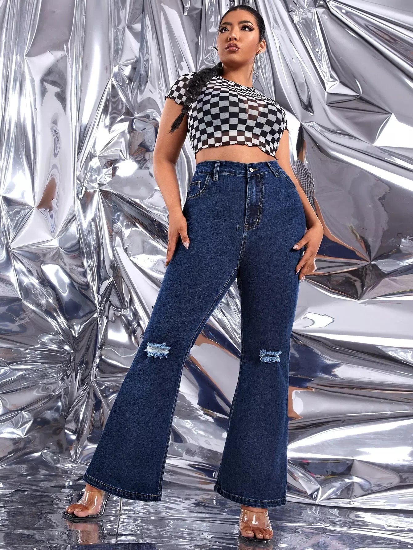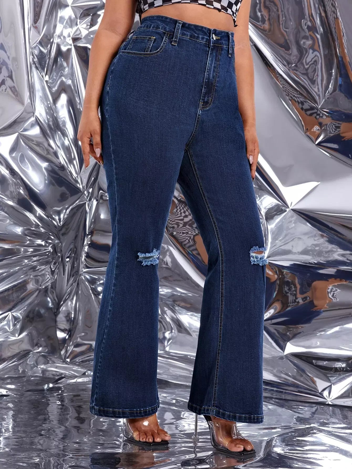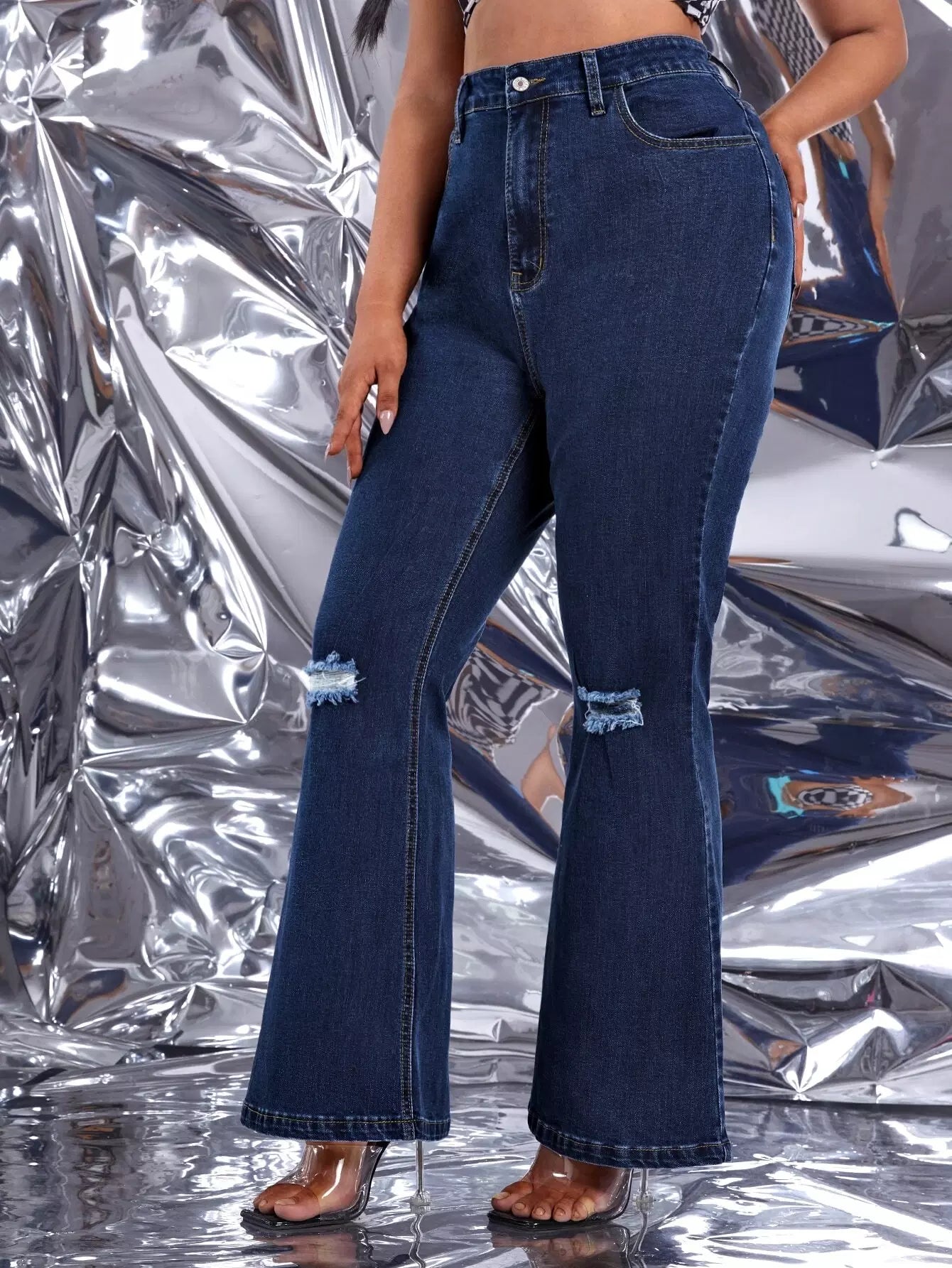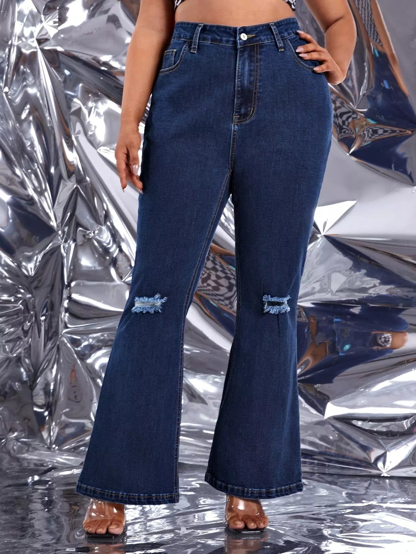 نحيف - مقاس كبير جينز ممزق عالي الخصر
