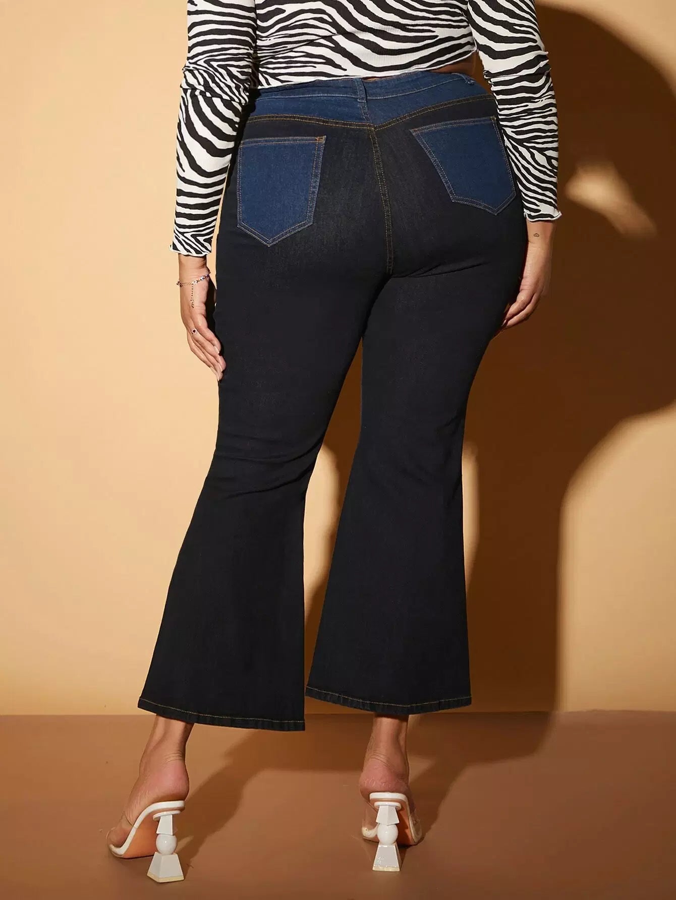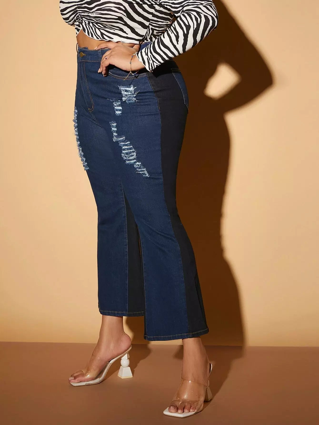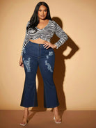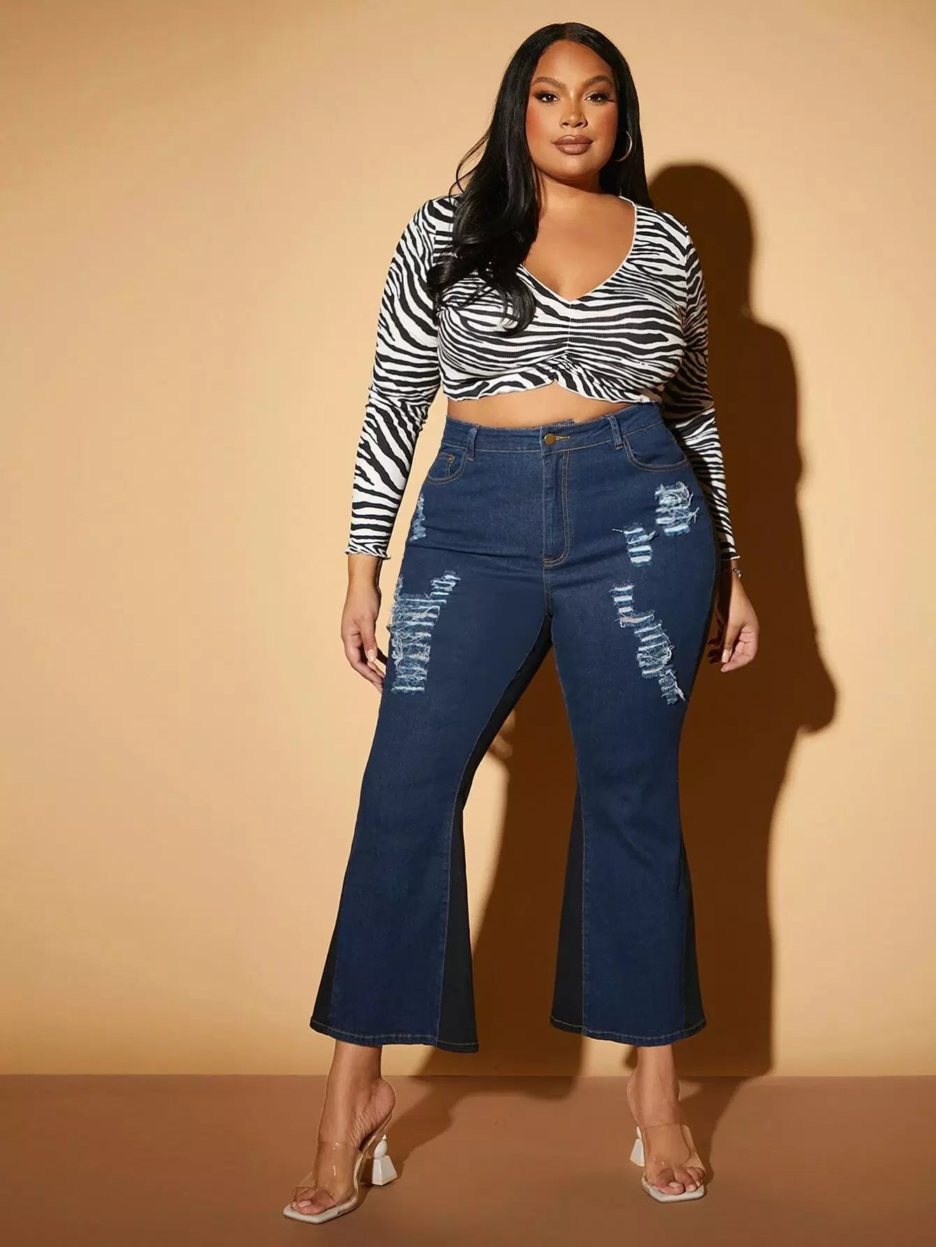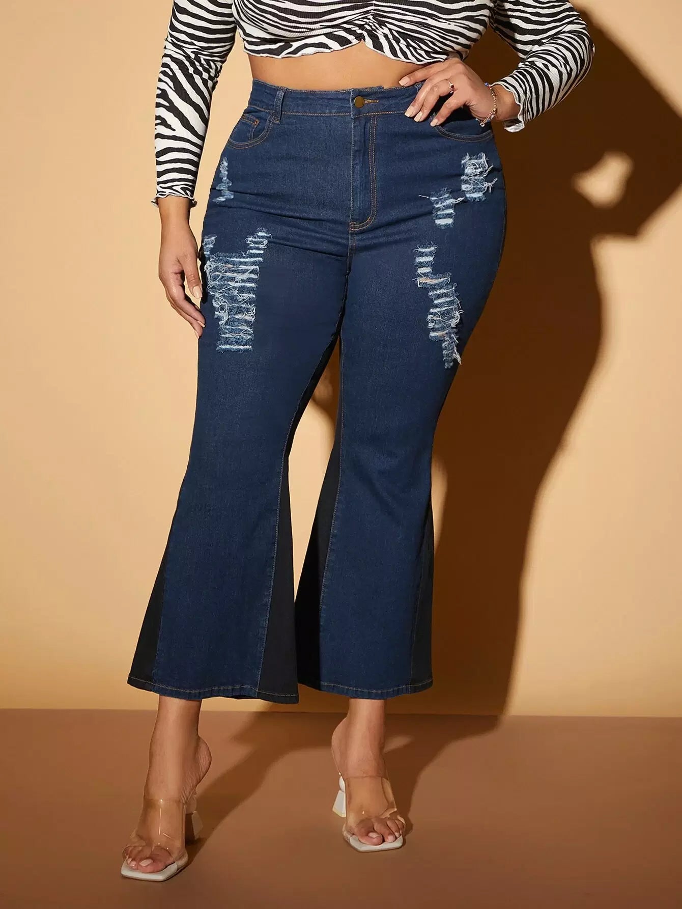 بنطلون جينز ممزق بخصر عالٍ ممزق بساق واسعة ممزق