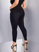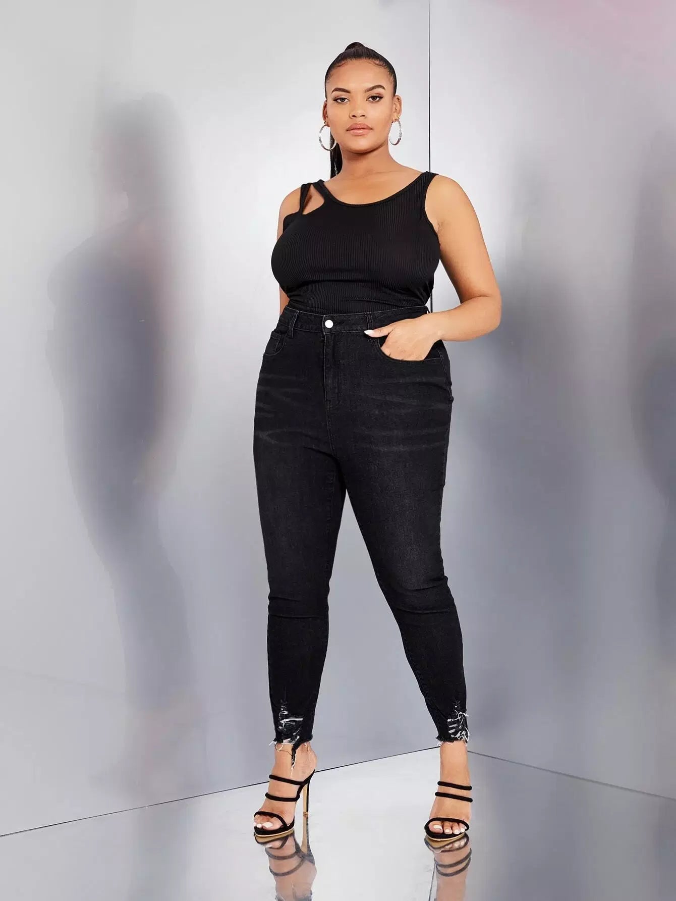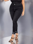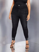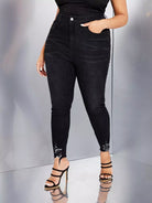 بنطلون جينز سكيني بخصر عالٍ ممزق بحواف خصر عالية ممزق بحواف خامة ممزقة