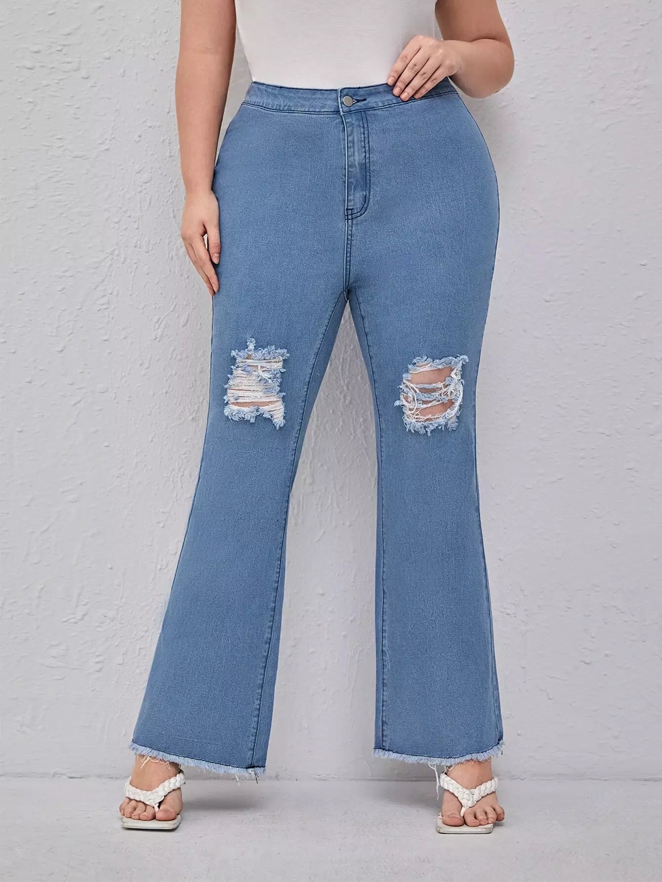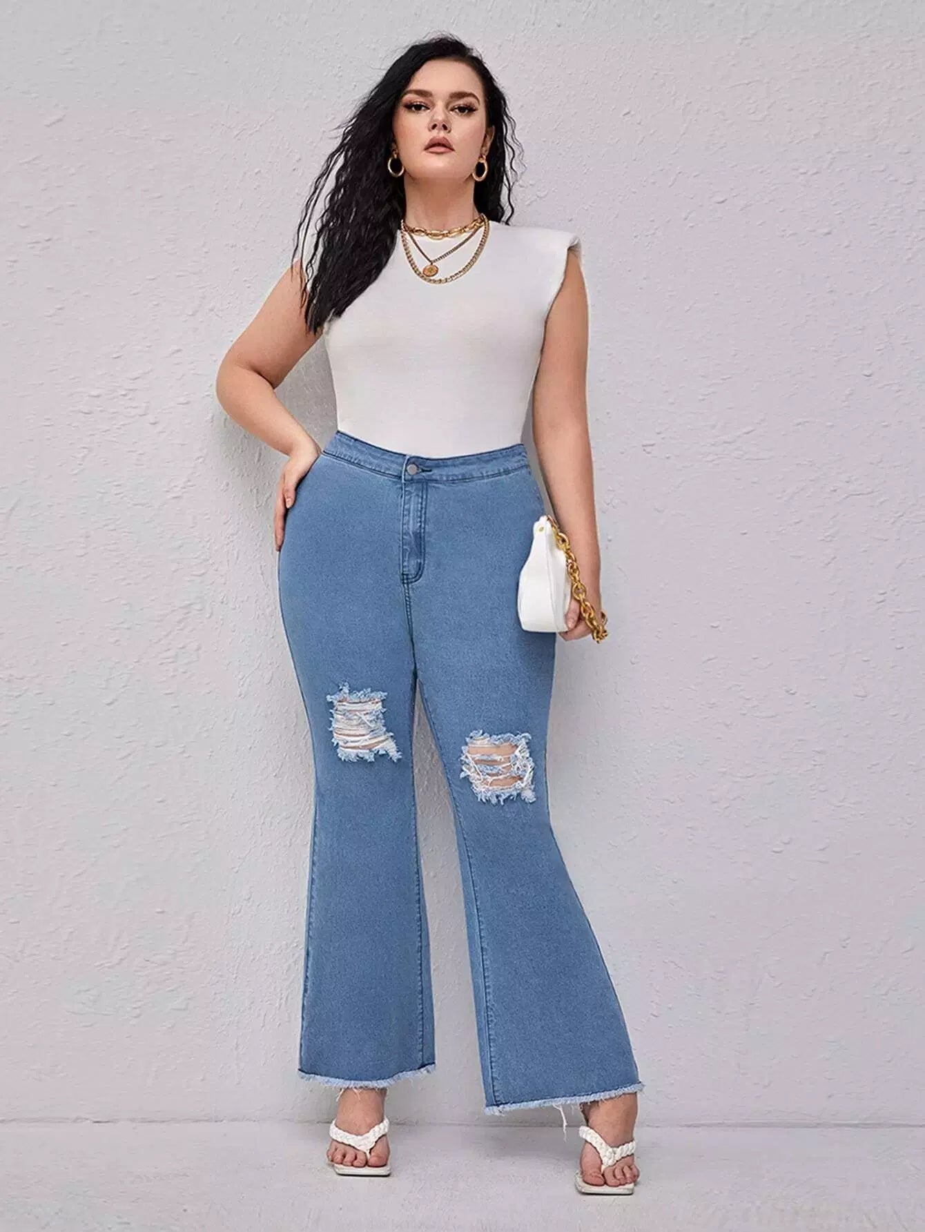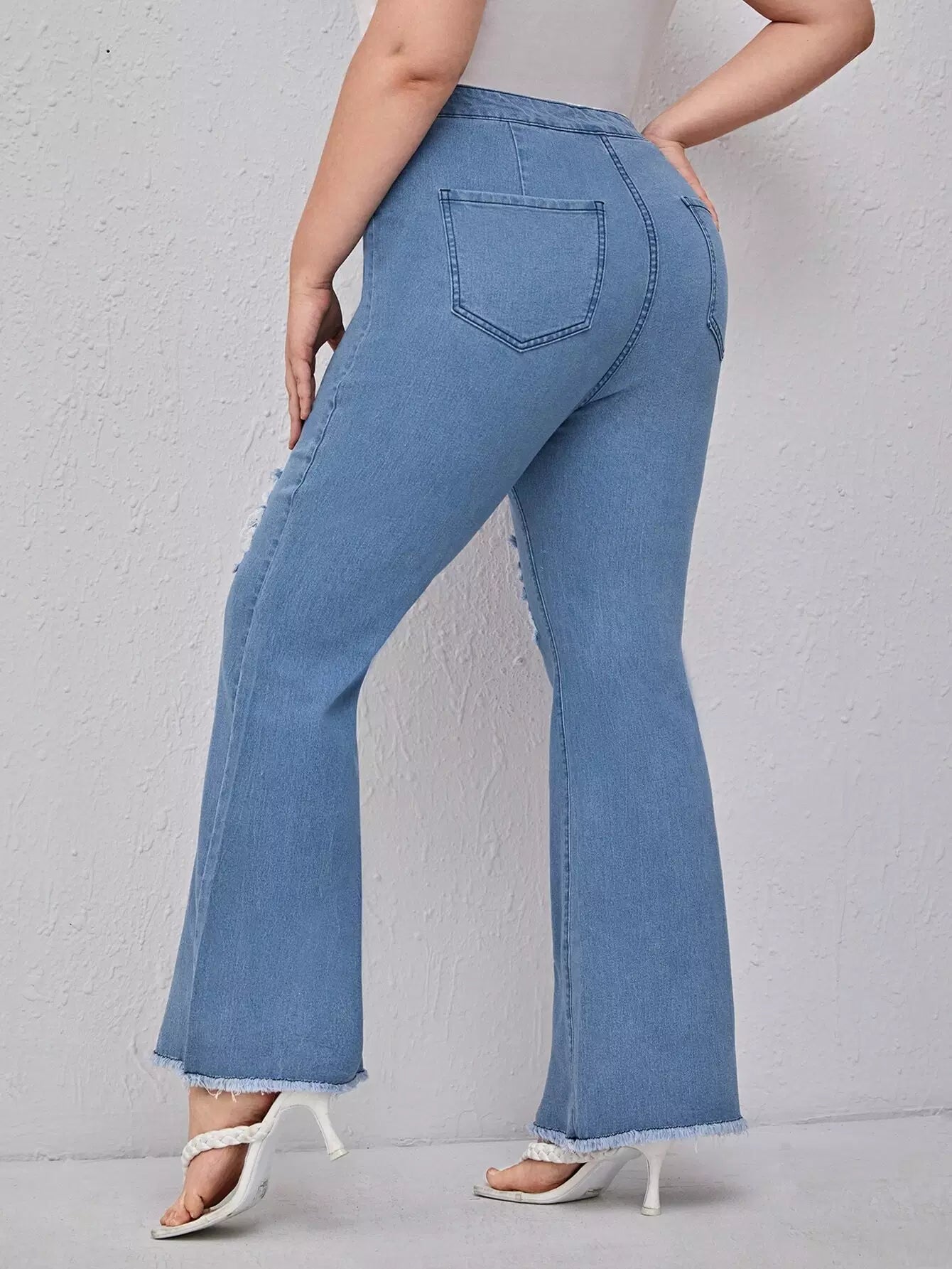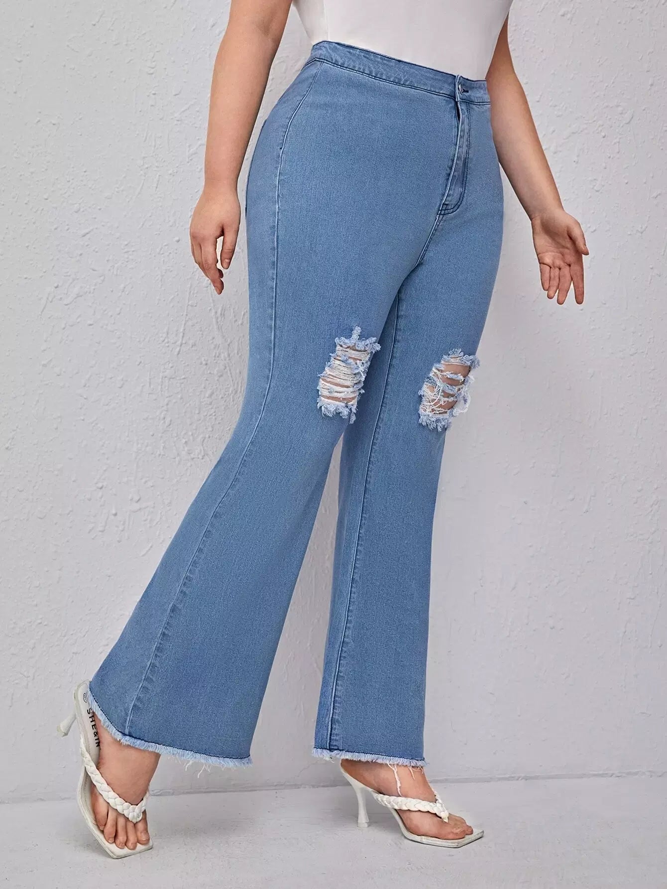 بنطلون جينز بخصر عالٍ ممزق بقصّة خصر عالية ممزق بحواف رقيقة