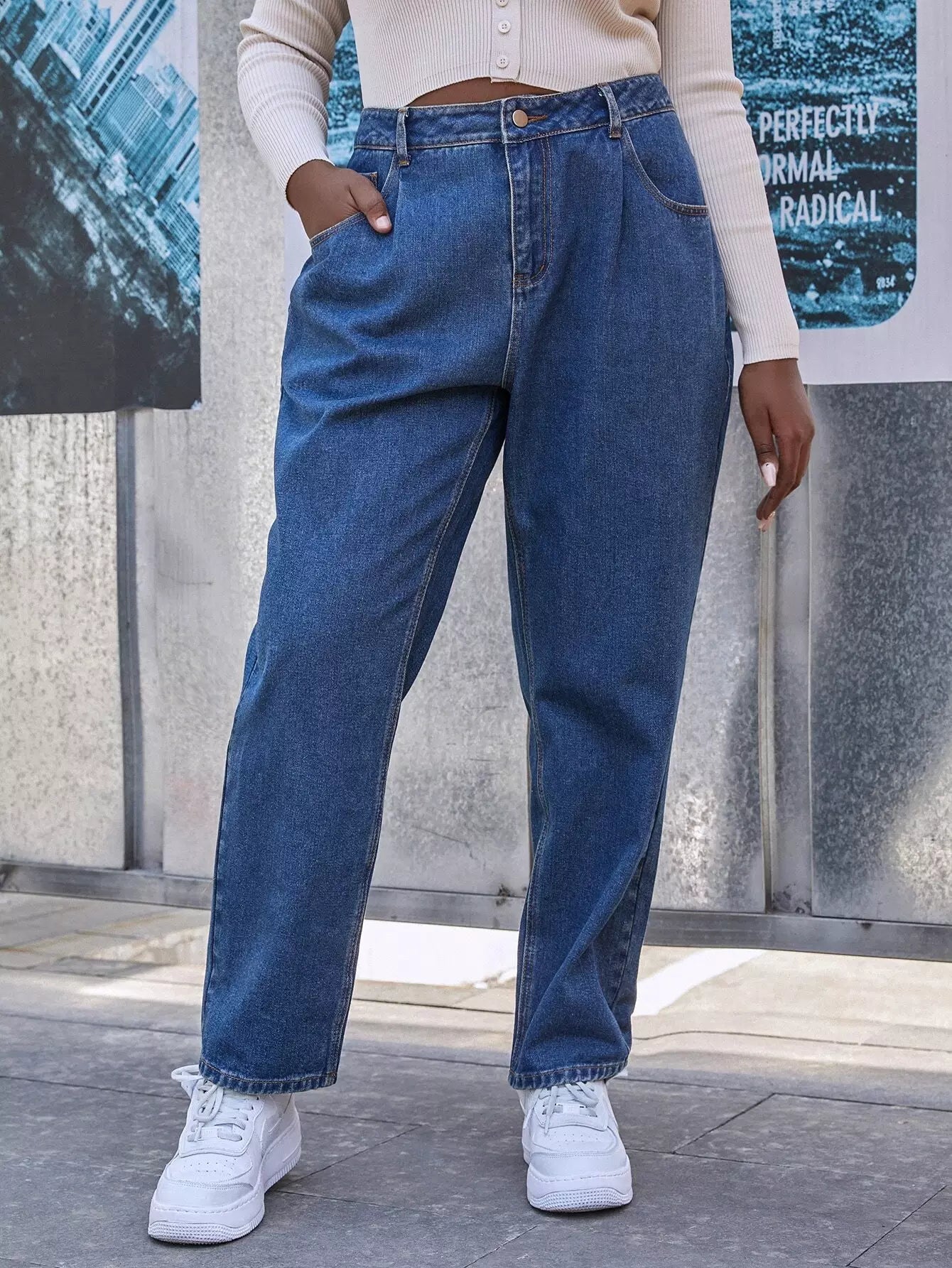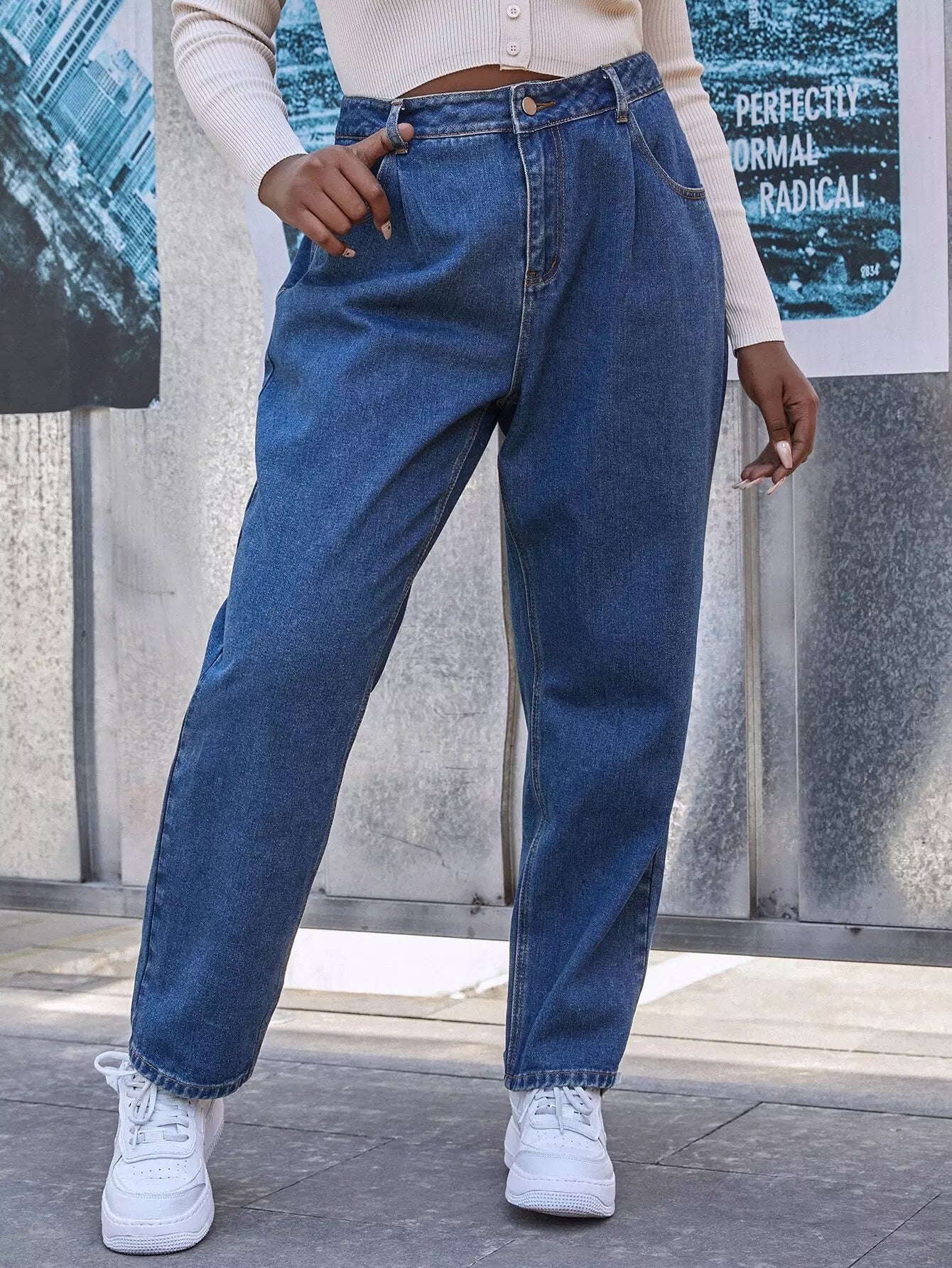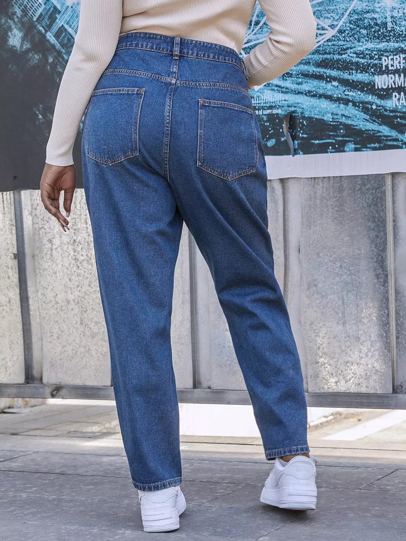 بنطلون جينز بخصر عالٍ ممزق بساق مستقيمة زائد