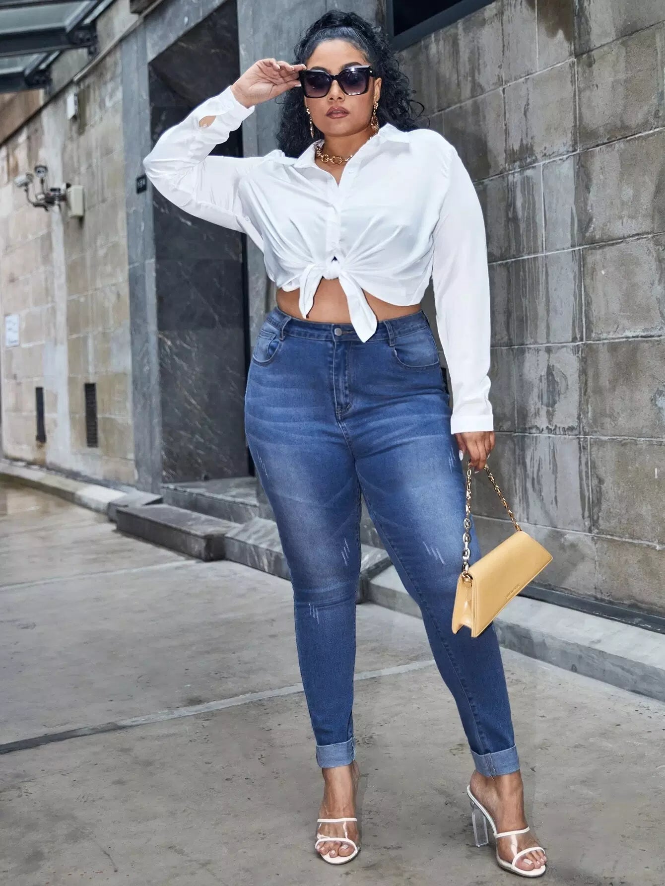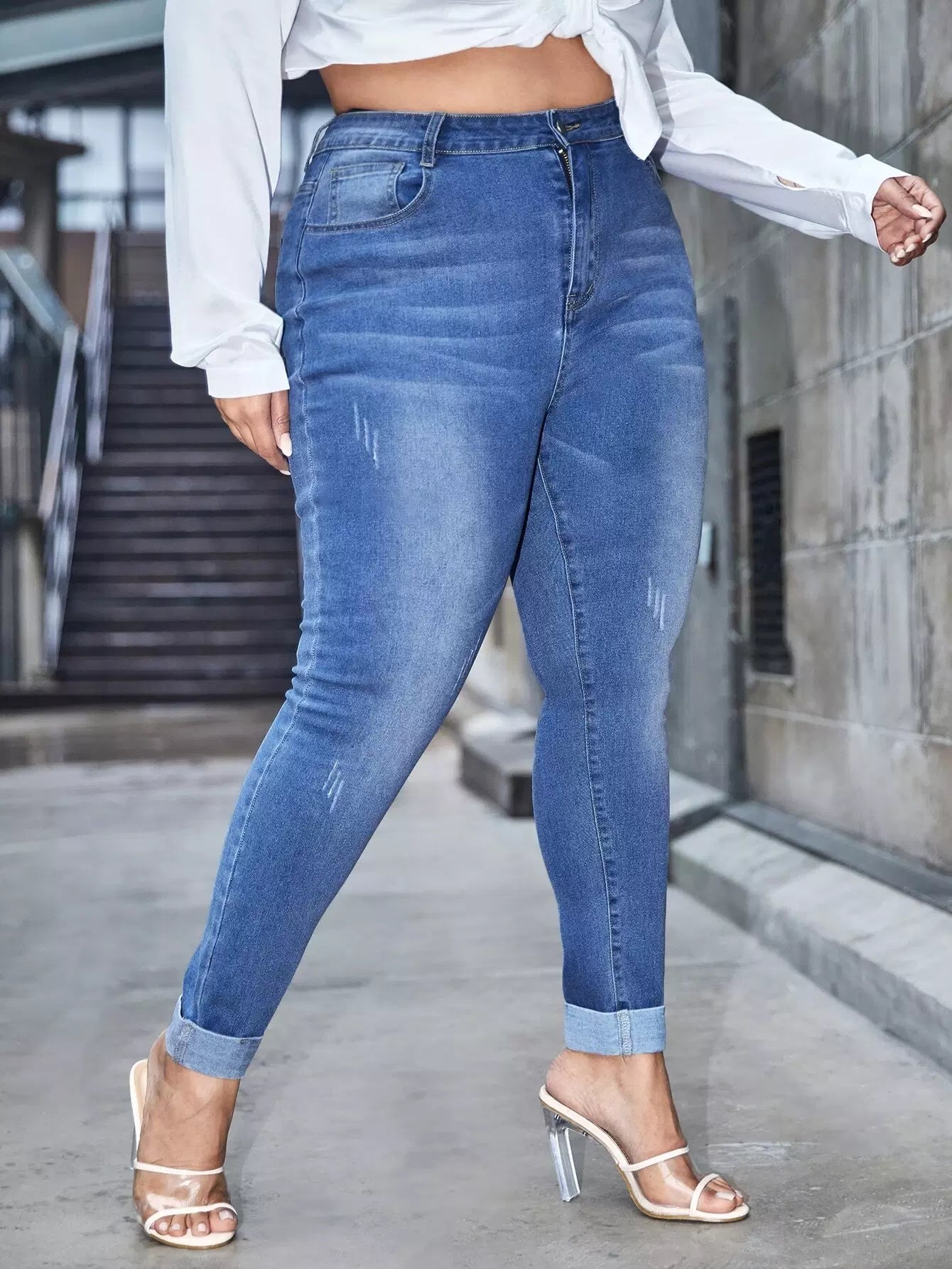 نحيف - مقاس كبير جينز سكيني عالي الخصر