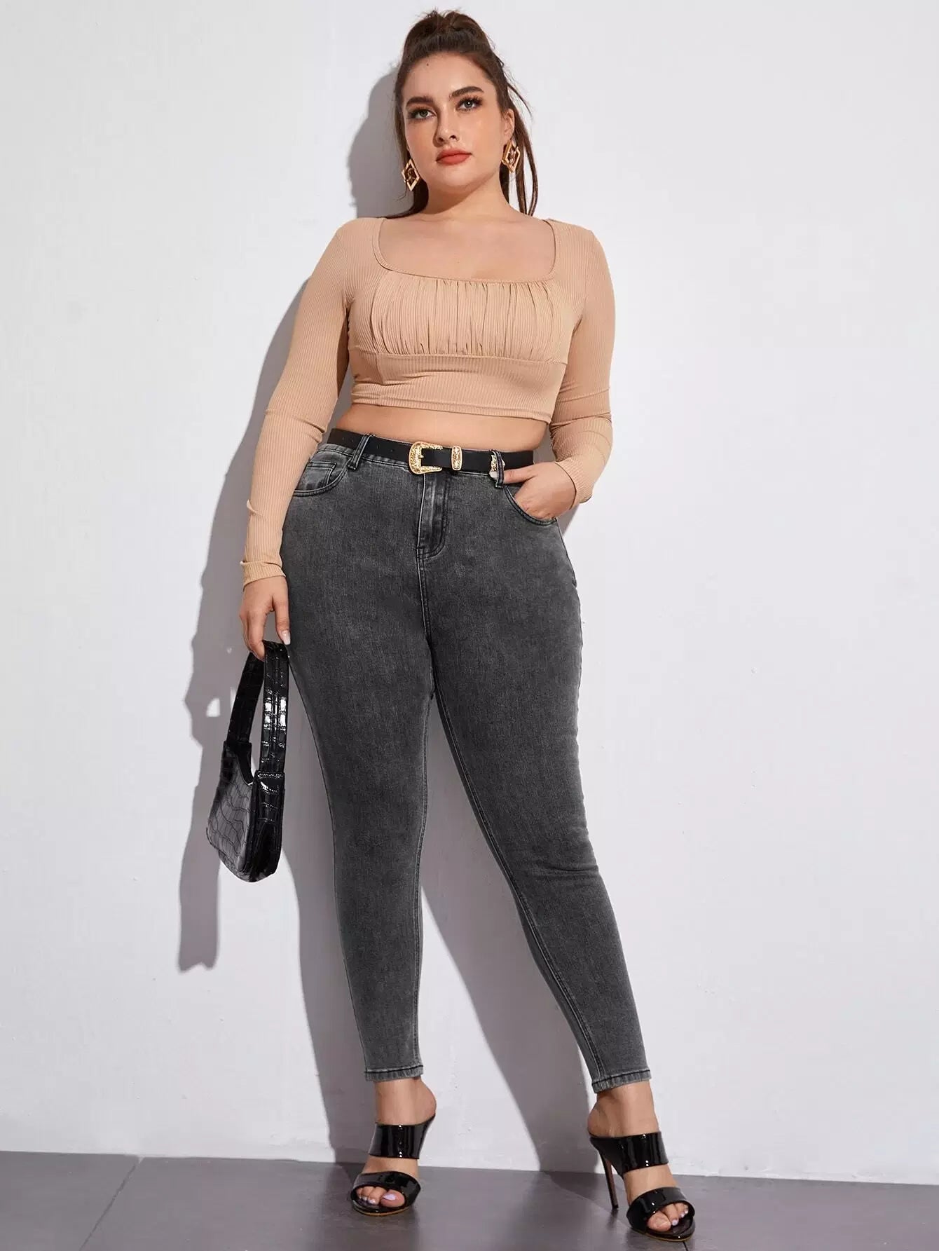 جينز جينز سكيني عالي الخصر عالي التمدد بلس