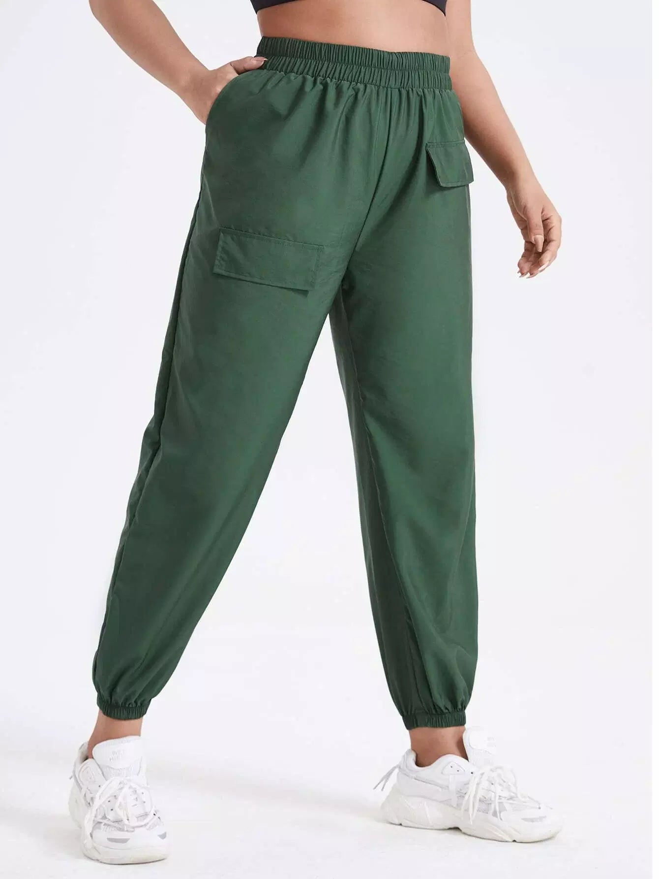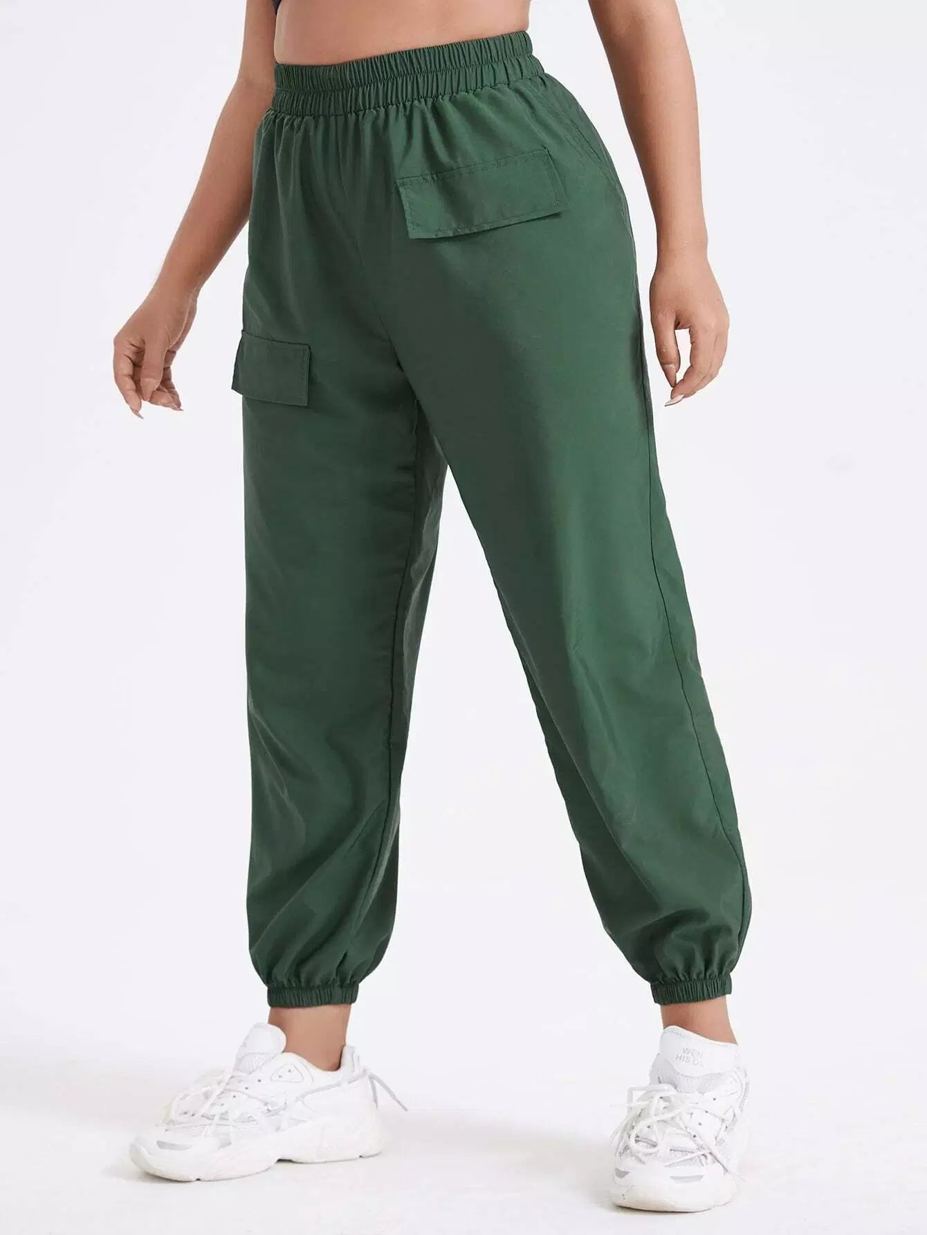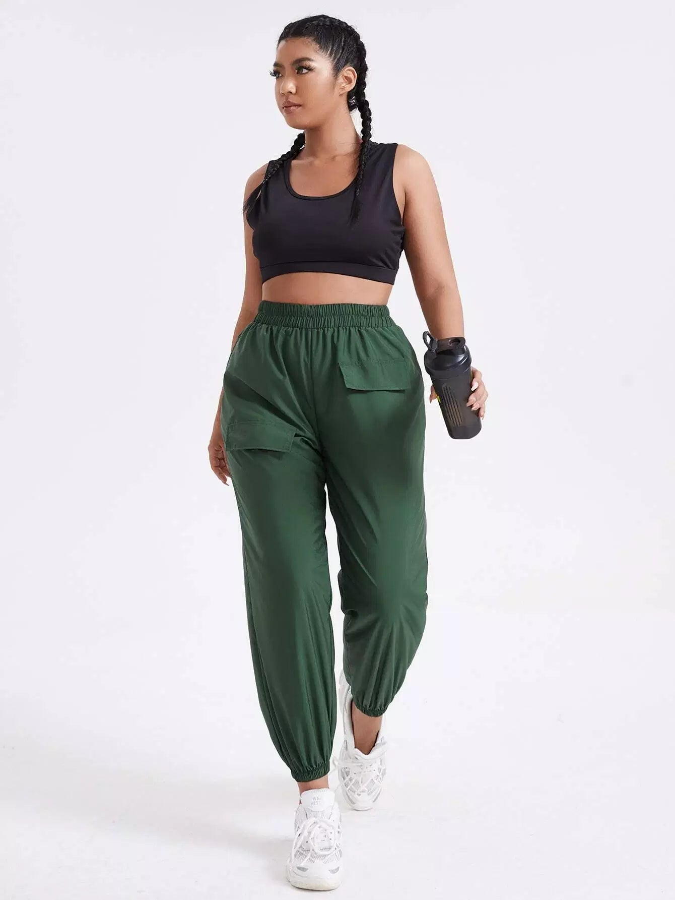 بنطلون رياضي بجيوب مائلة عالية الخصر زائد