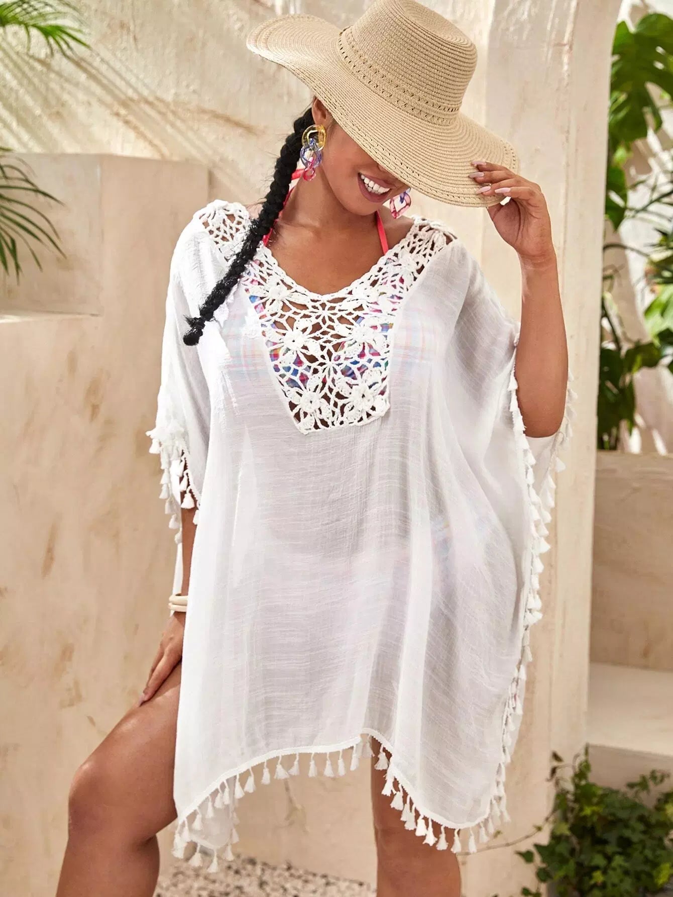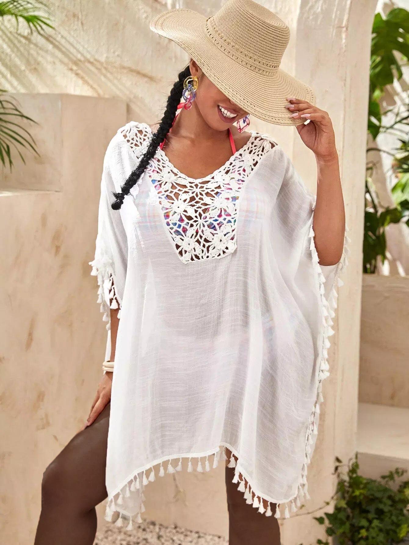 نحيف - مقاس كبير غطاء بحاشية مجوفة بشرابة