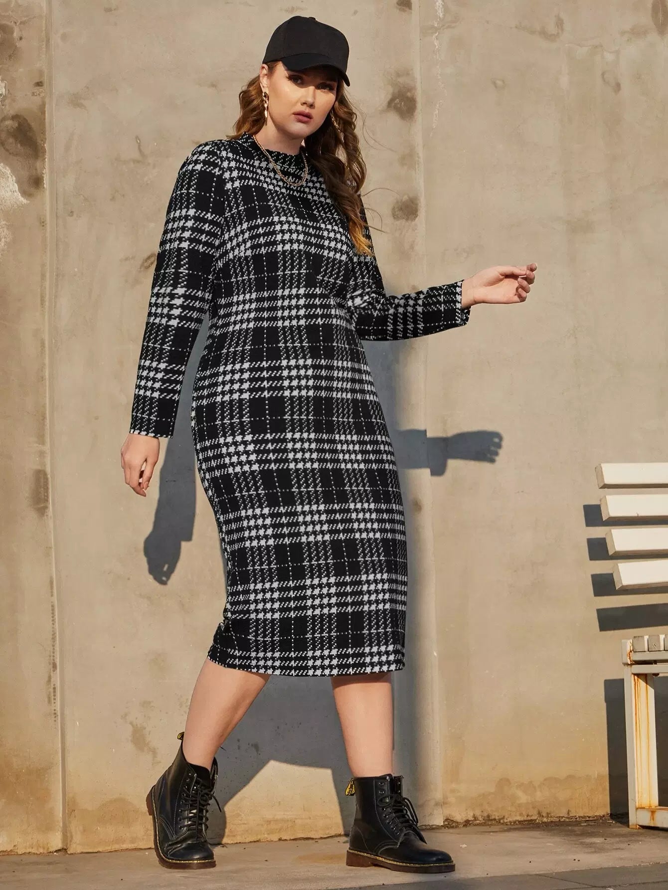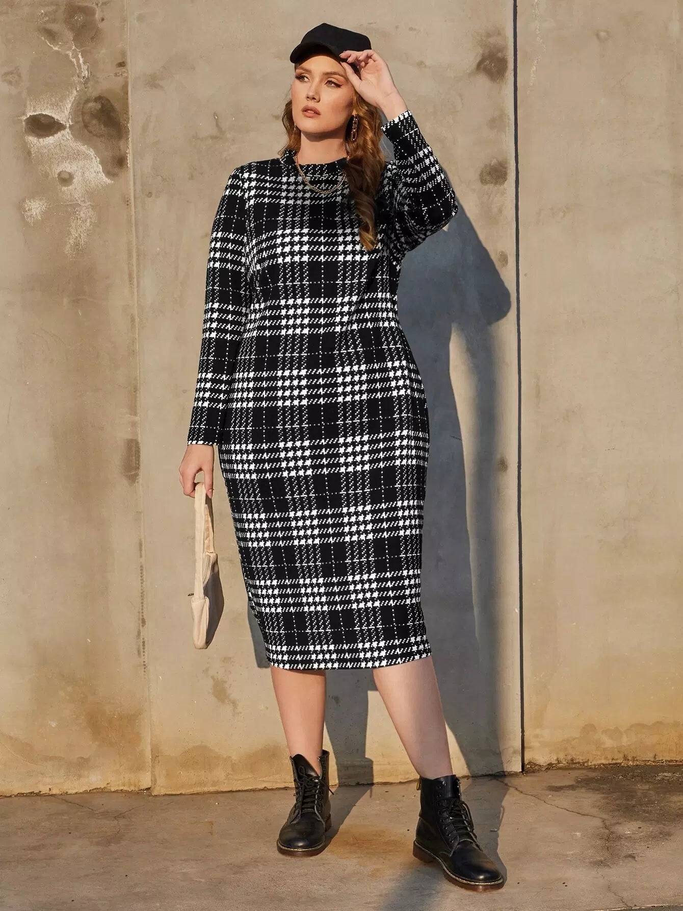 فستان بياقة ضيقة مزين بطبعة هاوندستوث بياقة ضيقة