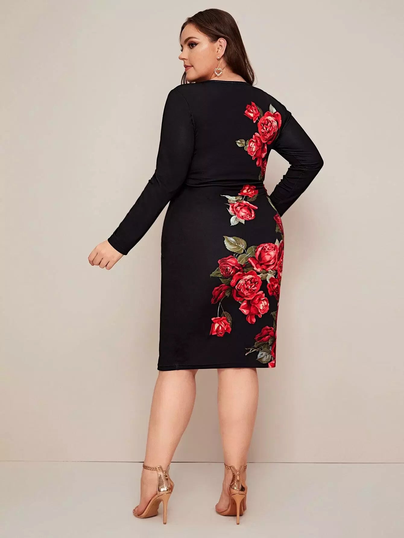 فستان بفتحة رقبة زائد بفتحة رقبة زهرية مطبوع