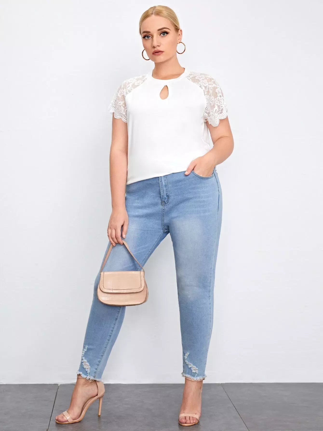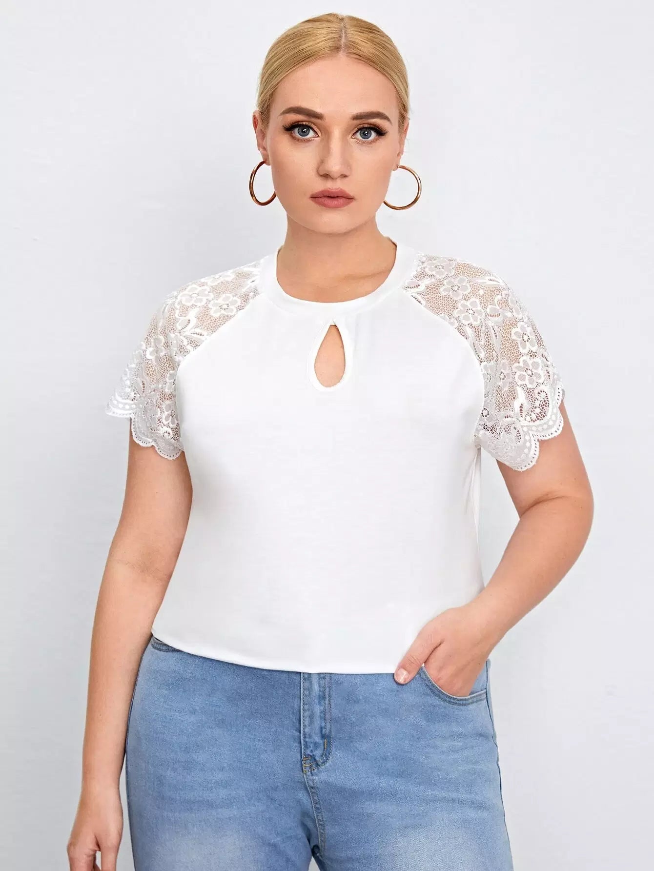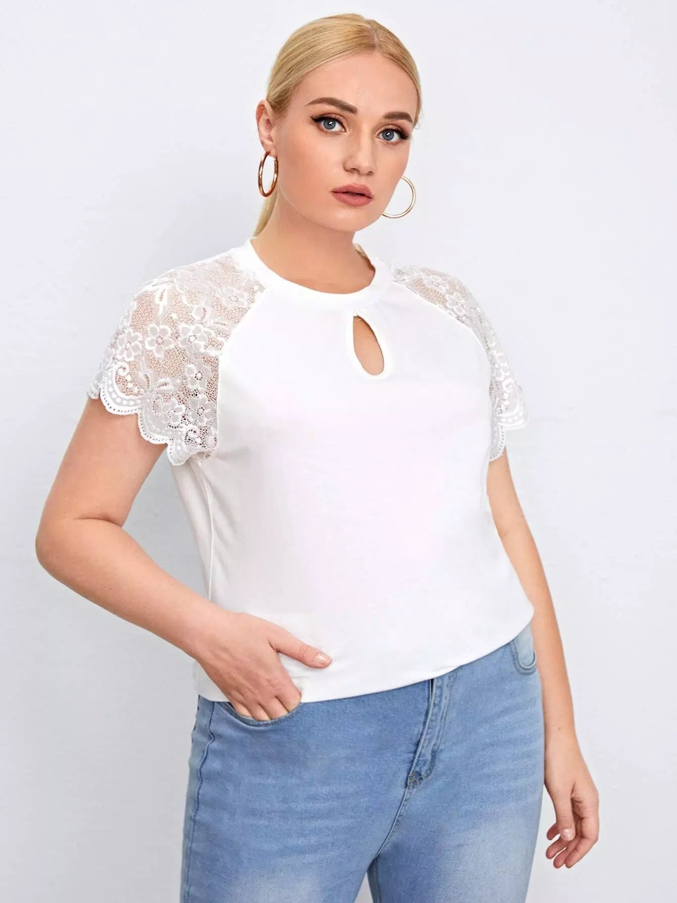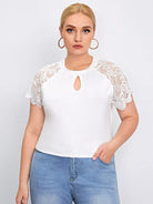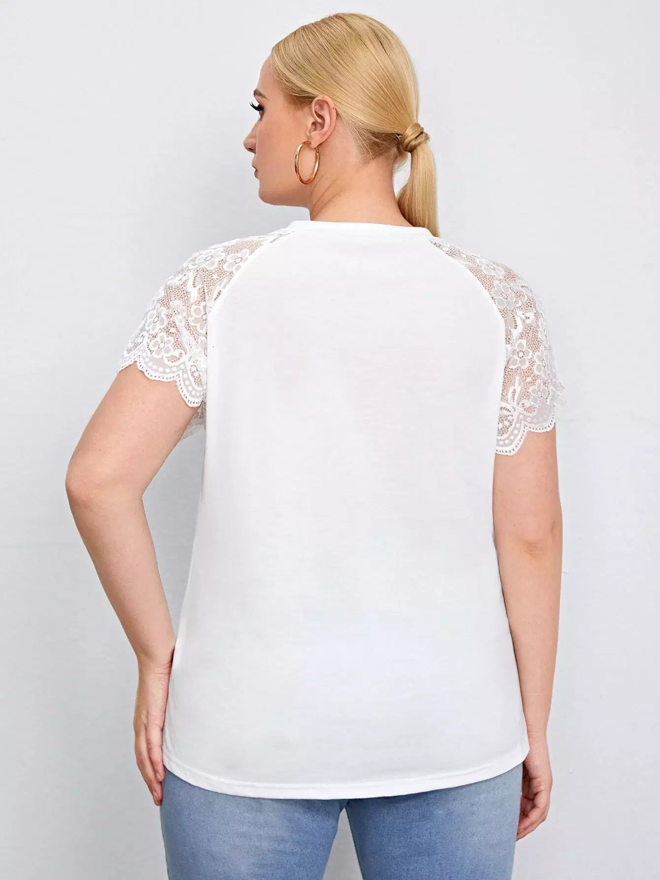 بلوزة برقبة بفتحة عنق زائد بأكمام دانتيل راجلان