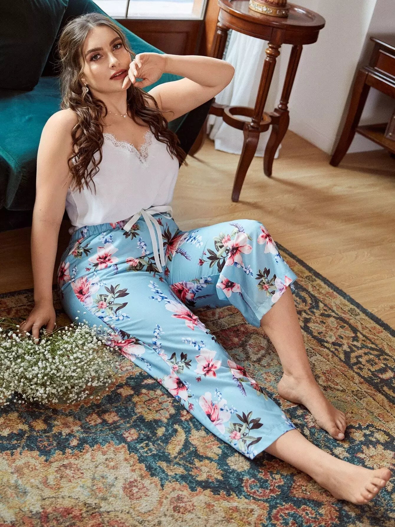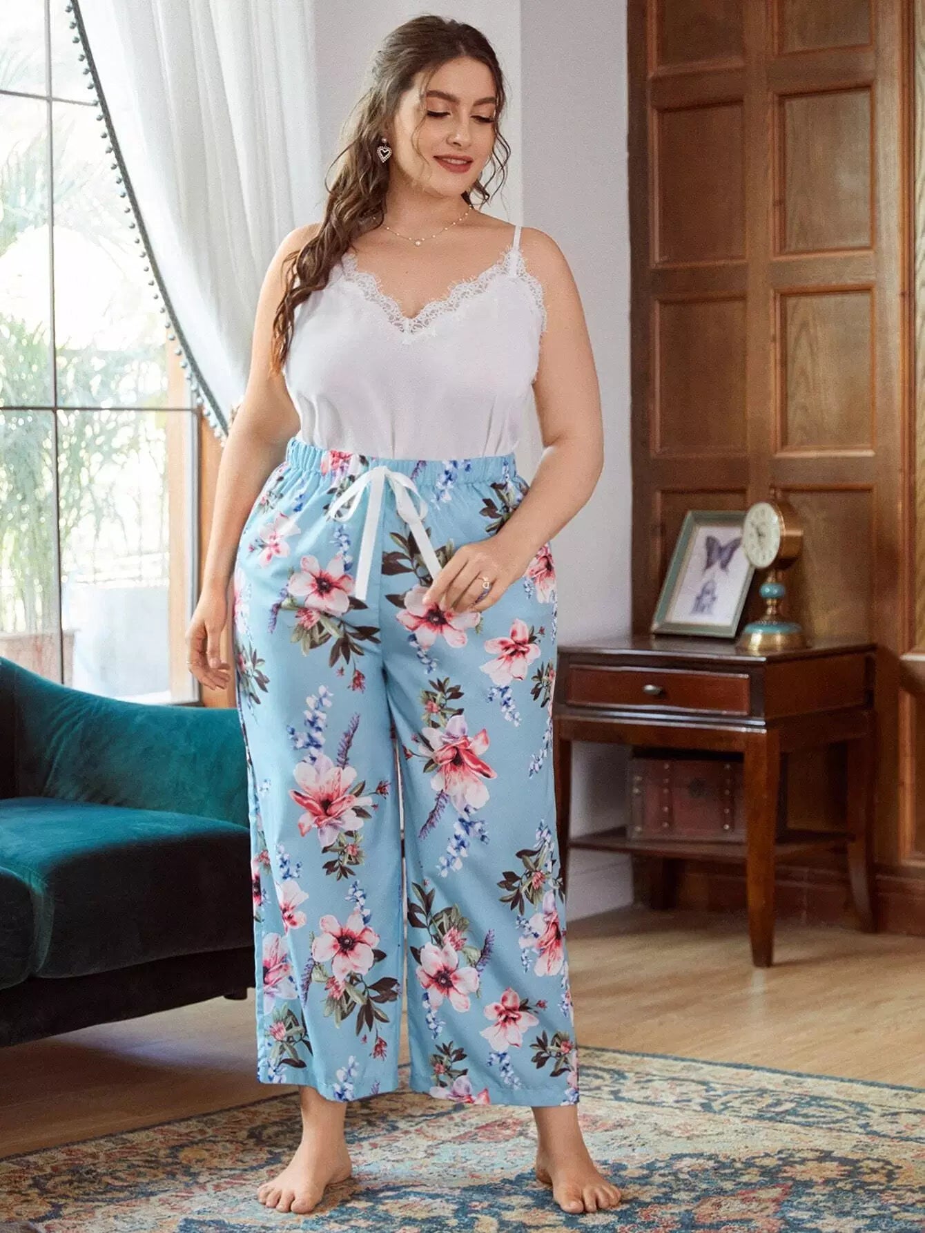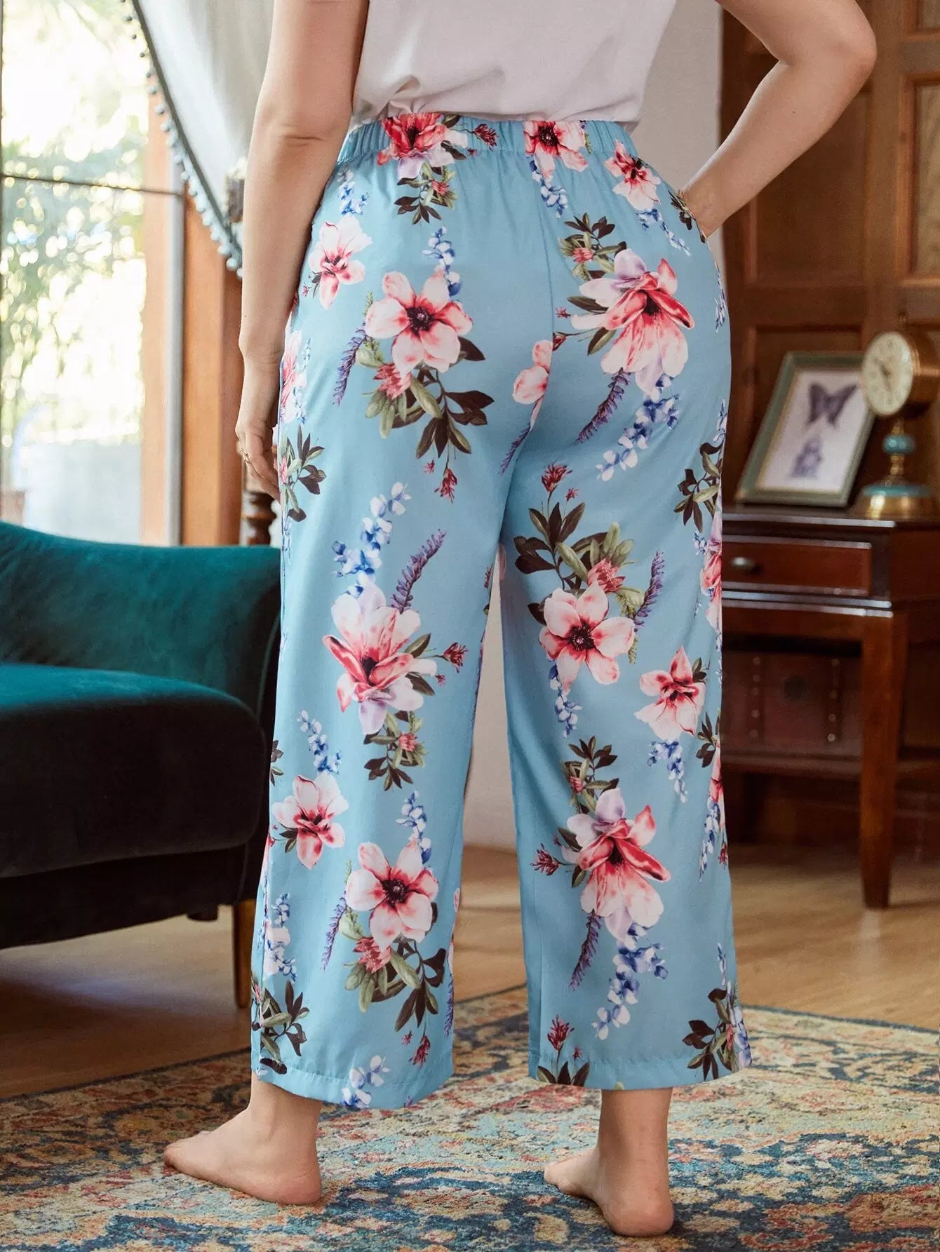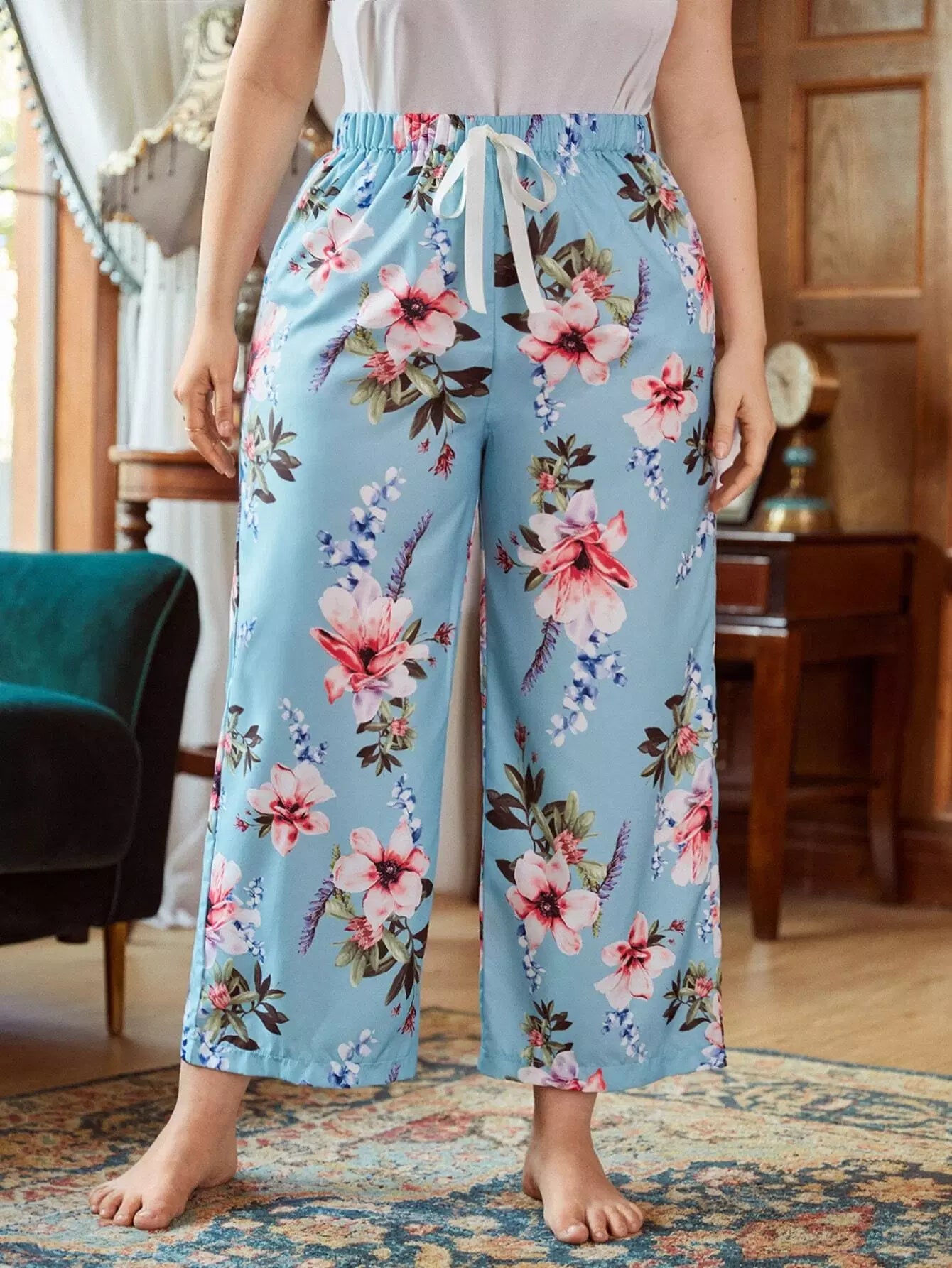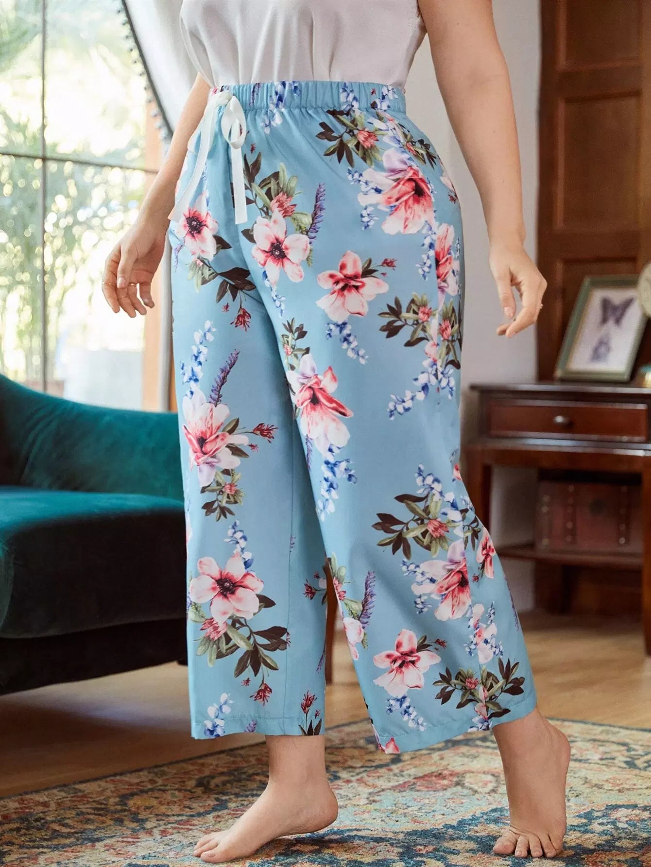 بنطلون نوم بعقدة أمامية أمامية زهرية بلس